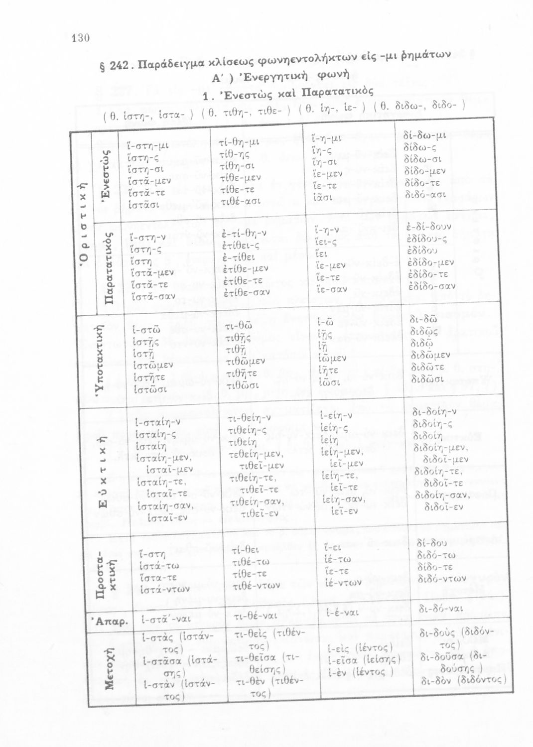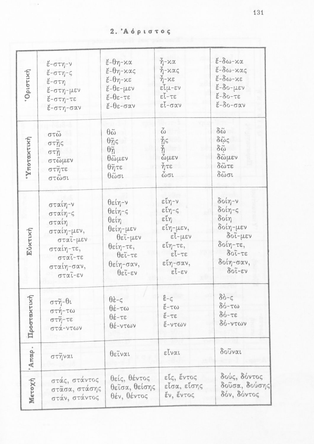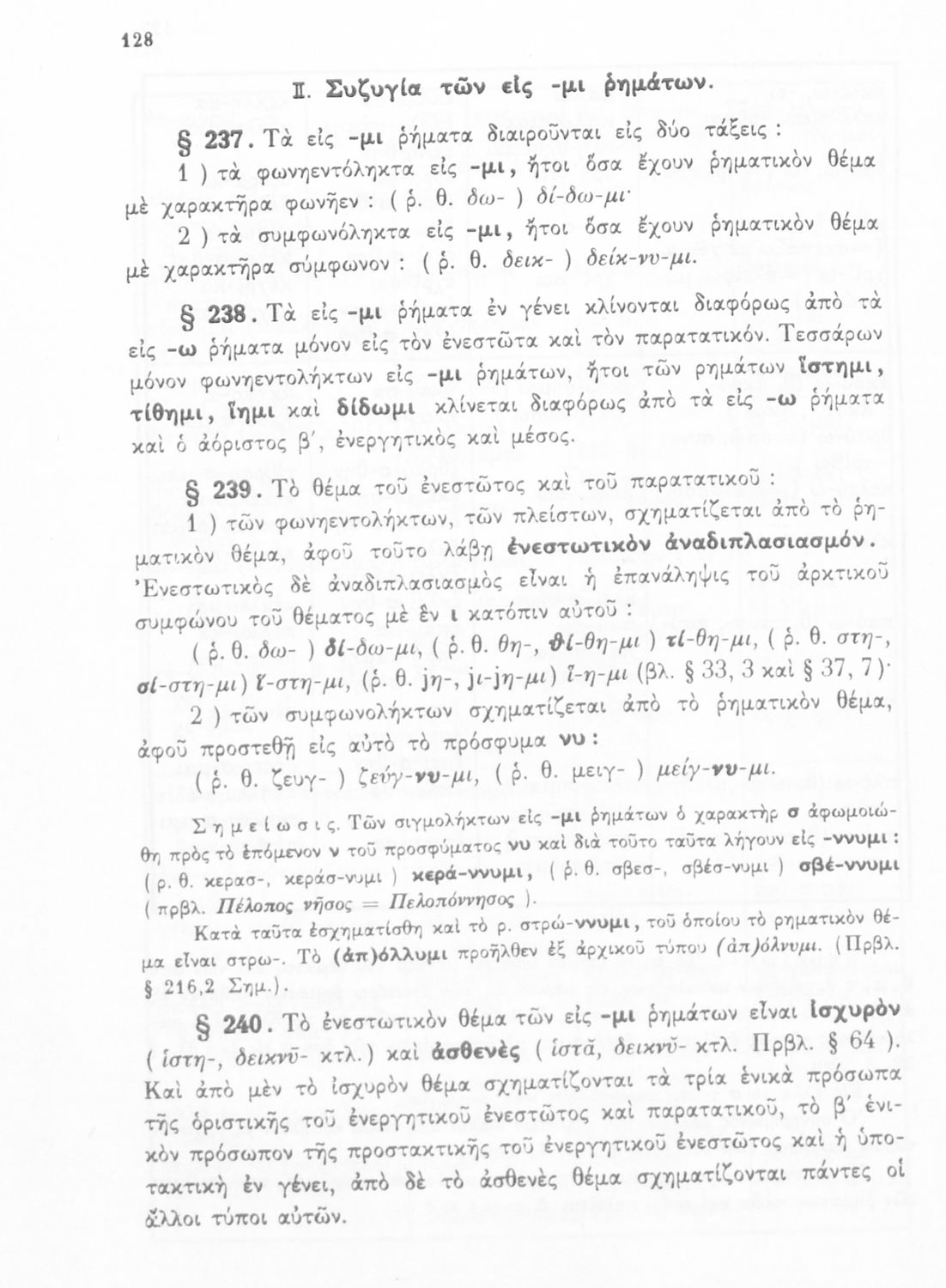 Σχολικό εγχειρίδιο Αρχαίων Ελληνικών Α', Β', και Γ' Γυμνασίου που περιέχει τους κανόνες γραμματικής και είναι χωρισμένο σε φθογγολογικό, τυπολογικό και ετυμολογικό μέρος. Περιέχει και κατάλογο ανωμάλων ρημάτων.
