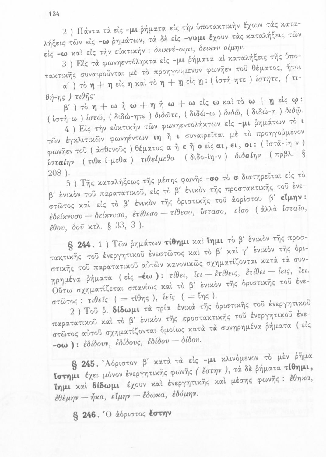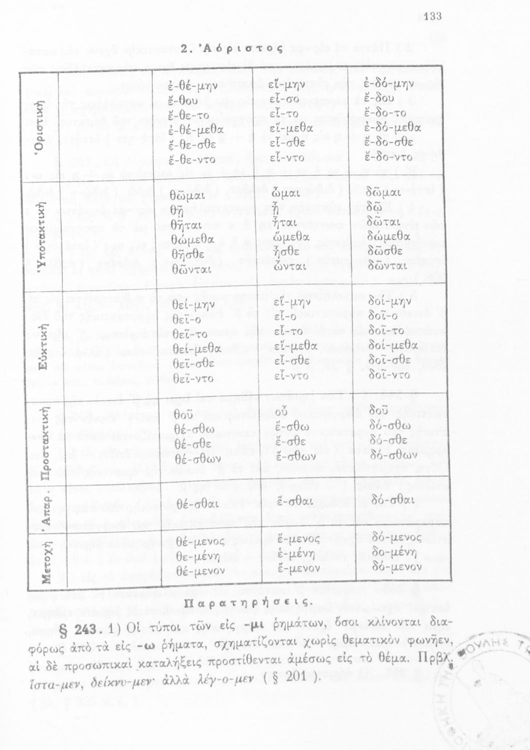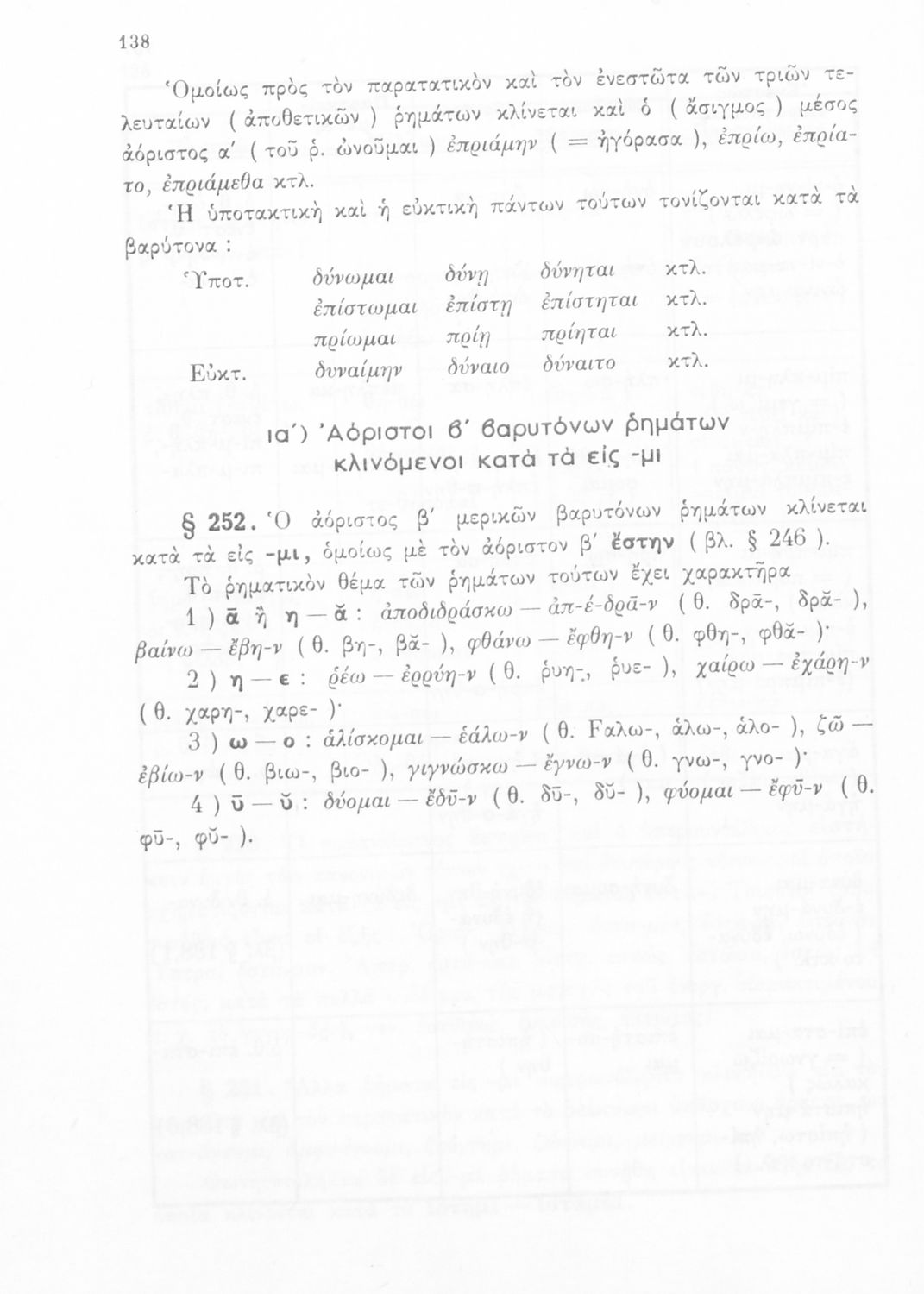 Σχολικό εγχειρίδιο Αρχαίων Ελληνικών Α', Β', Γ' και Δ' Γυμνασίου που περιέχει τους κανόνες γραμματικής και είναι χωρισμένο σε φθογγολογικό, τυπολογικό και ετυμολογικό μέρος. Περιέχει και κατάλογο ανωμάλων ρημάτων. Φέρει το σύμβολο της δικτατορίας.
