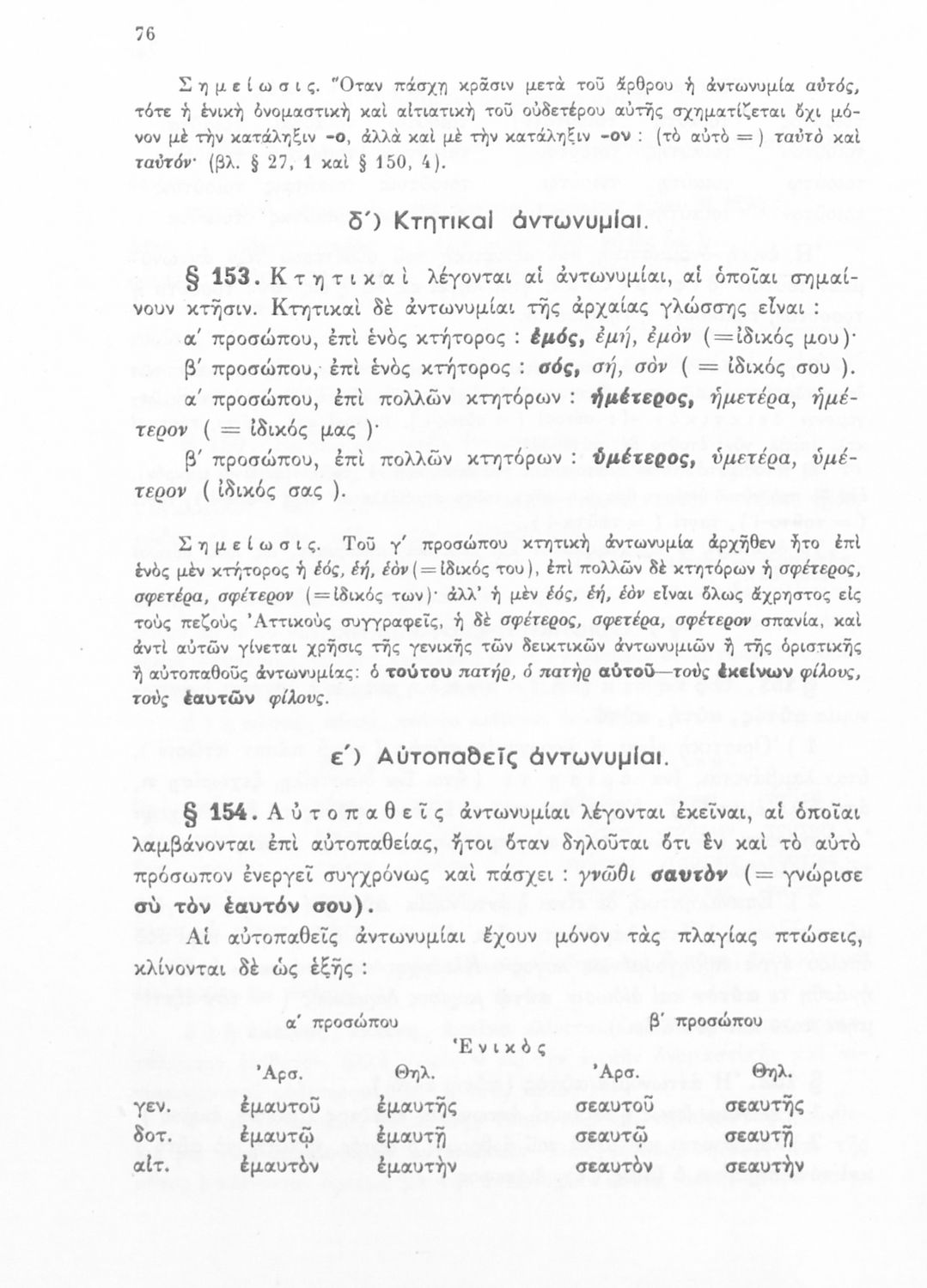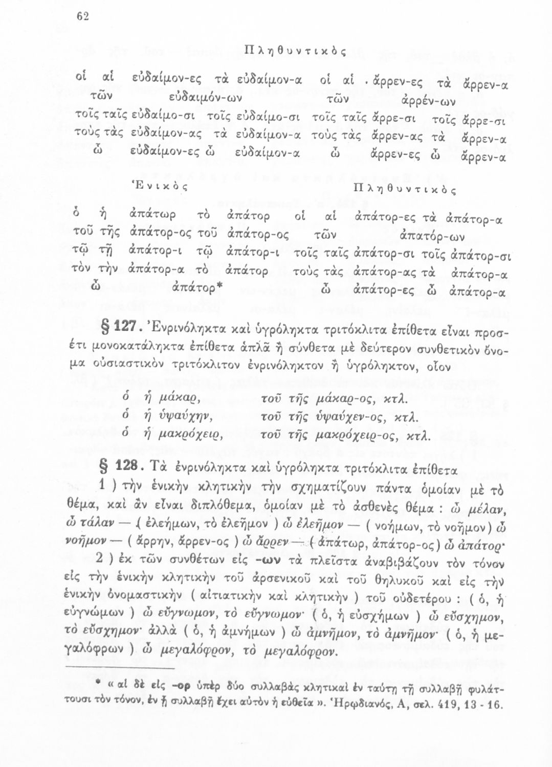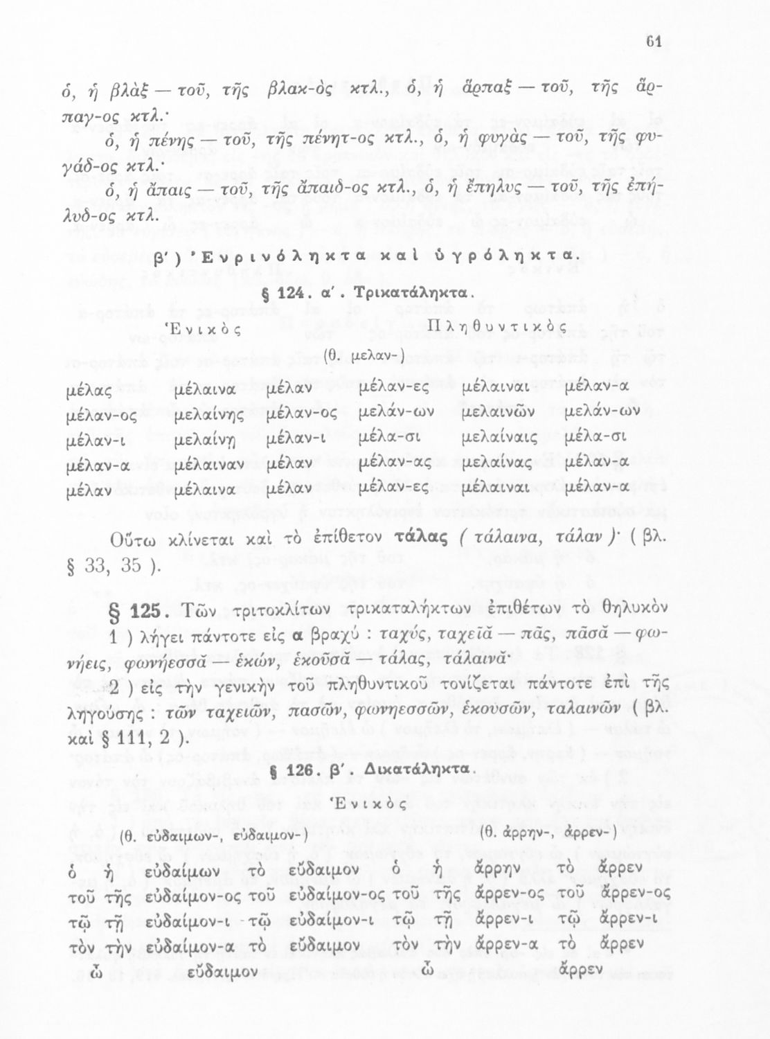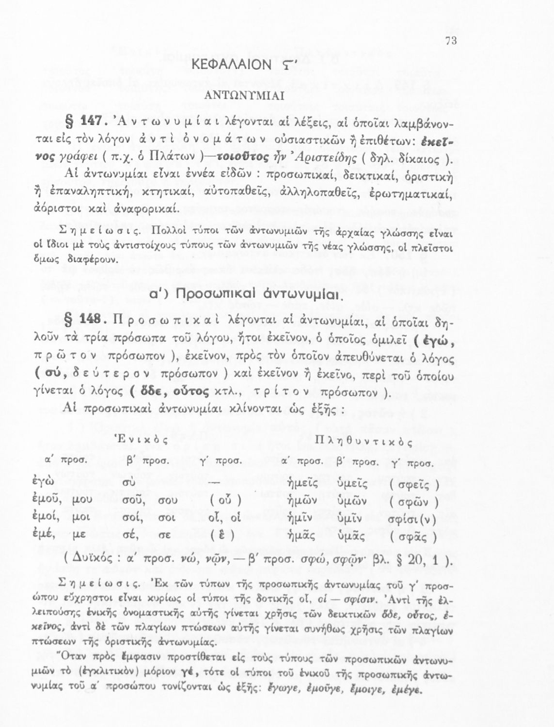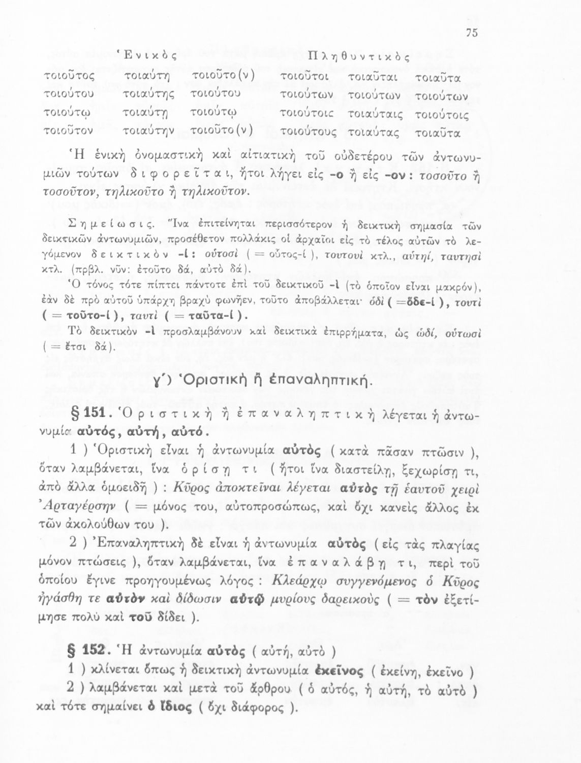 Σχολικό εγχειρίδιο Αρχαίων Ελληνικών Α', Β', και Γ' Γυμνασίου που περιέχει τους κανόνες γραμματικής και είναι χωρισμένο σε φθογγολογικό, τυπολογικό και ετυμολογικό μέρος. Περιέχει και κατάλογο ανωμάλων ρημάτων.