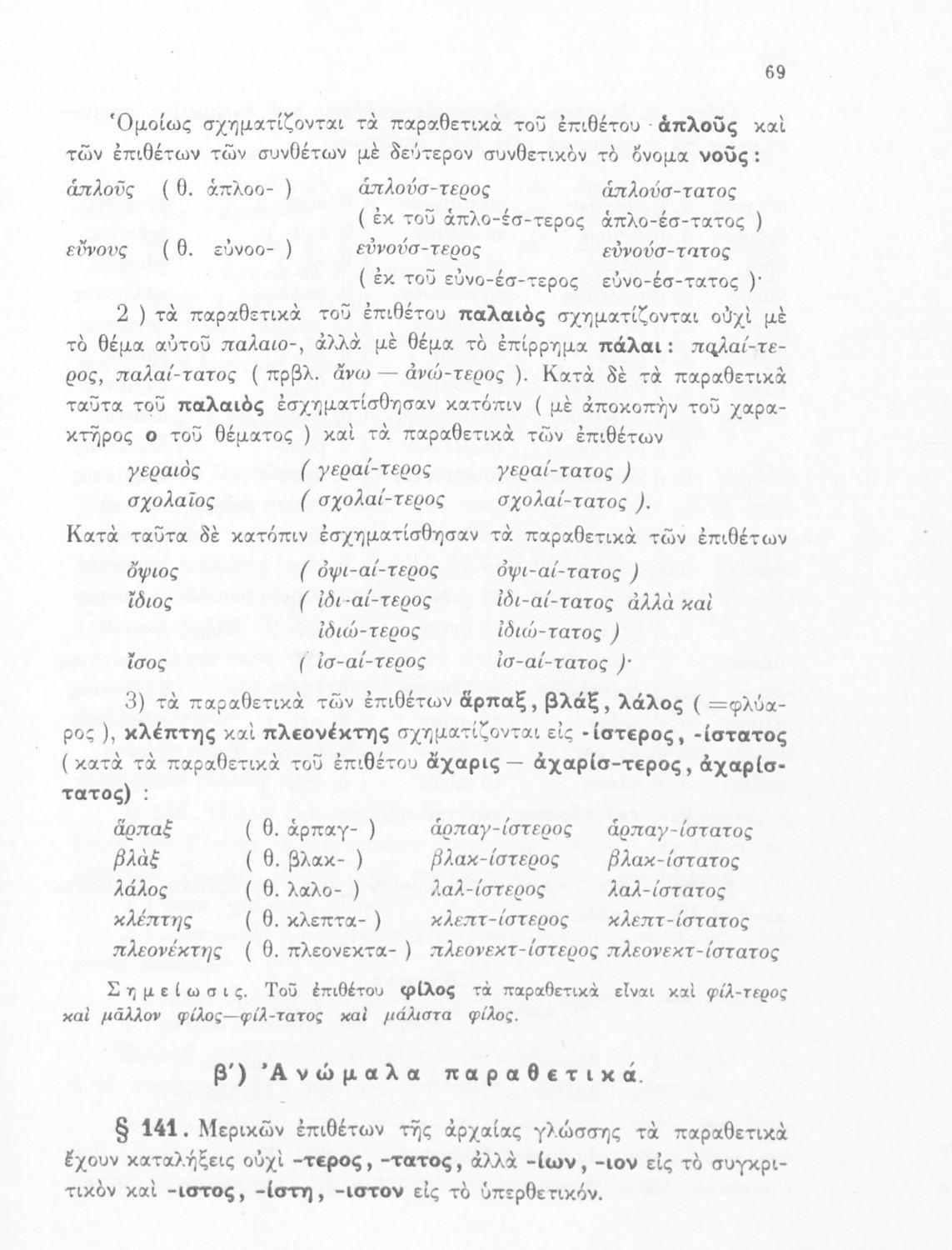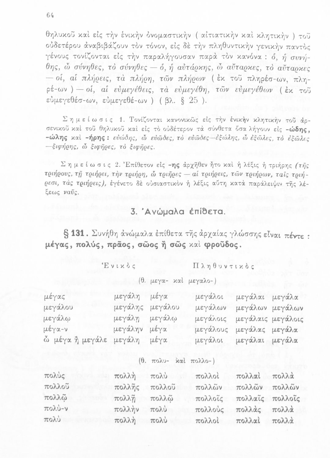 Σχολικό εγχειρίδιο Αρχαίων Ελληνικών Γ΄ Γυμνασίου που περιέχει τους κανόνες γραμματικής και είναι χωρισμένο σε φθογγολογικό, τυπολογικό και ετυμολογικό μέρος. Περιέχει και κατάλογο ανωμάλων ρημάτων.
