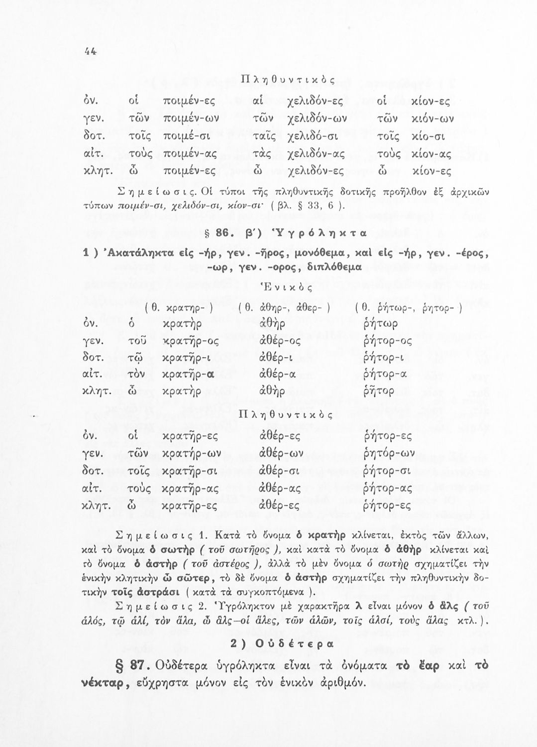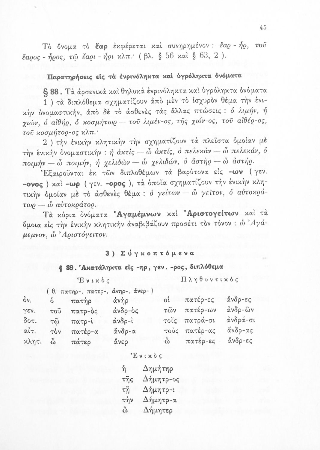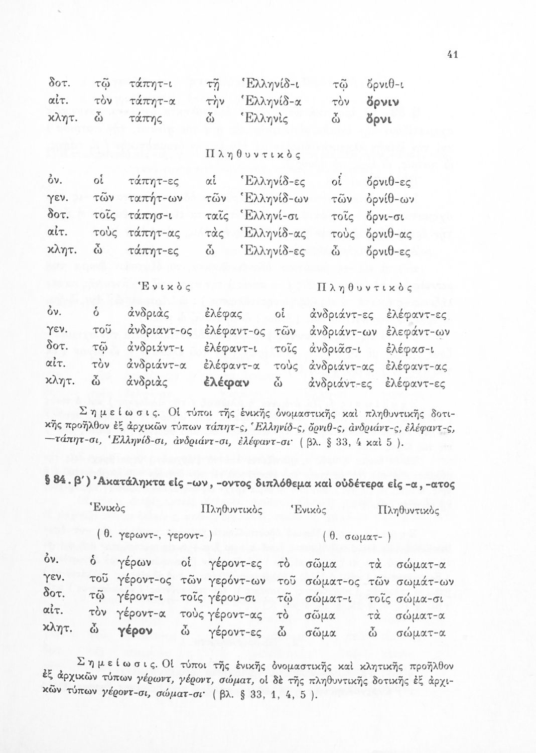 Σχολικό εγχειρίδιο Αρχαίων Ελληνικών Γ΄ Γυμνασίου που περιέχει τους κανόνες γραμματικής και είναι χωρισμένο σε φθογγολογικό, τυπολογικό και ετυμολογικό μέρος. Περιέχει και κατάλογο ανωμάλων ρημάτων.