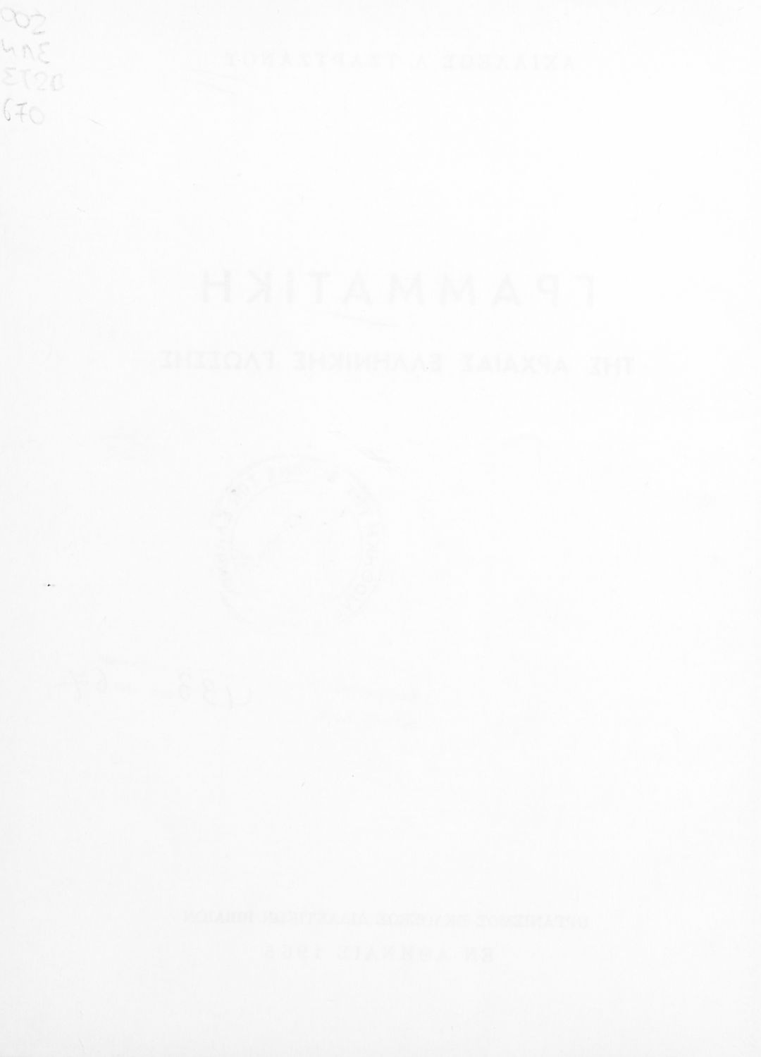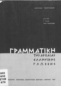 Τίτλος: Γραμματική της αρχαίας ελληνικής γλώσσης δια την Γ΄ τάξιν των Γυμνασίων