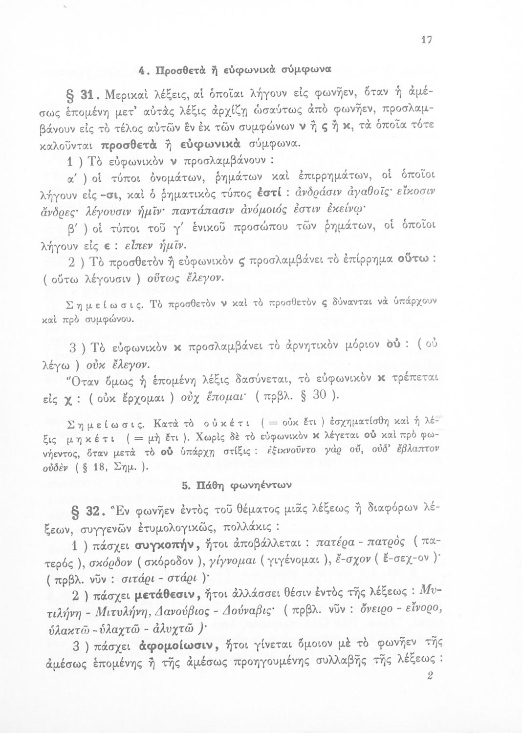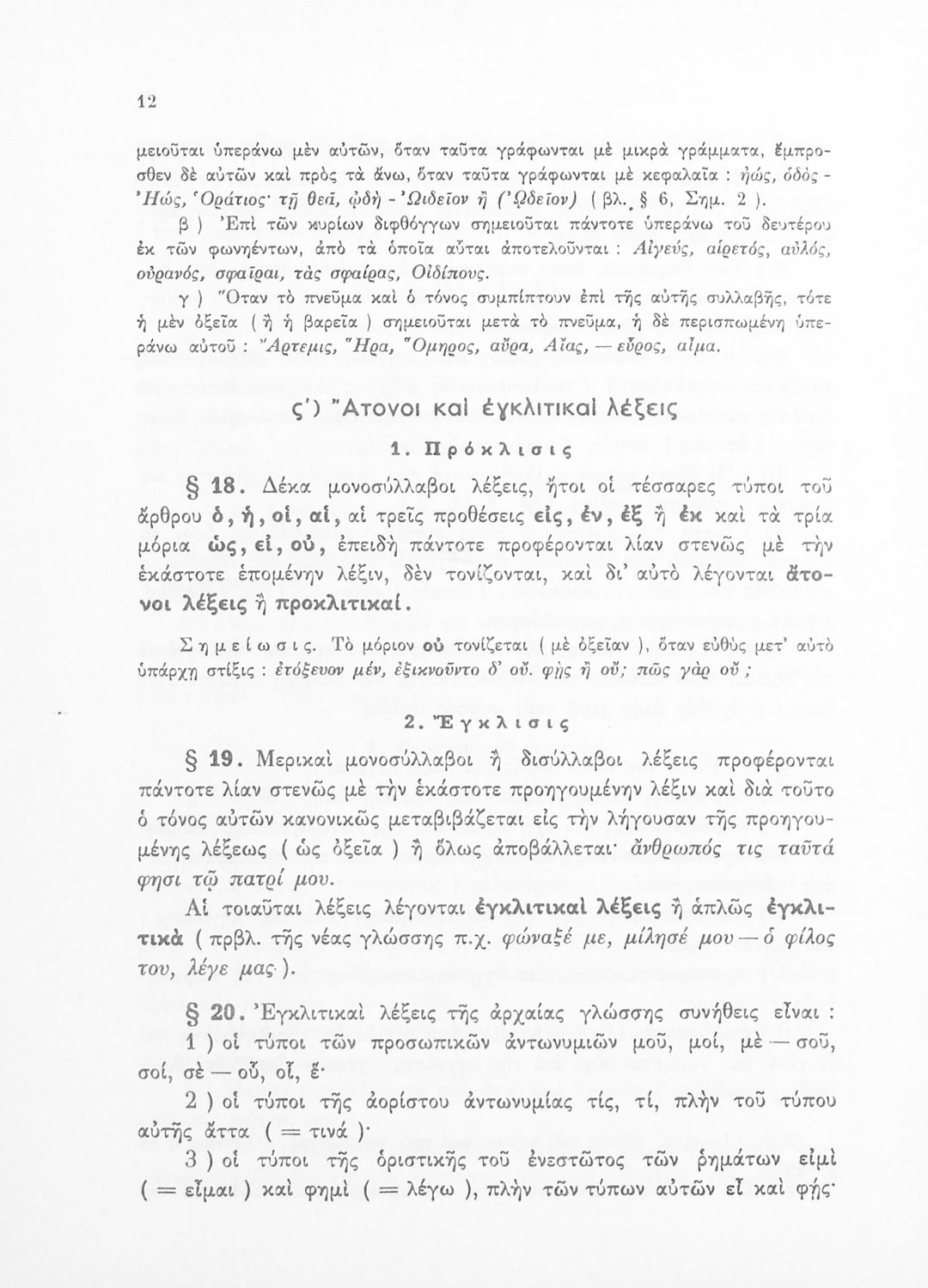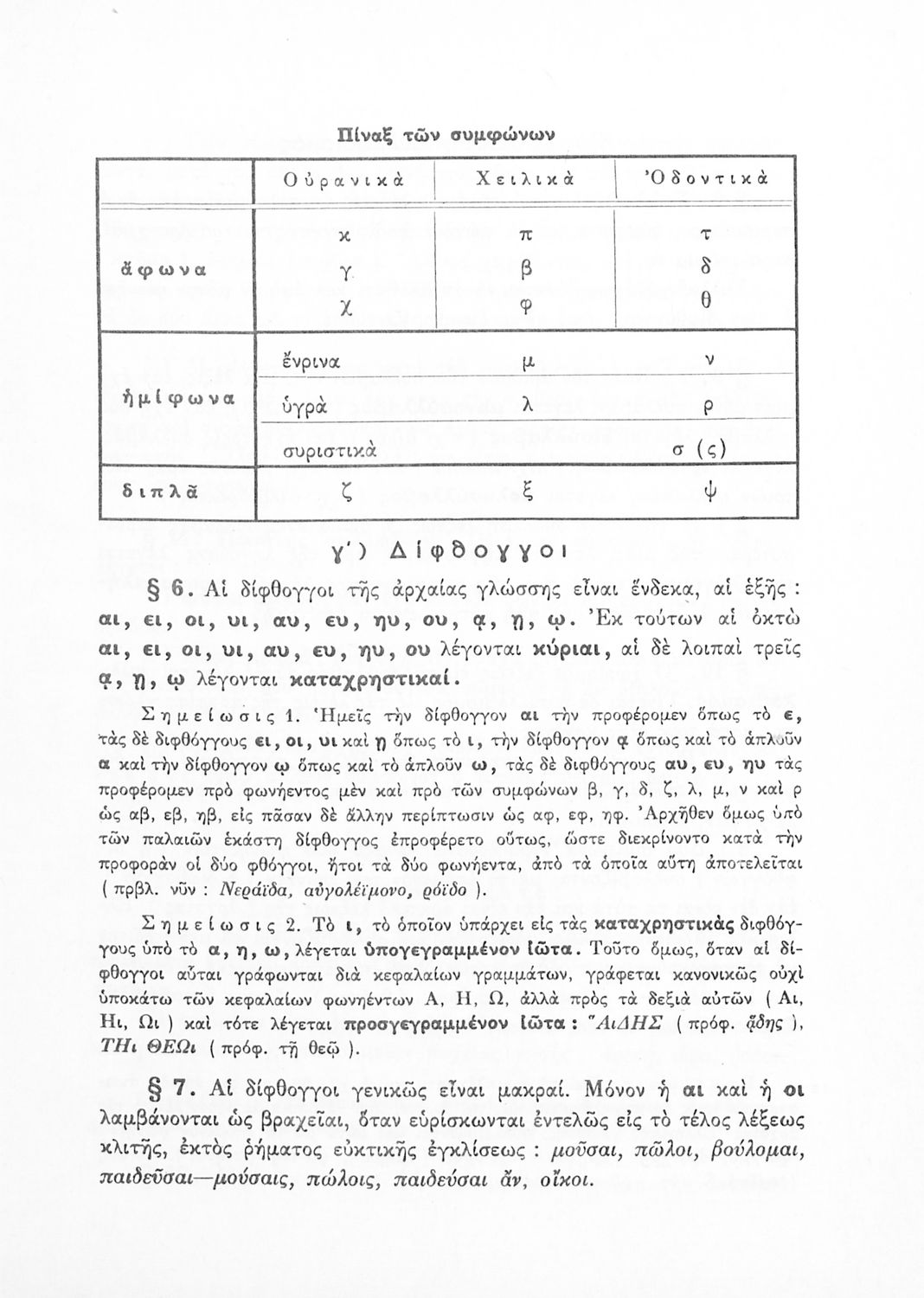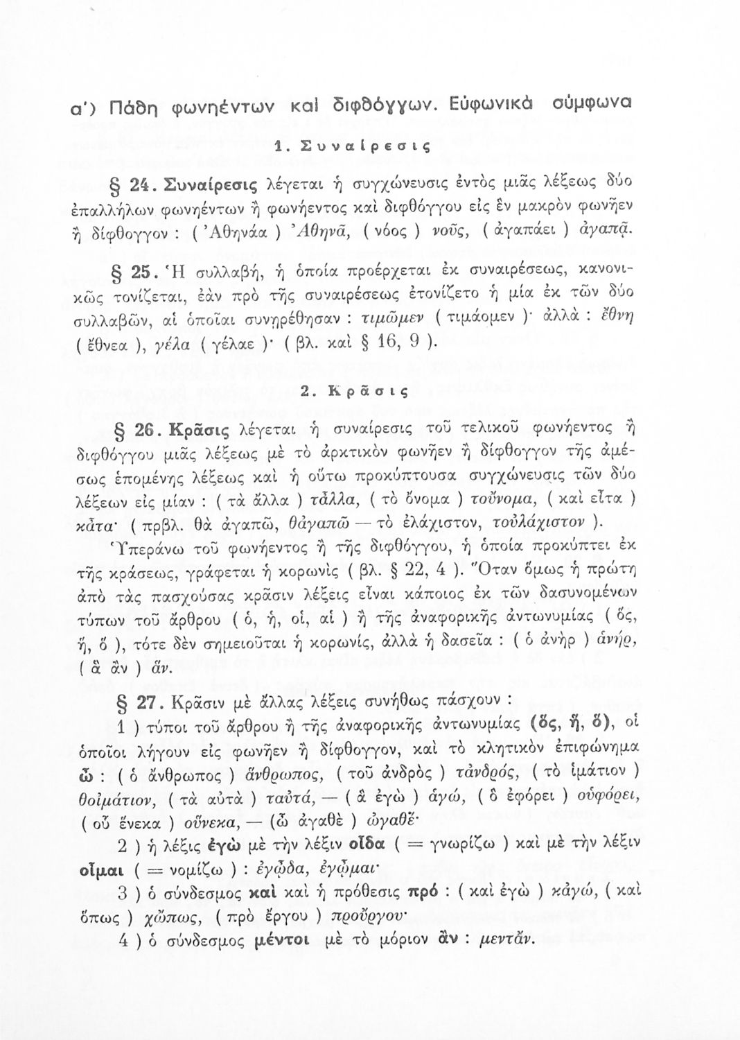 Σχολικό εγχειρίδιο Αρχαίων Ελληνικών Γ΄ Γυμνασίου που περιέχει τους κανόνες γραμματικής και είναι χωρισμένο σε φθογγολογικό, τυπολογικό και ετυμολογικό μέρος. Περιέχει και κατάλογο ανωμάλων ρημάτων.