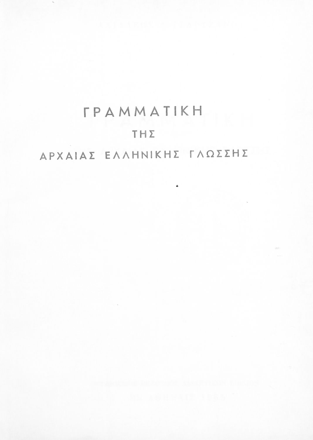 Σχολικό εγχειρίδιο Αρχαίων Ελληνικών Α΄, Β΄, Γ' Ελληνικού Σχολείου που αποτελεί γραμματική της αρχαίας ελληνικής και είναι χωρισμένο στο φθογγολογικό και το τυπολογικό μέρος. Περιέχει και σύντομα κείμενα που ...