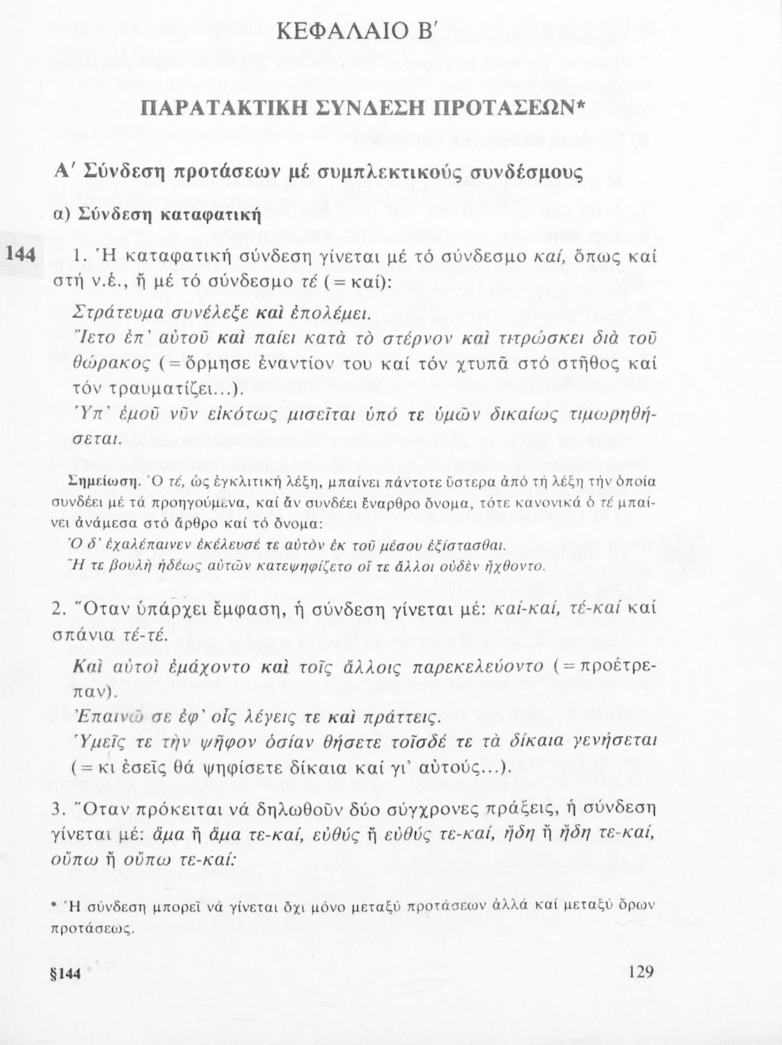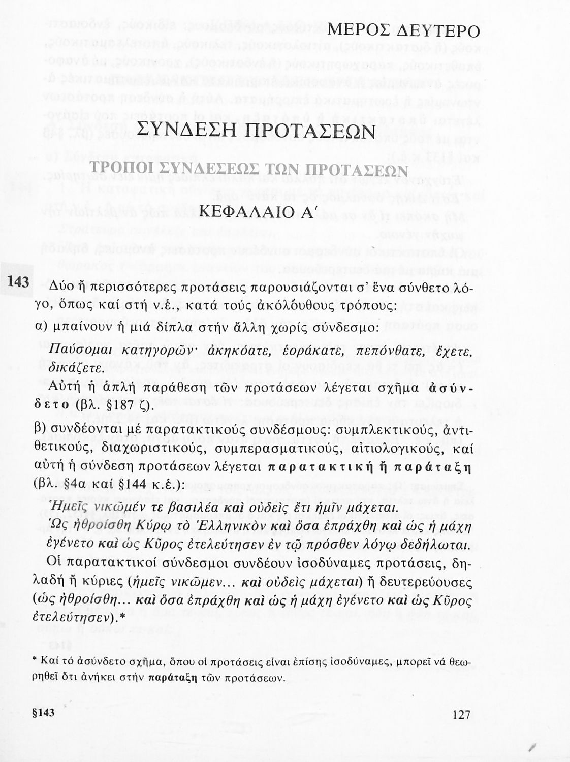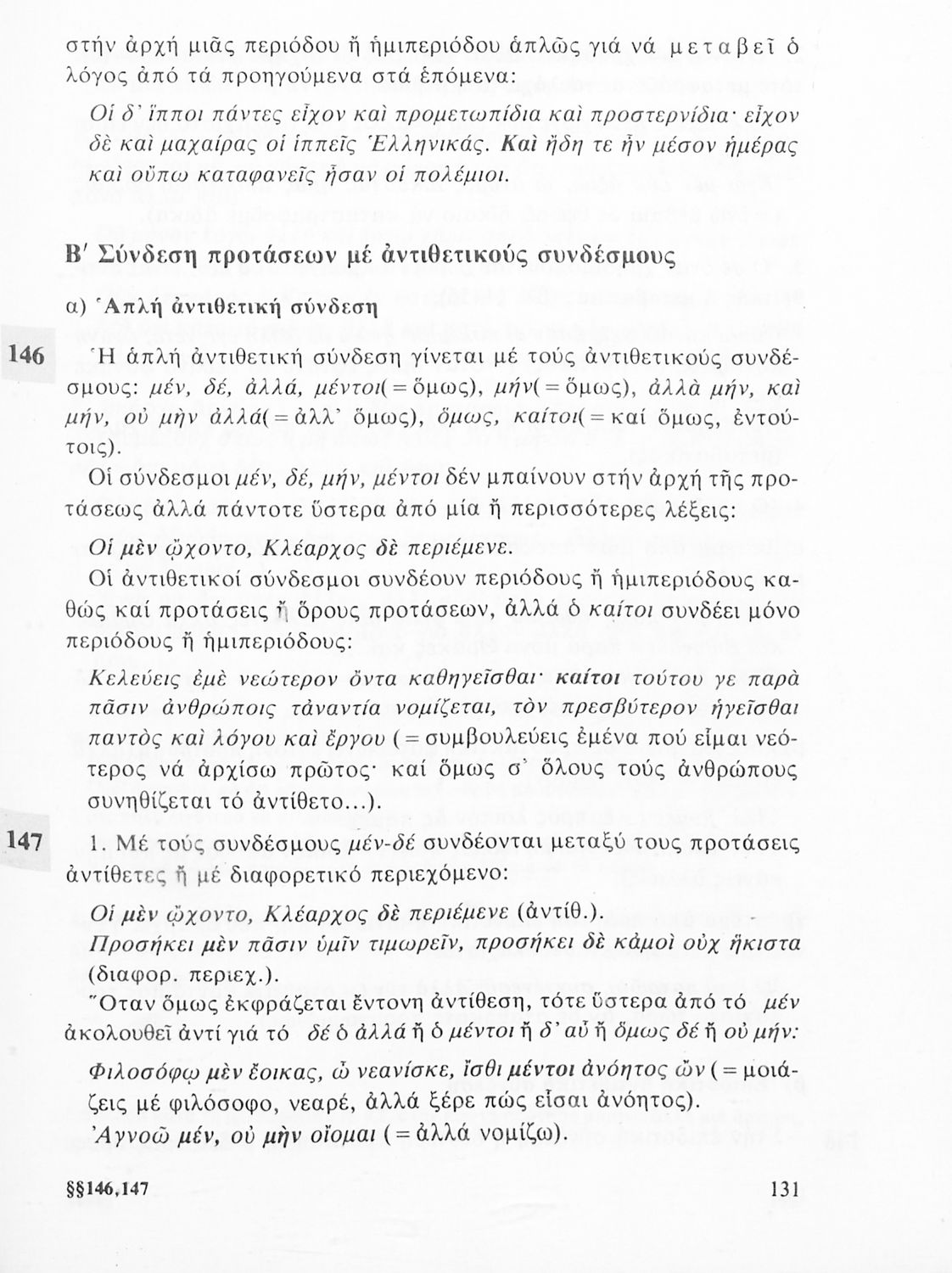Σχολικό εγχειρίδιο Αρχαίων Ελληνικών Γ΄ Γυμνασίου και Α΄ Λυκείου που εξετάζει τα μέρη του λόγου και την σύνταξή τους.
