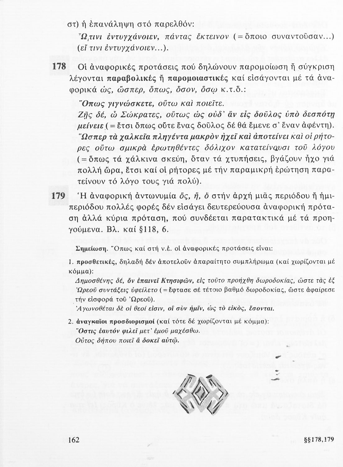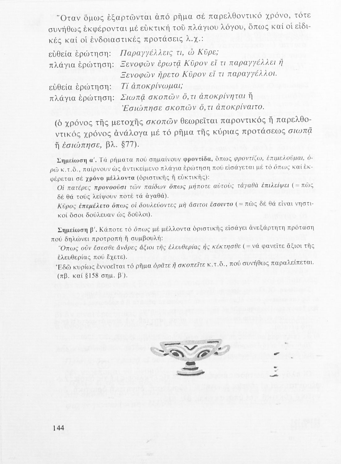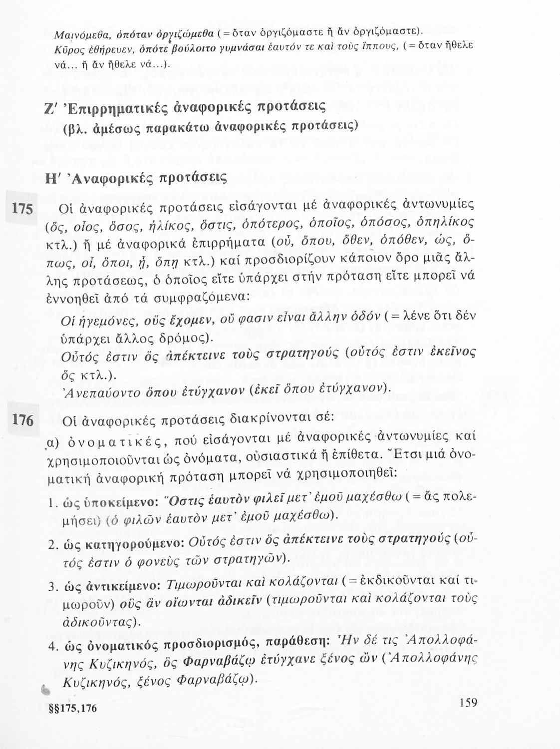 Σχολικό εγχειρίδιο Αρχαίων Ελληνικών για τις Α΄, Β΄ και Γ΄ Λυκείου που εξετάζει τα μέρη του λόγου και την σύνταξή τους.