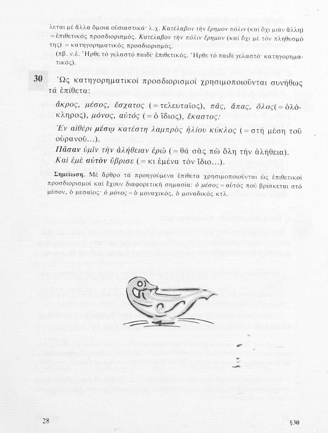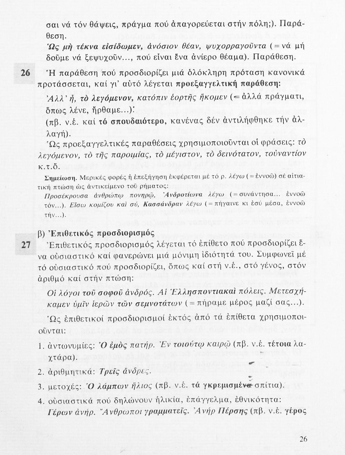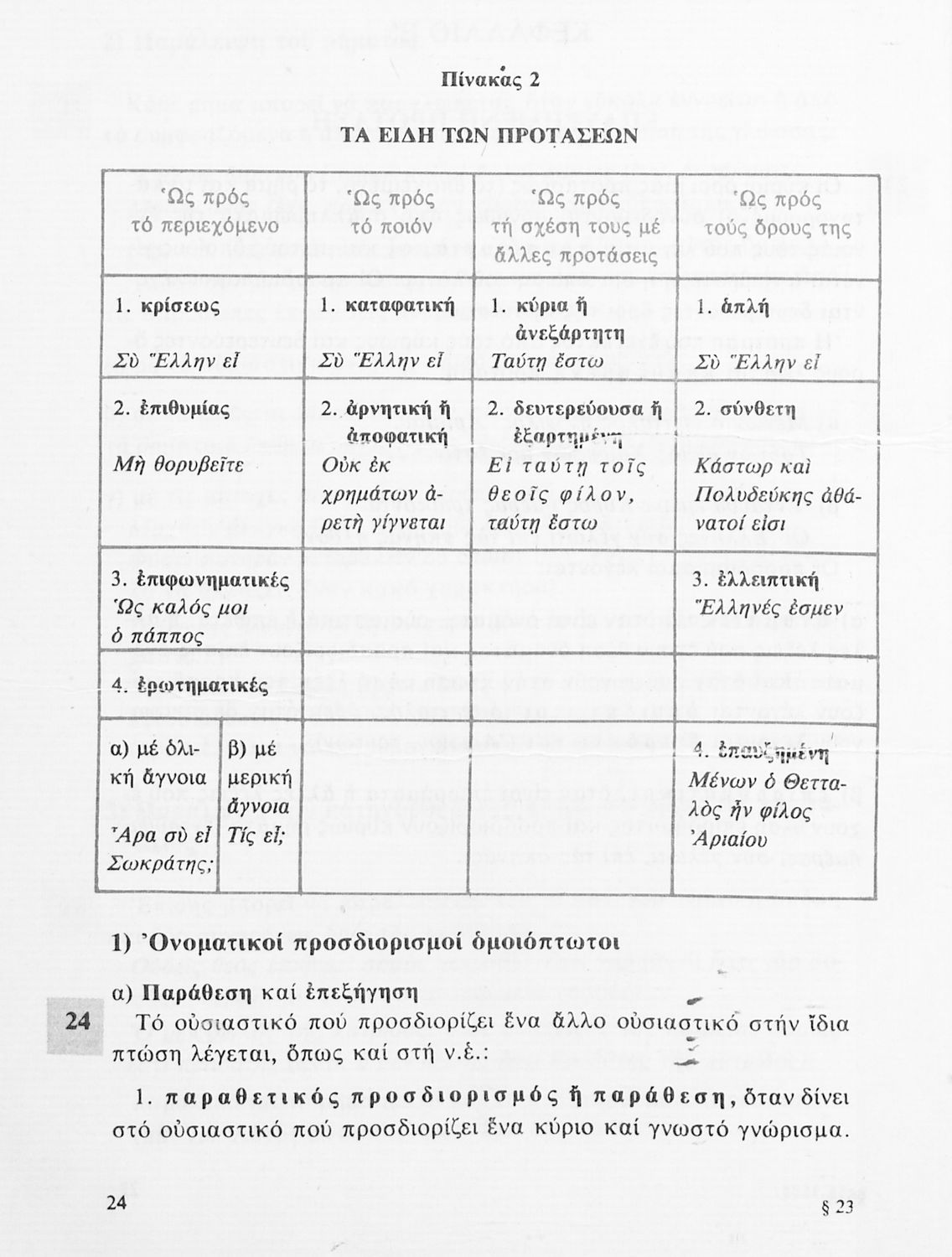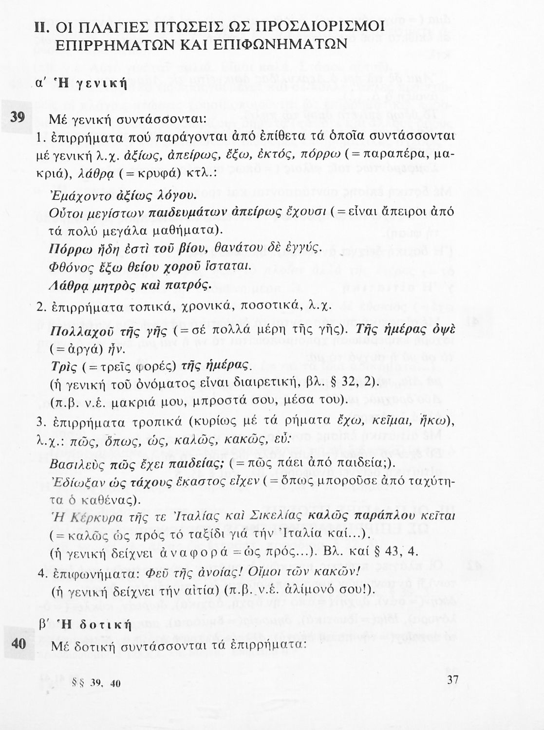 Σχολικό εγχειρίδιο Αρχαίων Ελληνικών Γ΄ Γυμνασίου και Α΄ Λυκείου που εξετάζει τα μέρη του λόγου και την σύνταξή τους.