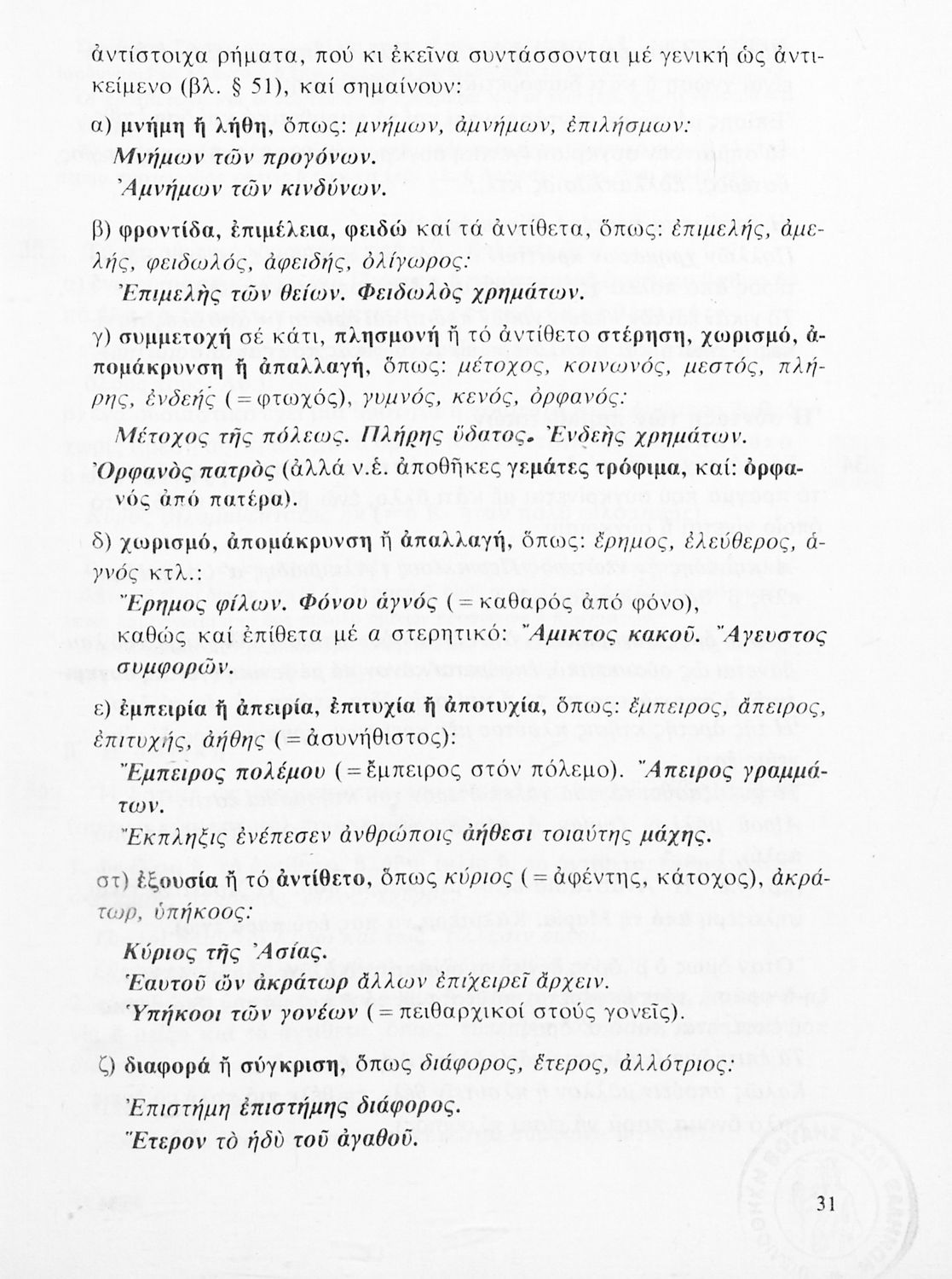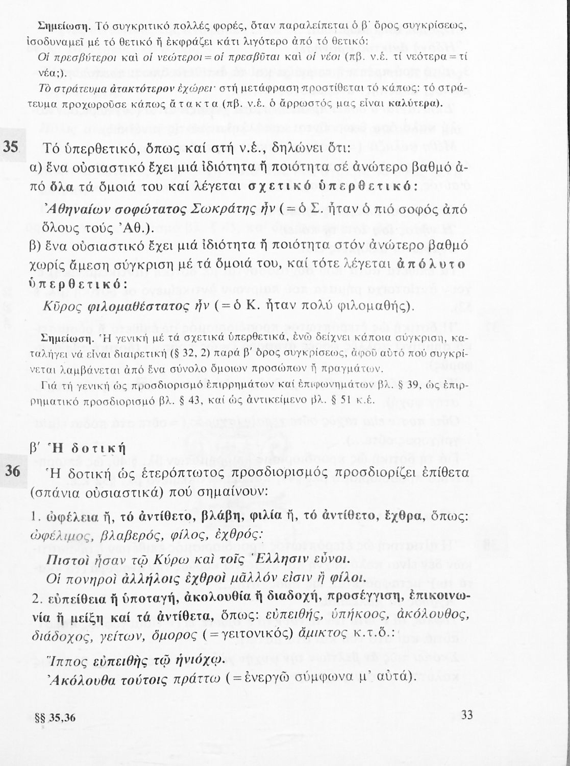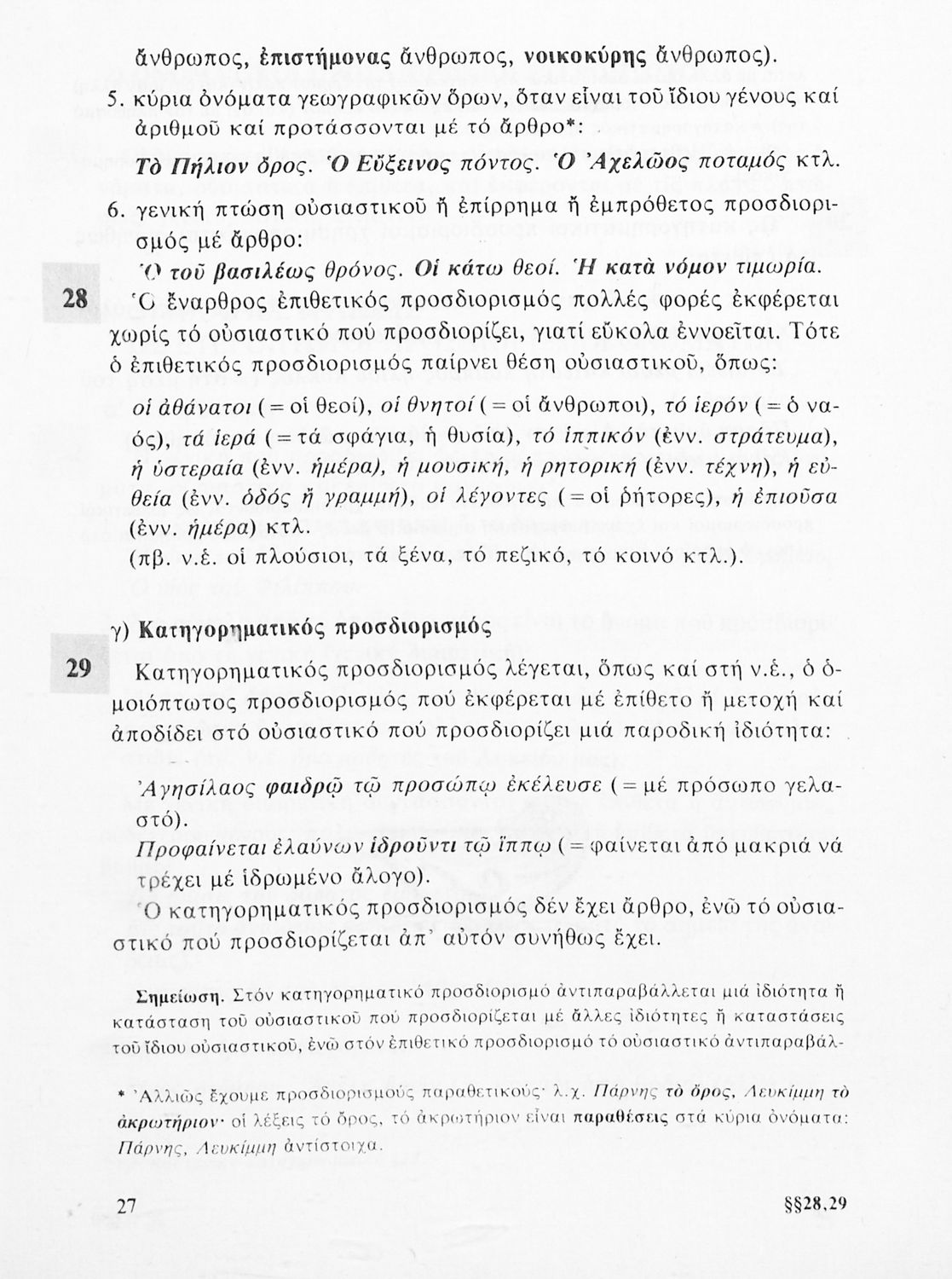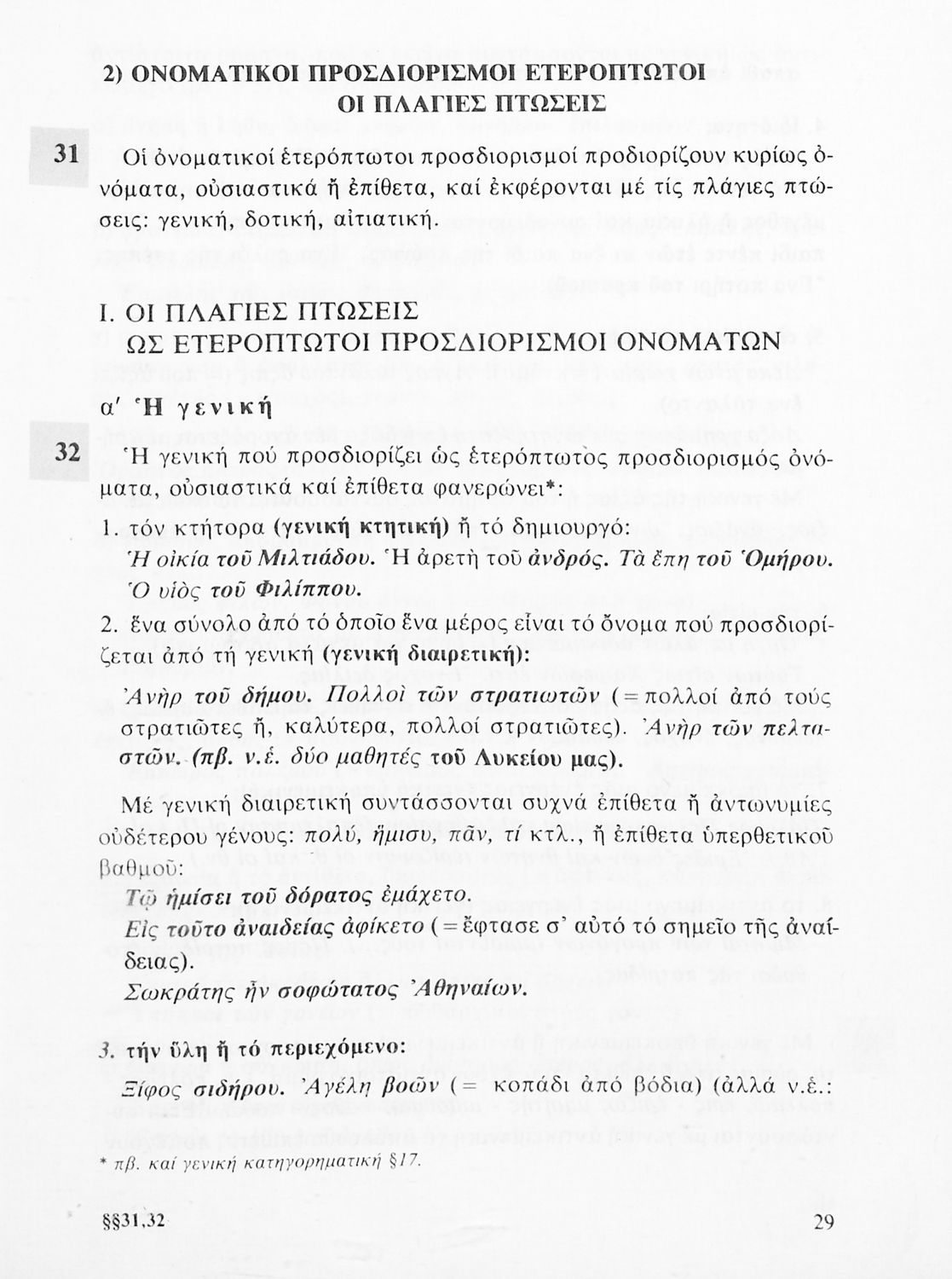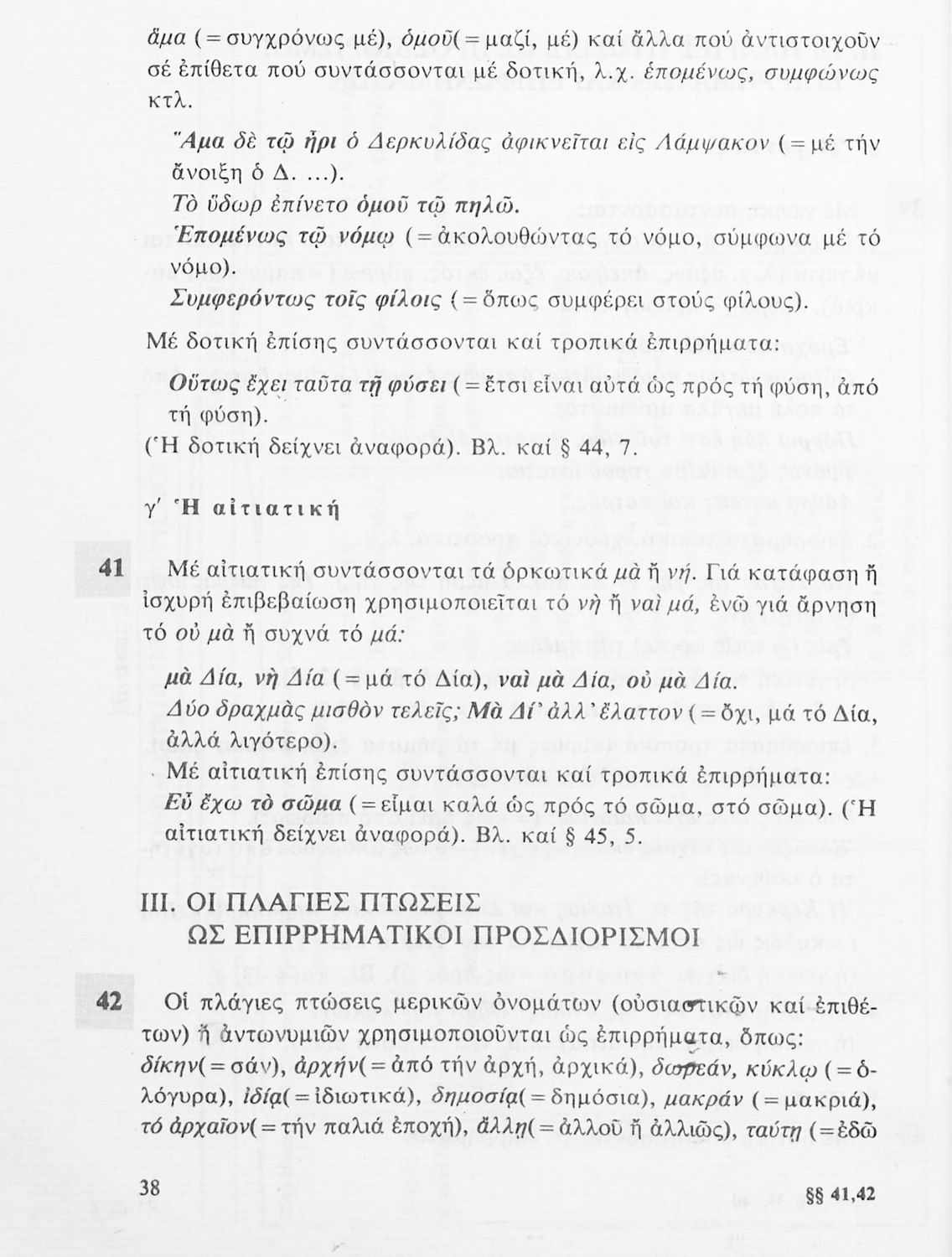 Σχολικό εγχειρίδιο Αρχαίων Ελληνικών Γ΄ Γυμνασίου και Α΄ Λυκείου που εξετάζει τα μέρη του λόγου και την σύνταξή τους.
