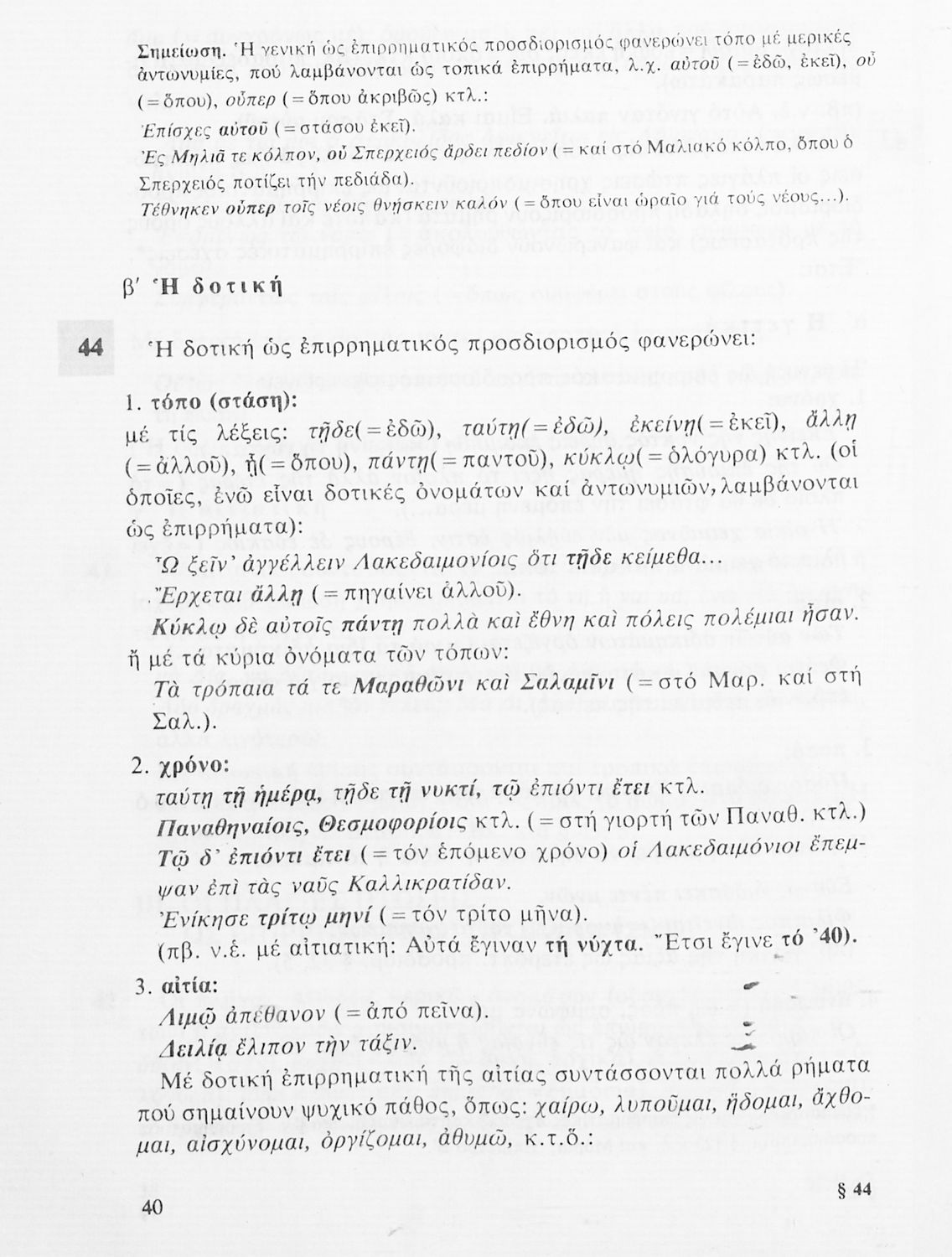 Βαθμίδα εκπαίδευσης: Δευτεροβάθμια Τάξη: Α' Λυκείου / Β' Λυκείου / Γ' Λυκείου Μάθημα: Αρχαία Ελληνικά Γλώσσα: Δημοτική Παρουσίαση περιεχομένου: Σχολικό εγχειρίδιο Αρχαίων Ελληνικών για τις Α΄, Β΄ και Γ΄ Λυκείου που εξετάζει τα μέρη του λόγου και την σύνταξή τους. |