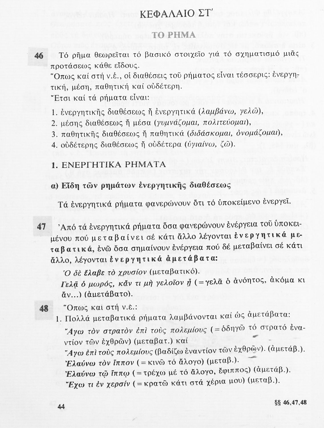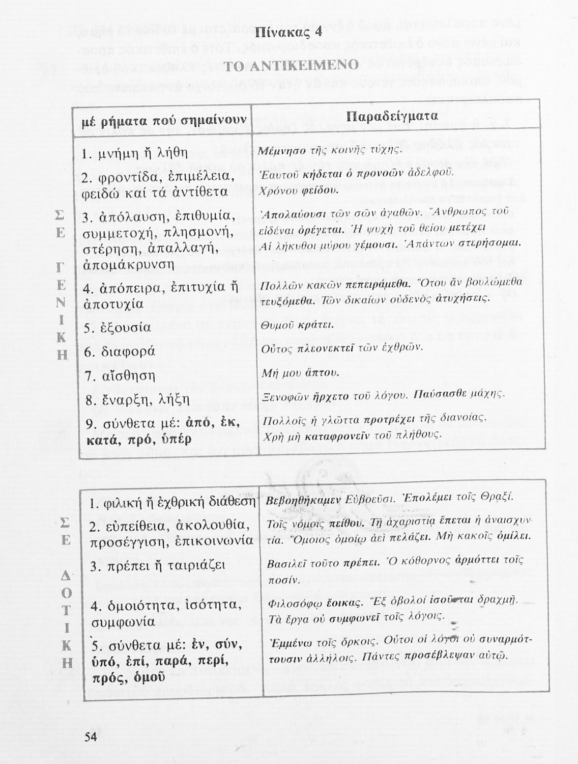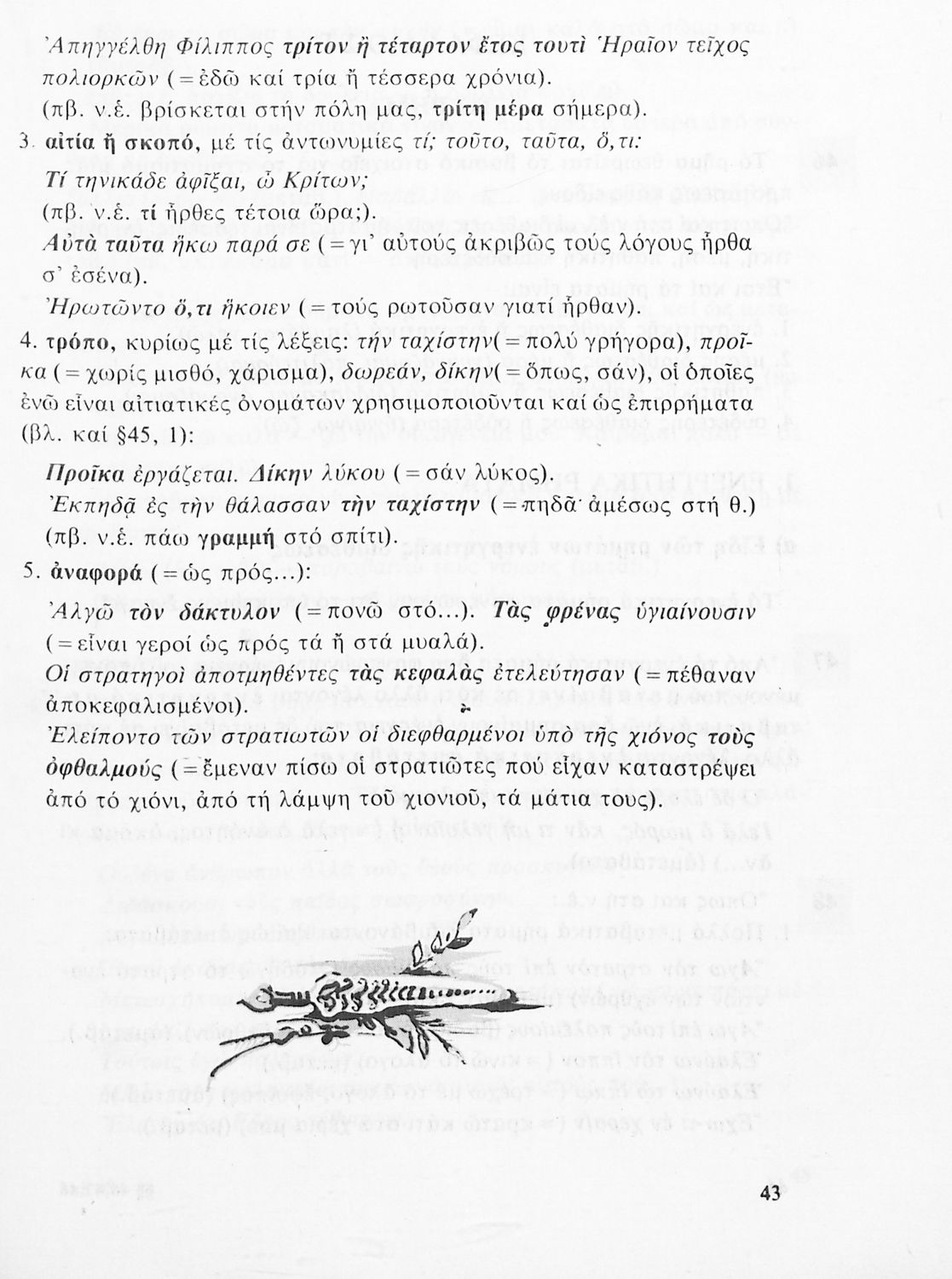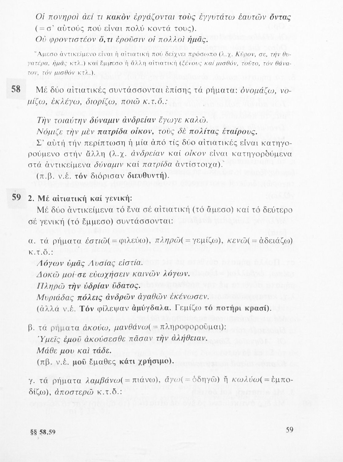 Σχολικό εγχειρίδιο Αρχαίων Ελληνικών για τις Α΄, Β΄ και Γ΄ Λυκείου που εξετάζει τα μέρη του λόγου και την σύνταξή τους.