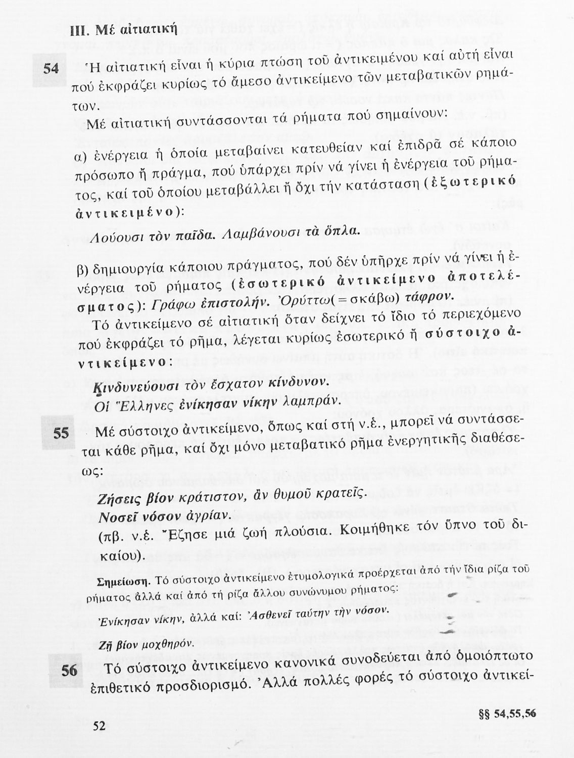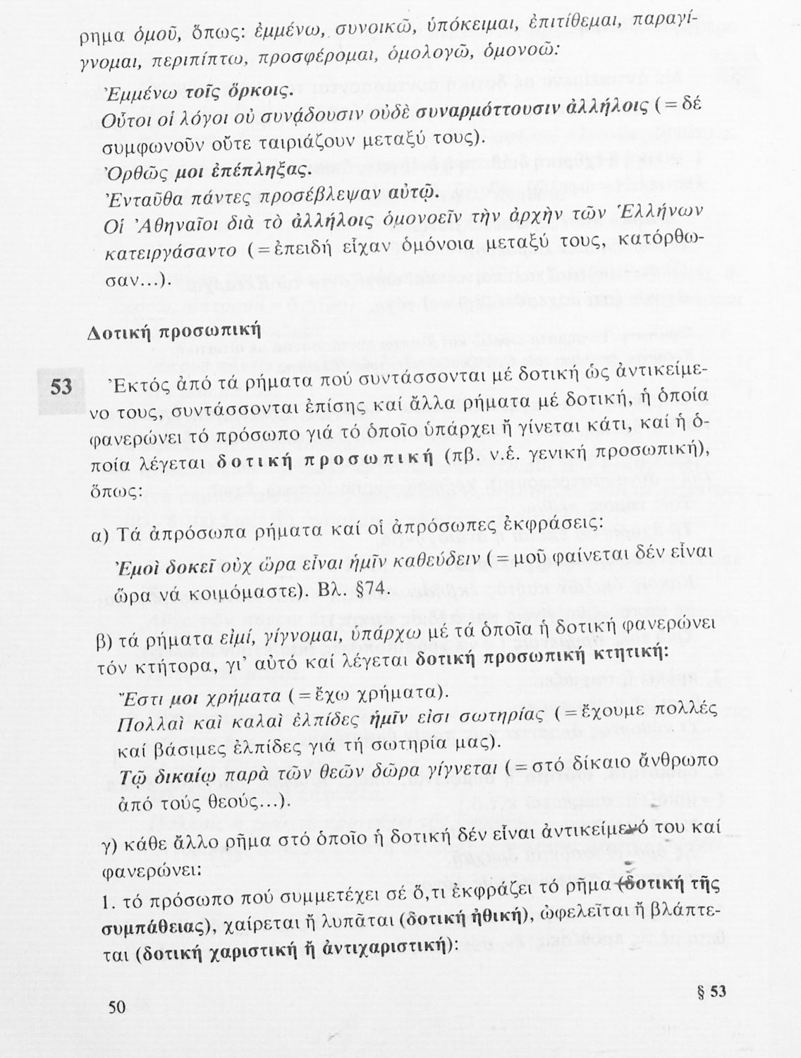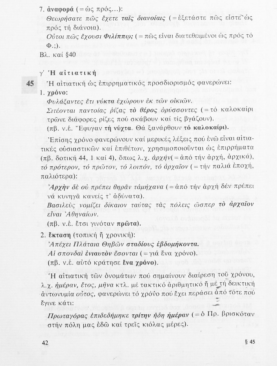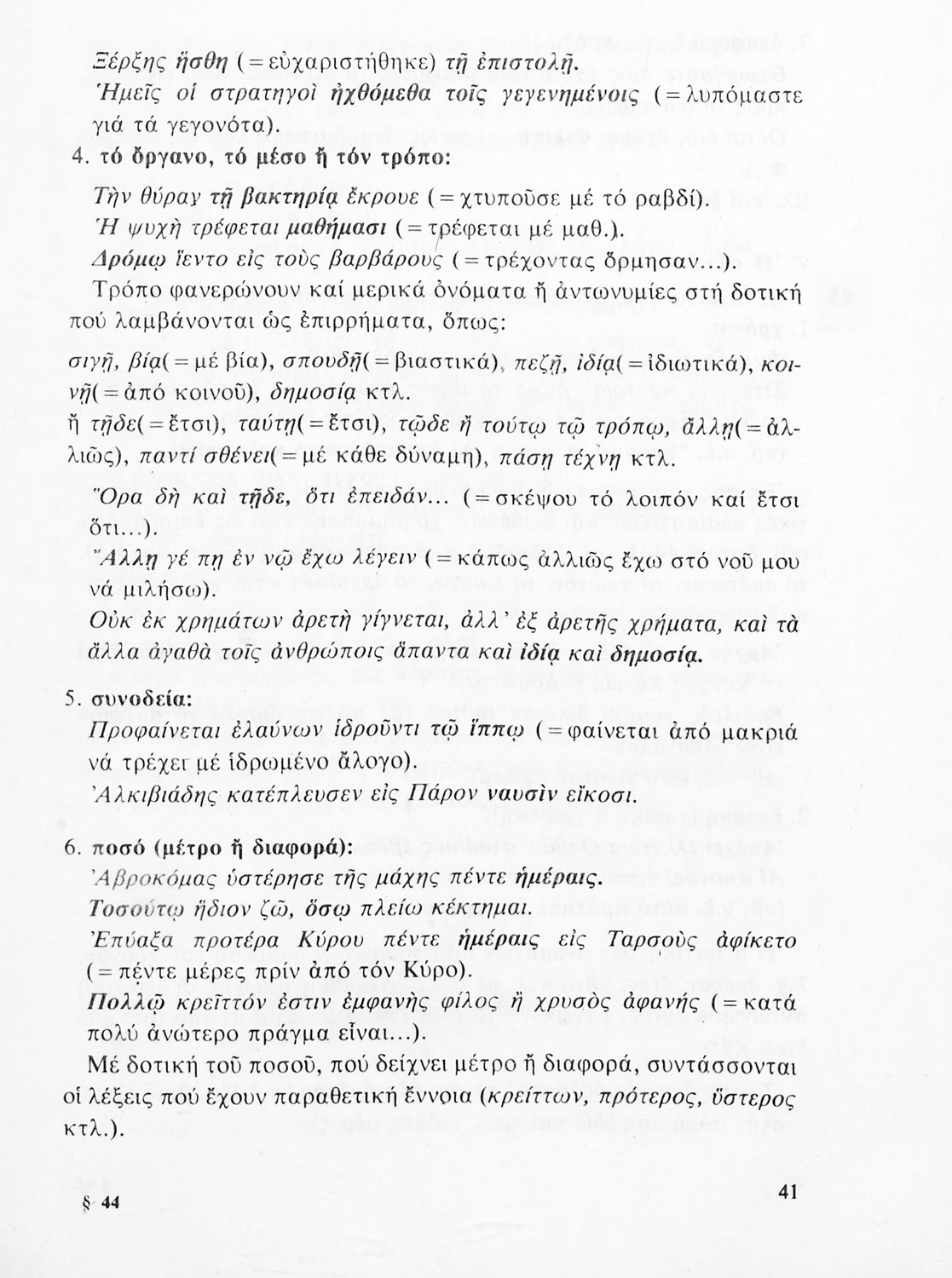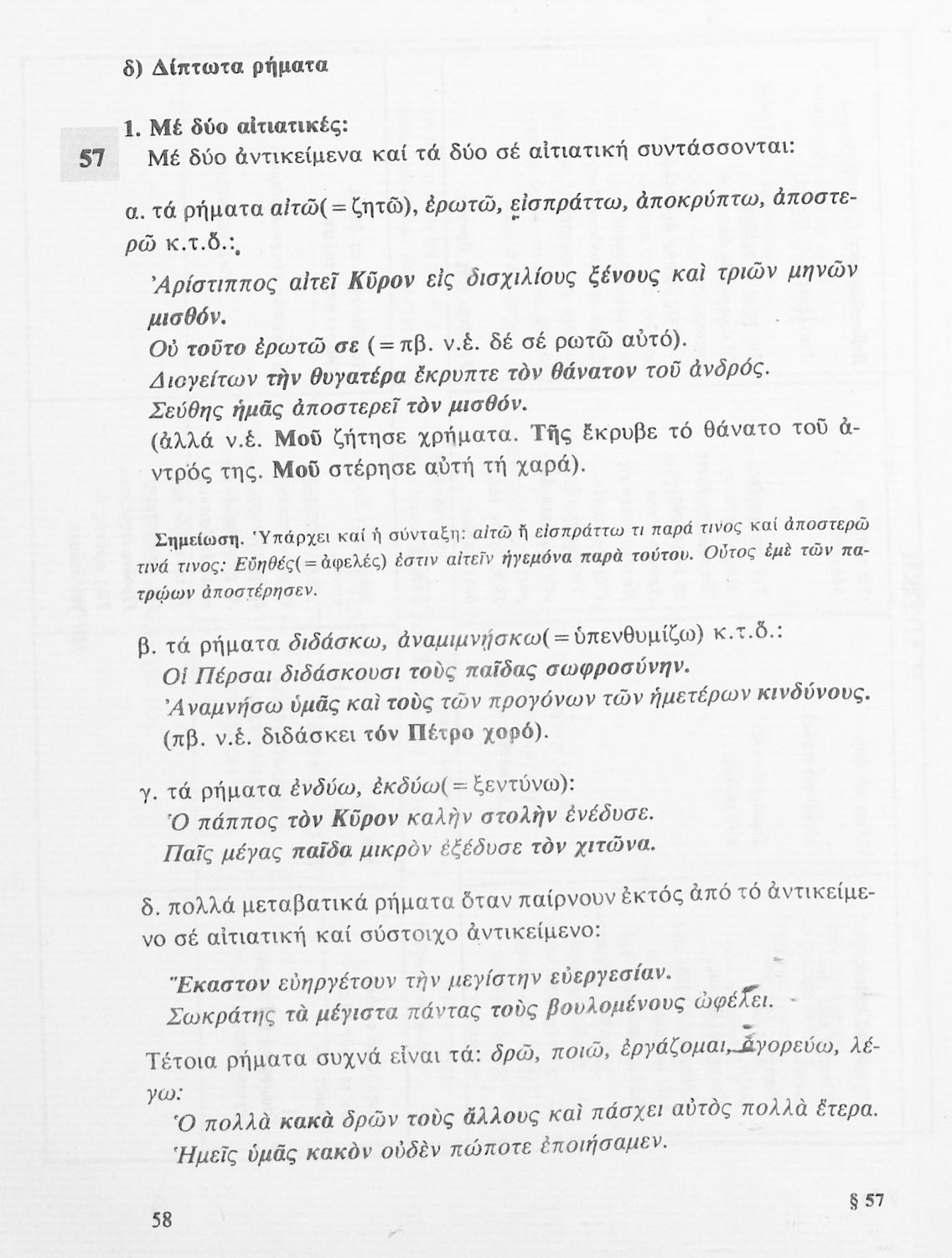 Σχολικό εγχειρίδιο Αρχαίων Ελληνικών για τις Α΄, Β΄ και Γ΄ Λυκείου που εξετάζει τα μέρη του λόγου και την σύνταξή τους.
