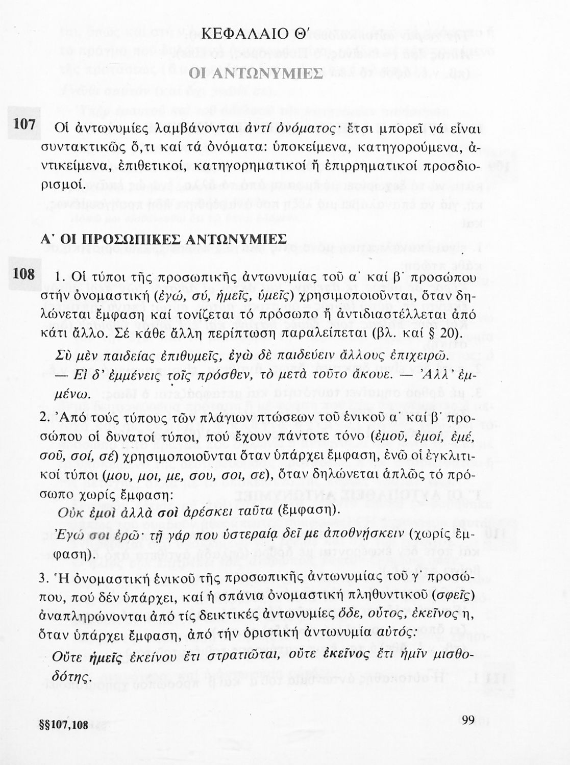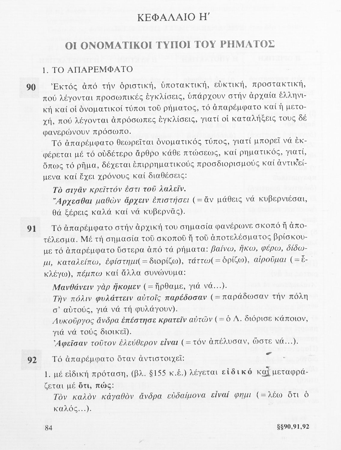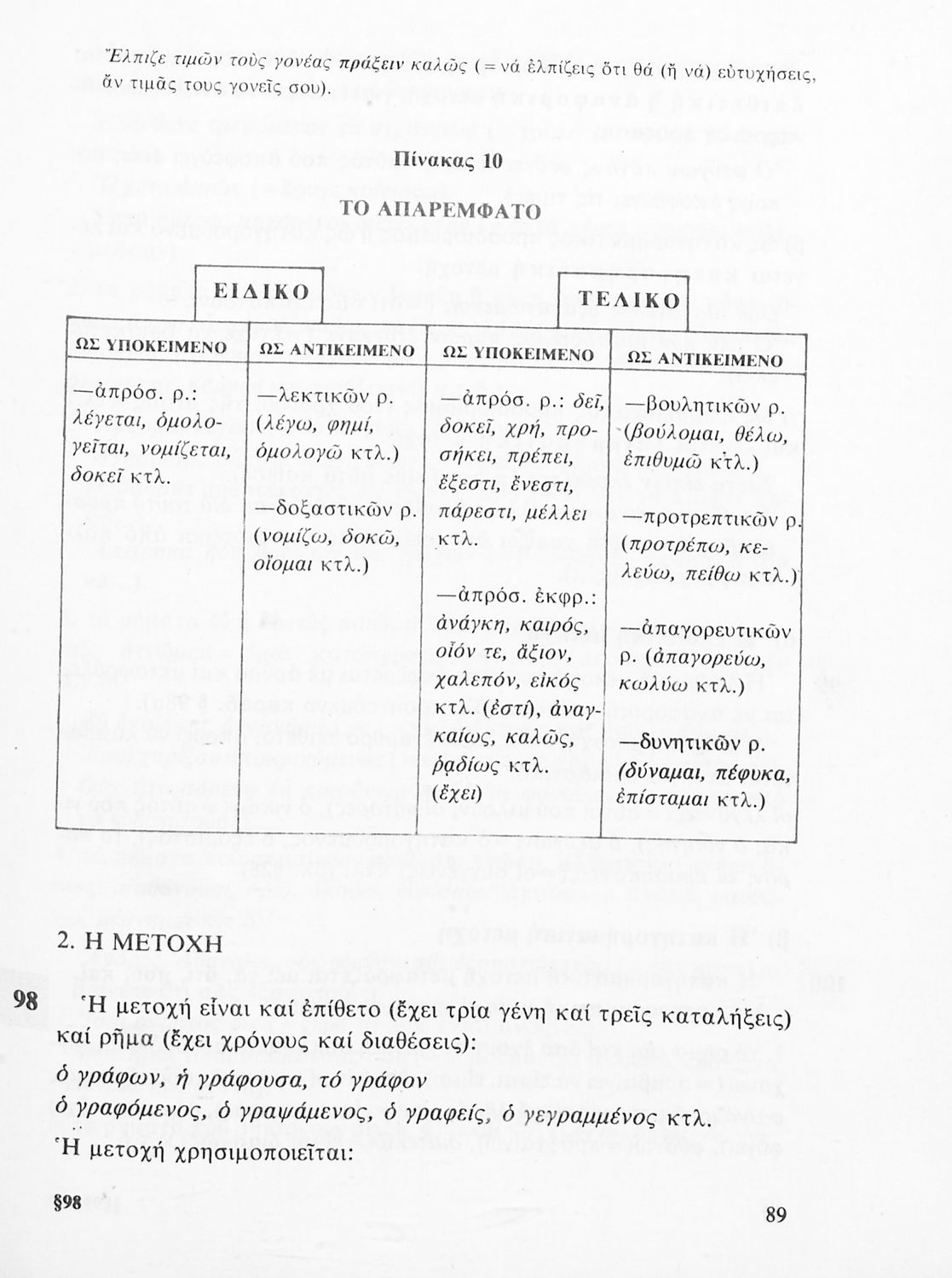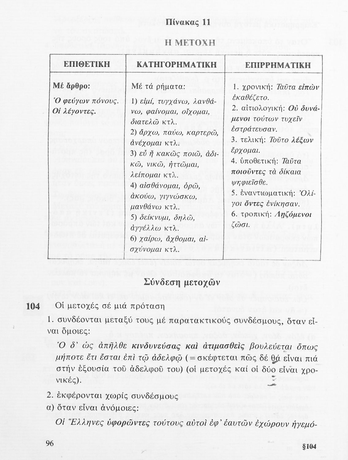 Σχολικό εγχειρίδιο Αρχαίων Ελληνικών Γ΄ Γυμνασίου και Α΄ Λυκείου που εξετάζει τα μέρη του λόγου και την σύνταξή τους.