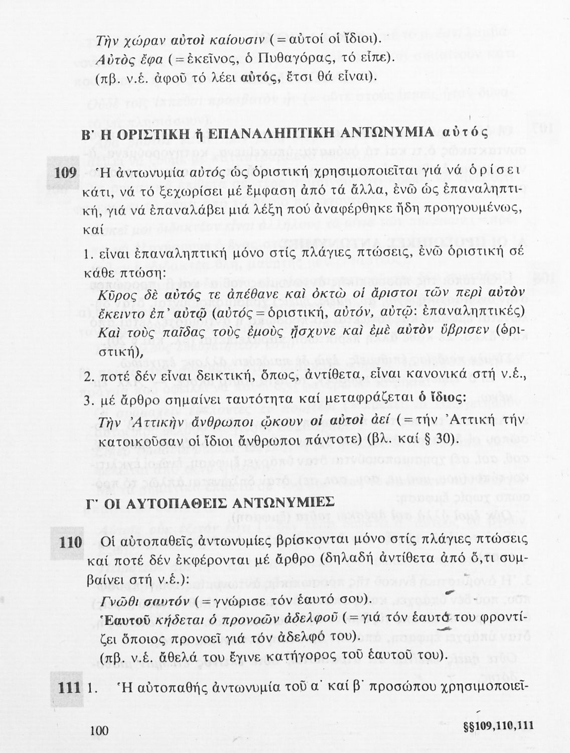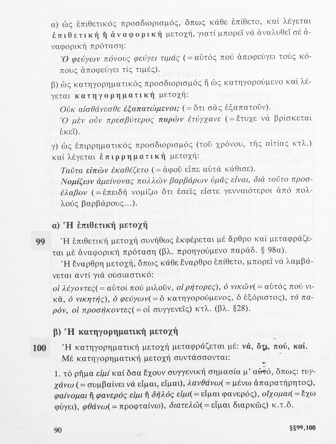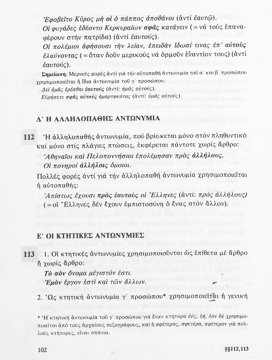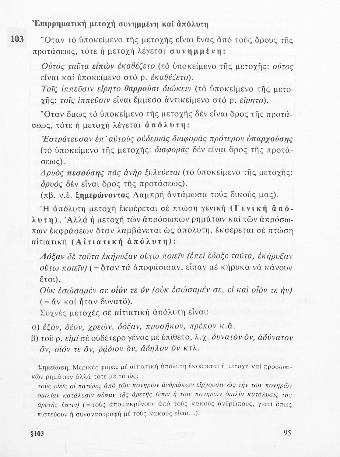 Σχολικό εγχειρίδιο Αρχαίων Ελληνικών Γ΄ Γυμνασίου και Α΄ Λυκείου που εξετάζει τα μέρη του λόγου και την σύνταξή τους.