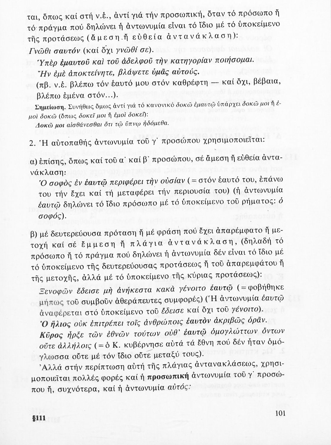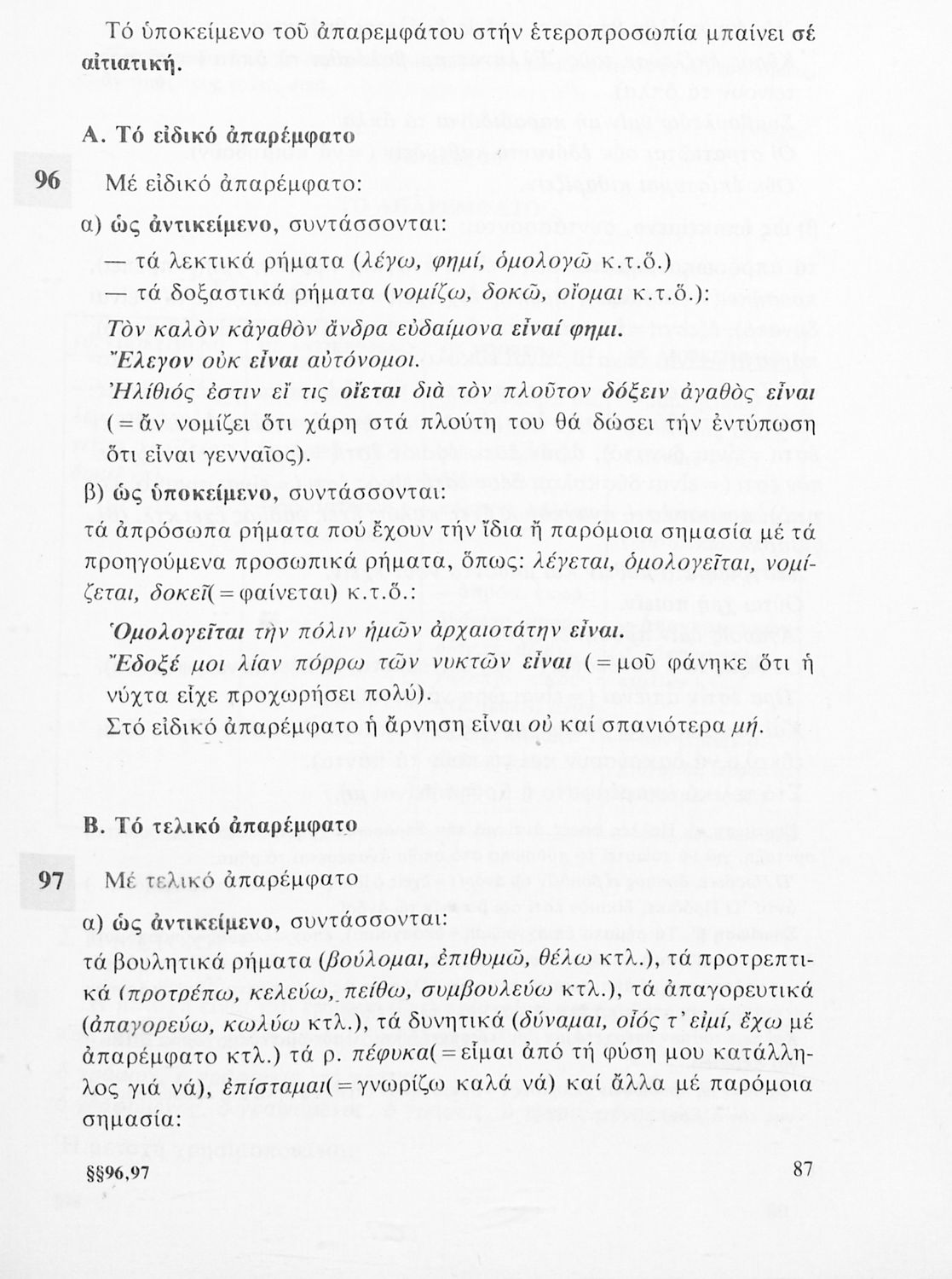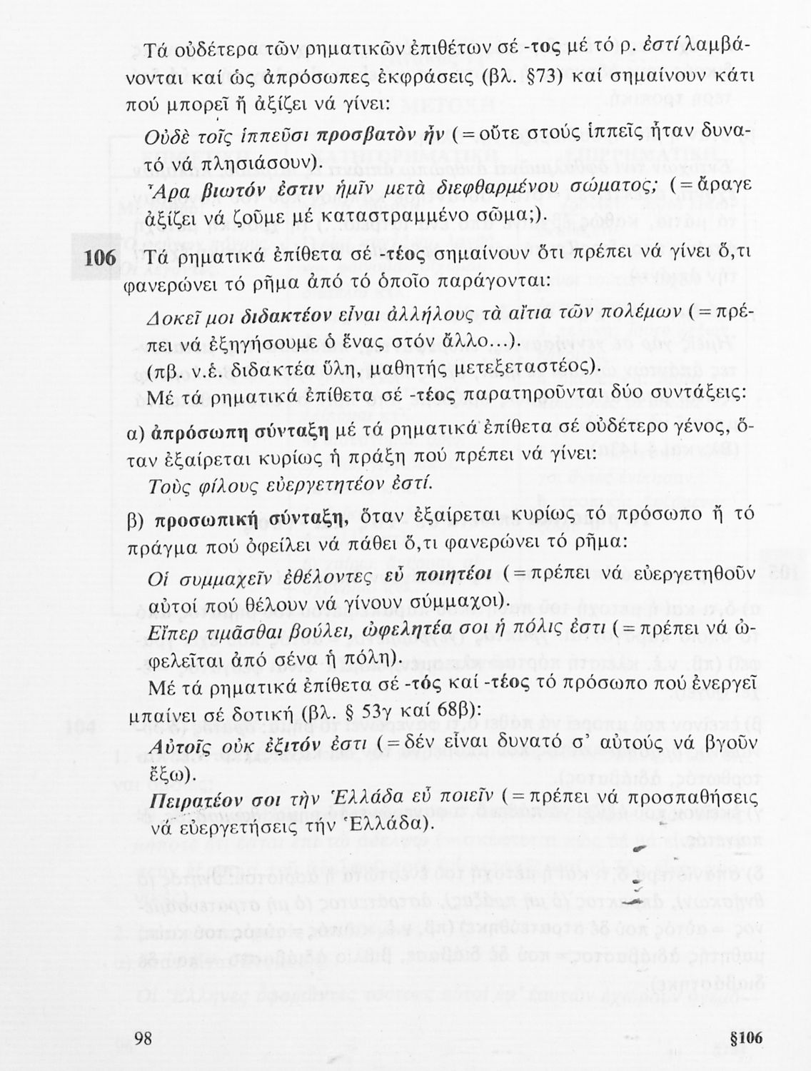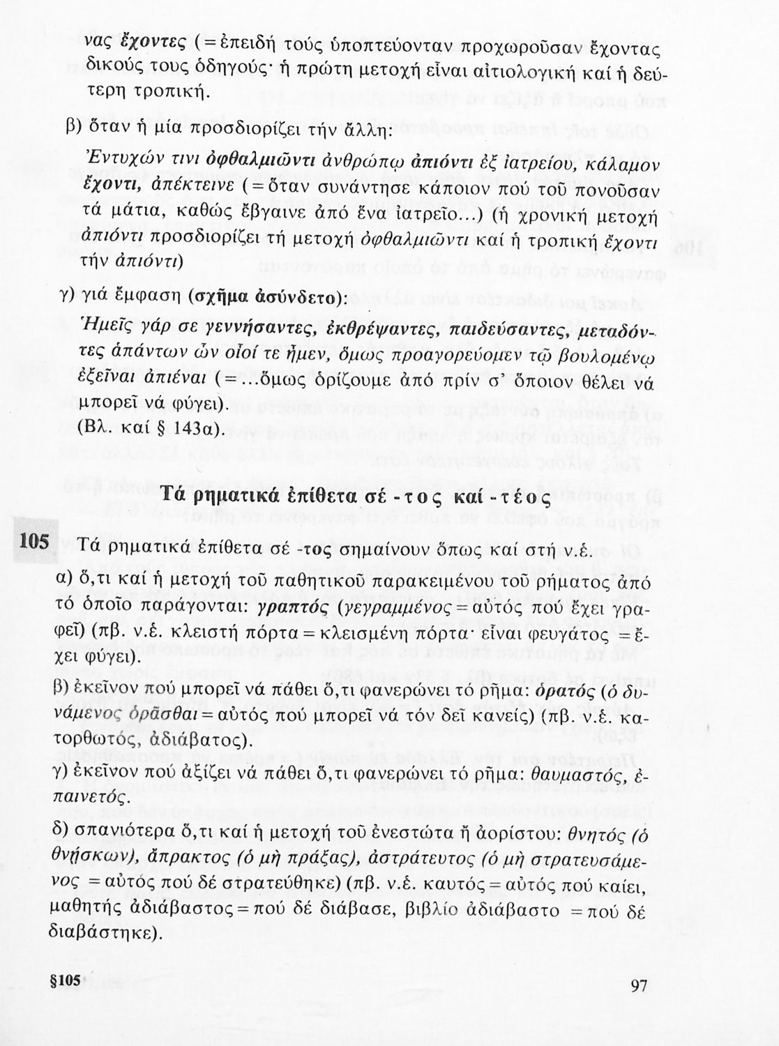 Σχολικό εγχειρίδιο Αρχαίων Ελληνικών Γ΄ Γυμνασίου και Α΄ Λυκείου που εξετάζει τα μέρη του λόγου και την σύνταξή τους.