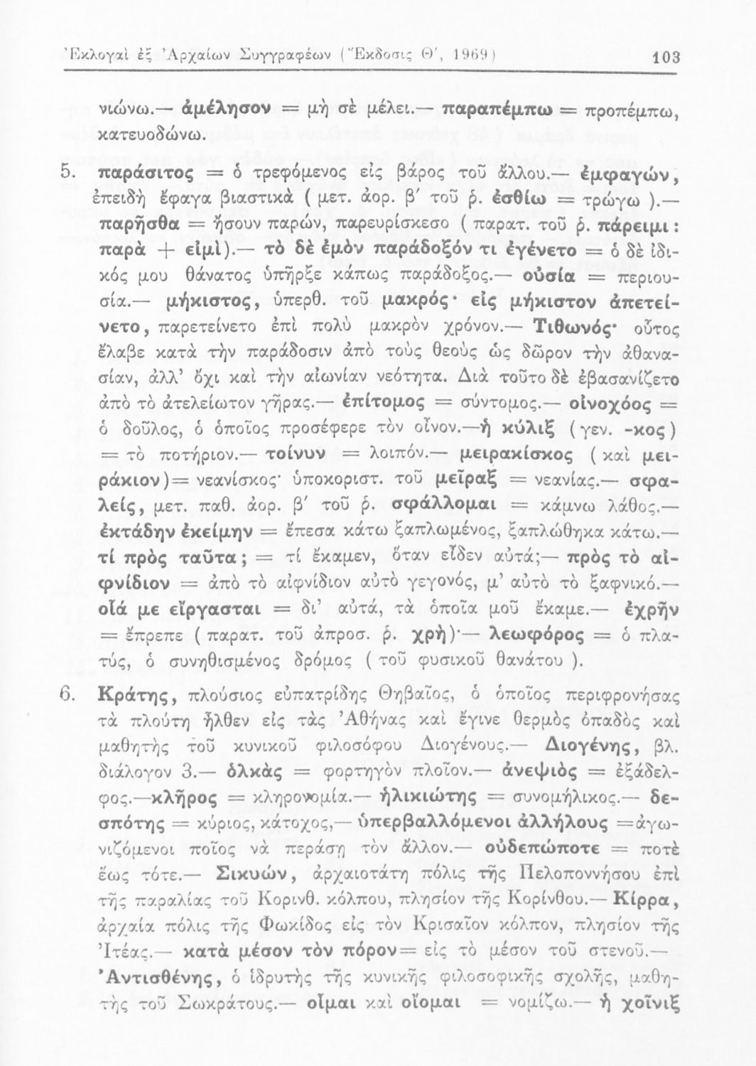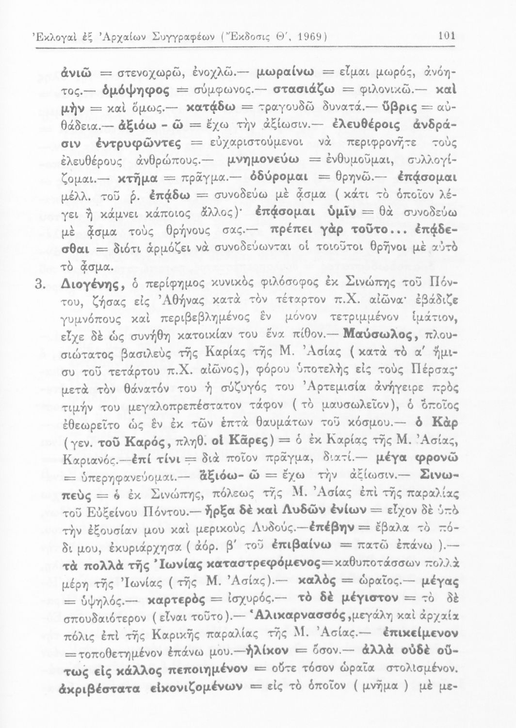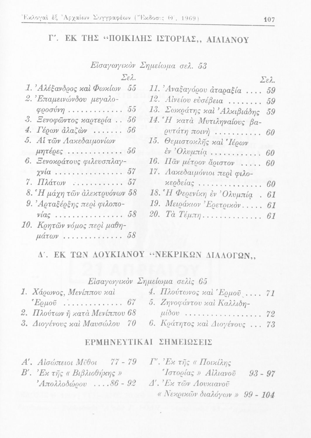 Σχολικό εγχειρίδιο Αρχαίων Ελληνικών Β΄ και Γ΄ Γυμνασίου και Αστικού Σχολείου που περιέχει αποσπάσματα από έργα αρχαίων Ελλήνων συγγραφέων, ερμηνευτικά και πραγματολογικά σχόλια και γραμματικές παρατηρήσεις.