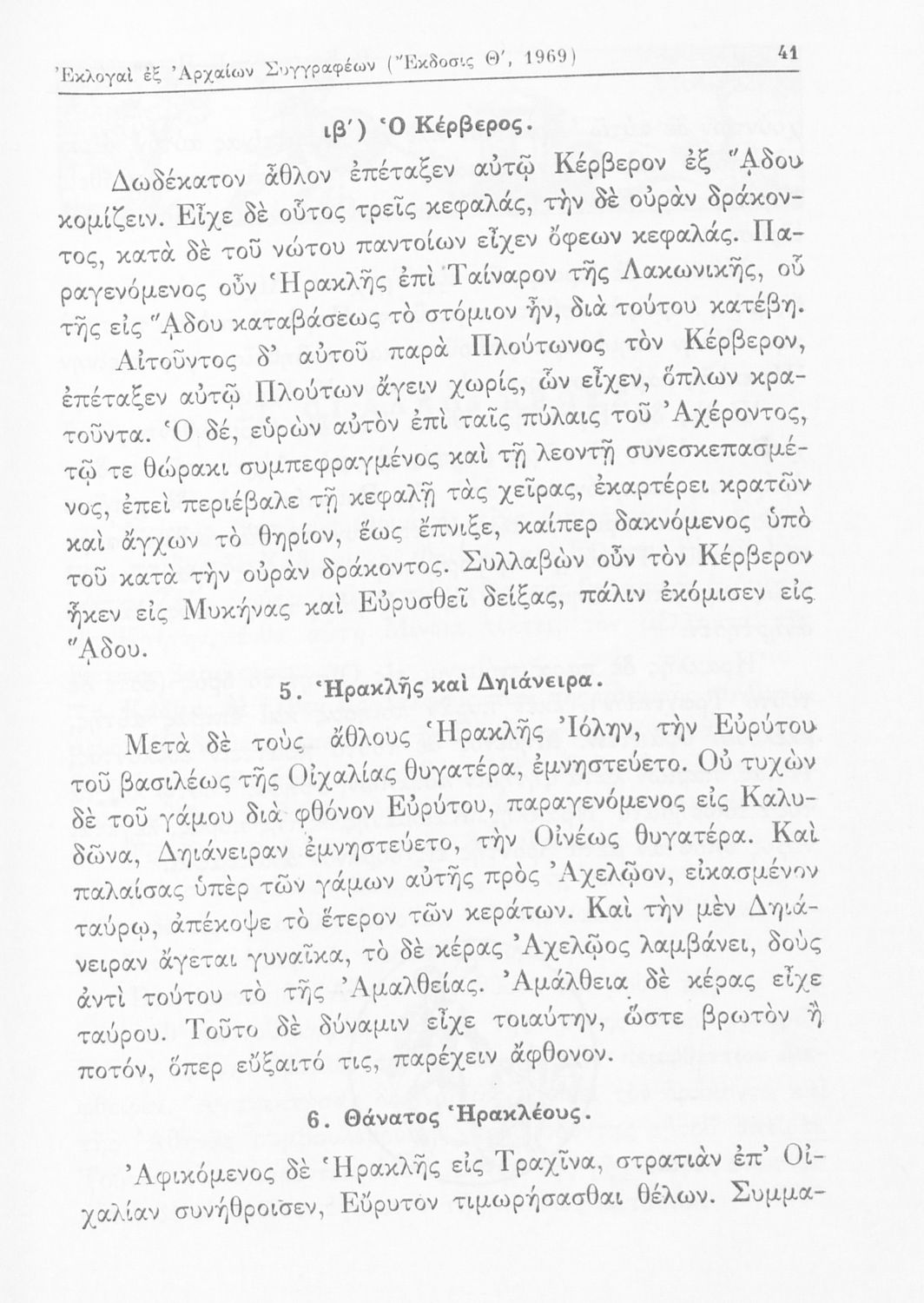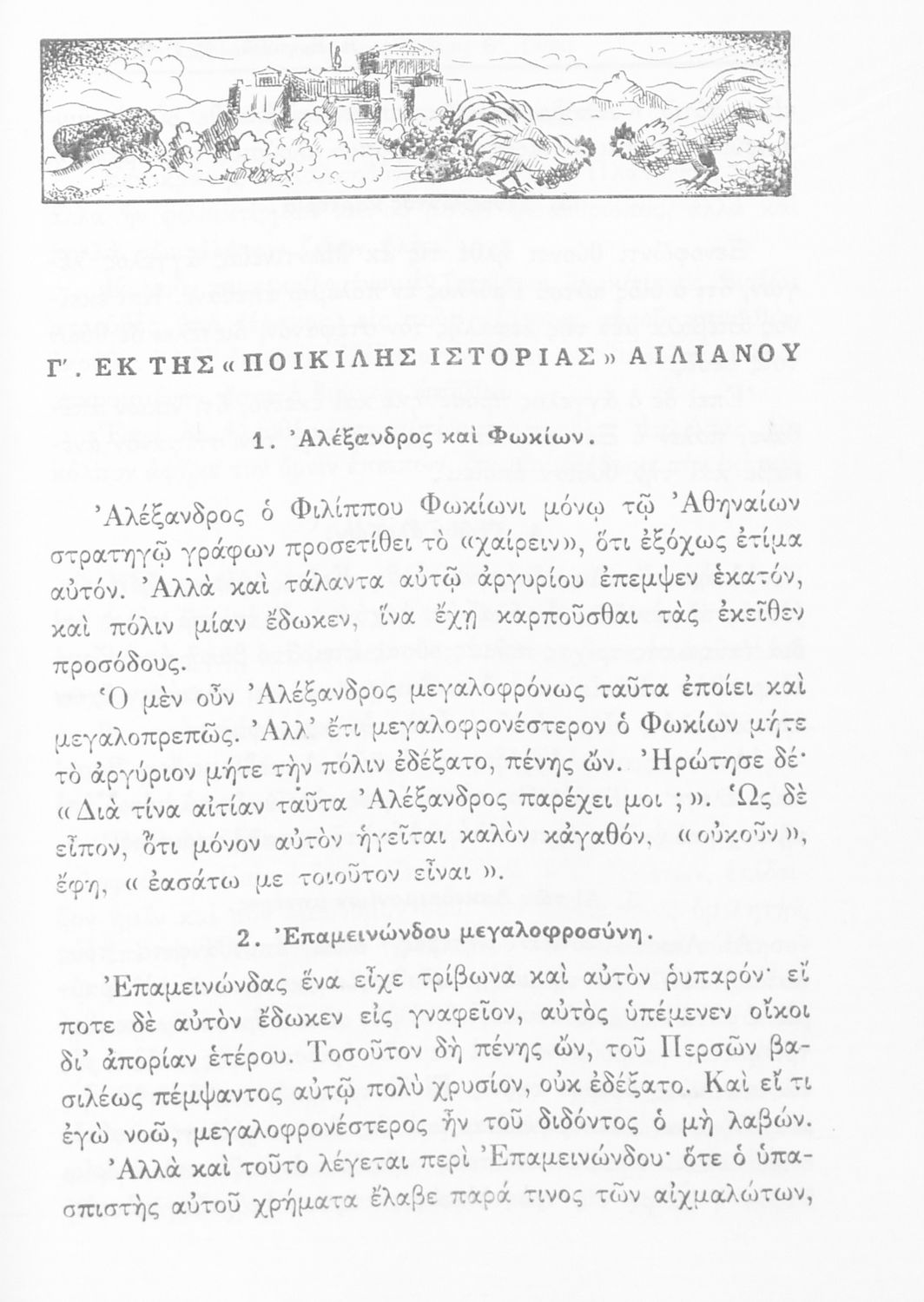 Σχολικό εγχειρίδιο Αρχαίων Ελληνικών Β΄ και Γ΄ Γυμνασίου και Αστικού Σχολείου που περιέχει αποσπάσματα από έργα αρχαίων Ελλήνων συγγραφέων, ερμηνευτικά και πραγματολογικά σχόλια και γραμματικές παρατηρήσεις.