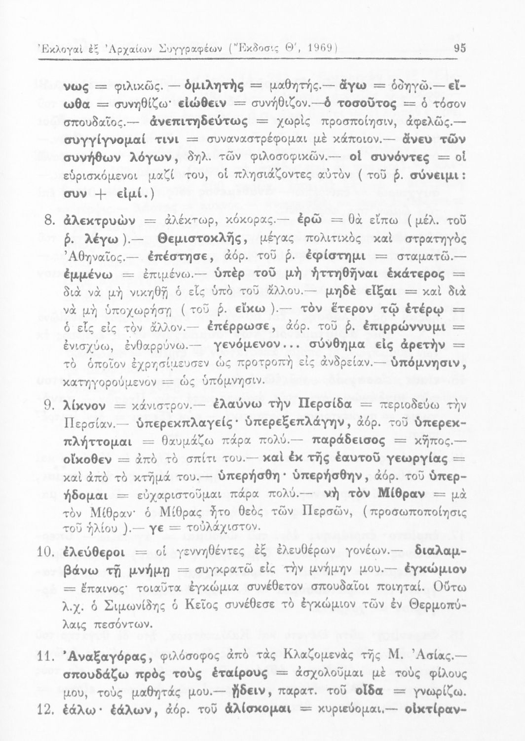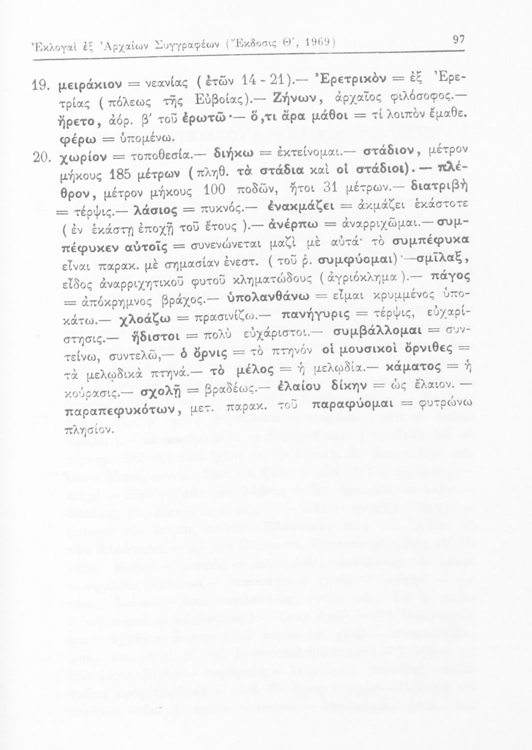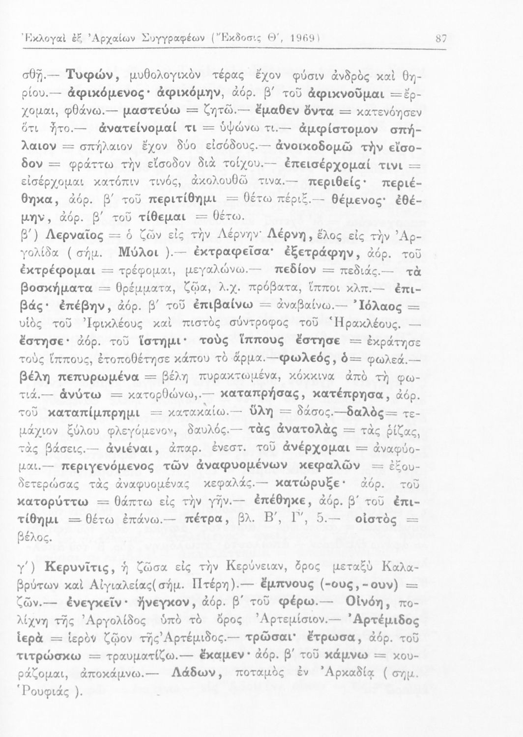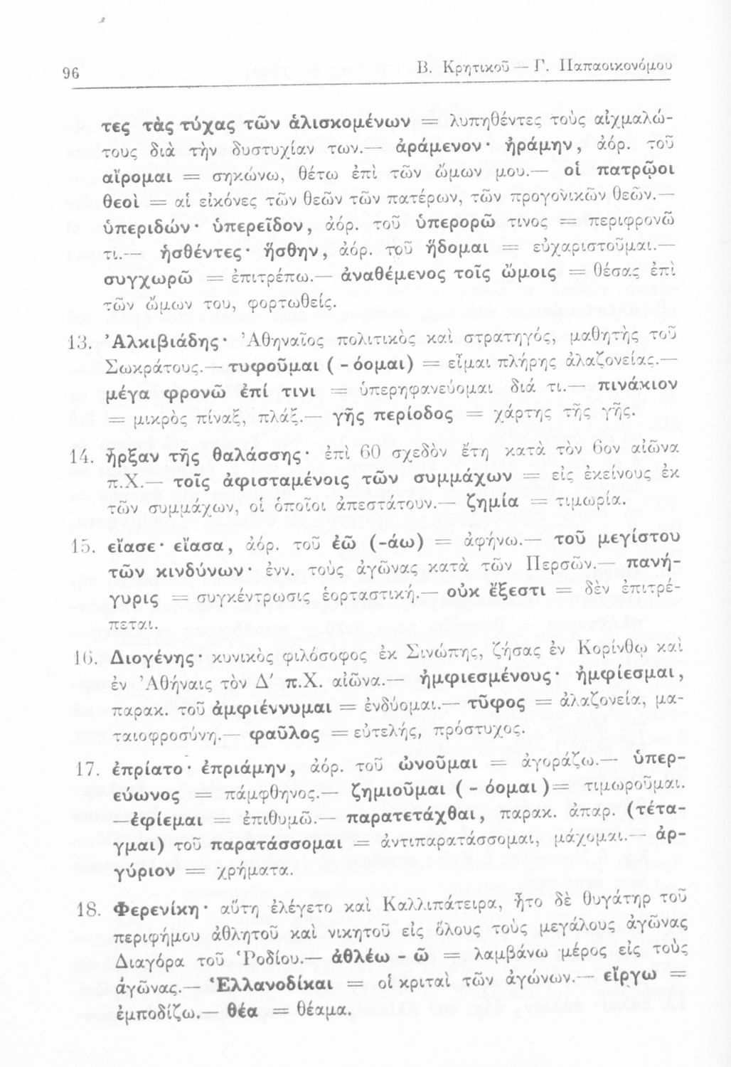 Σχολικό εγχειρίδιο Αρχαίων Ελληνικών Β΄ και Γ΄ Γυμνασίου και Αστικού Σχολείου που περιέχει αποσπάσματα από έργα αρχαίων Ελλήνων συγγραφέων, ερμηνευτικά και πραγματολογικά σχόλια και γραμματικές παρατηρήσεις.