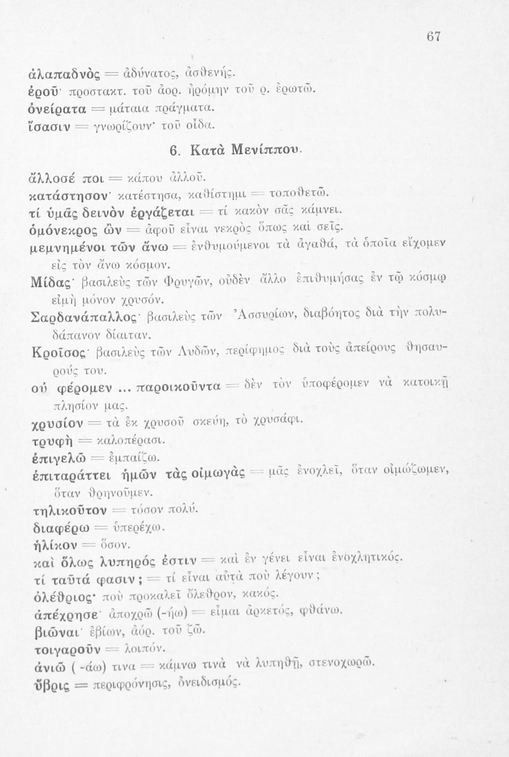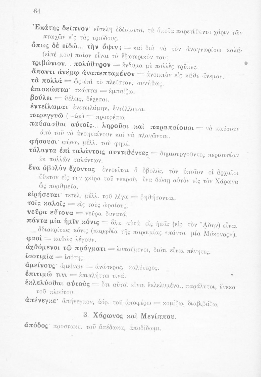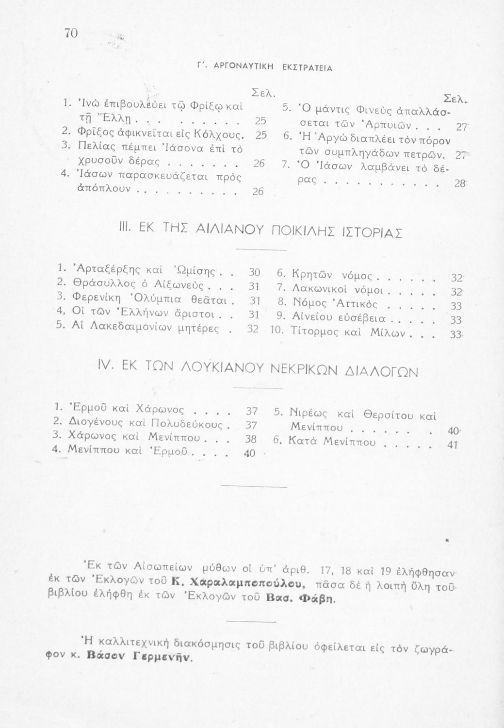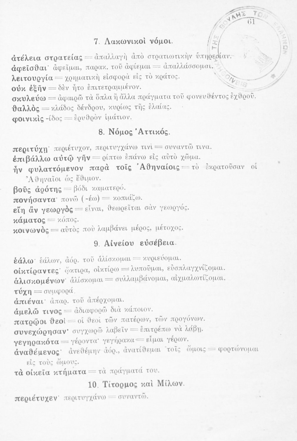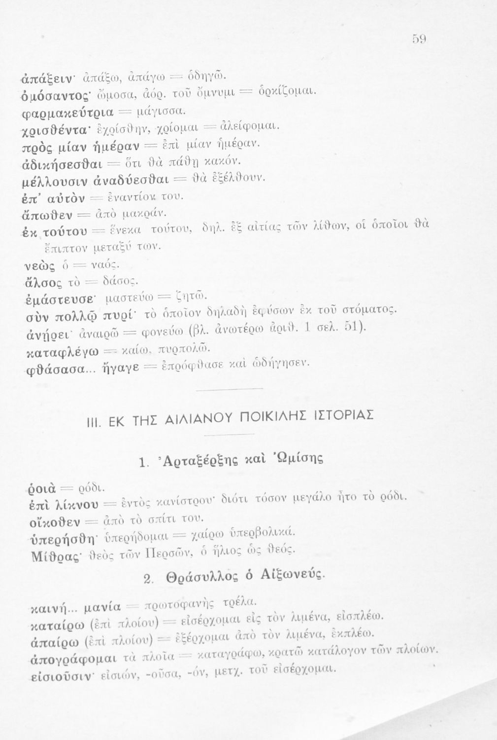 Σχολικό εγχειρίδιο Αρχαίων Ελληνικών Β΄ και Γ΄ Γυμνασίου και Αστικού Σχολείου που περιέχει αποσπάσματα από έργα αρχαίων Ελλήνων συγγραφέων, ερμηνευτικά και πραγματολογικά σχόλια και γραμματικές παρατηρήσεις.