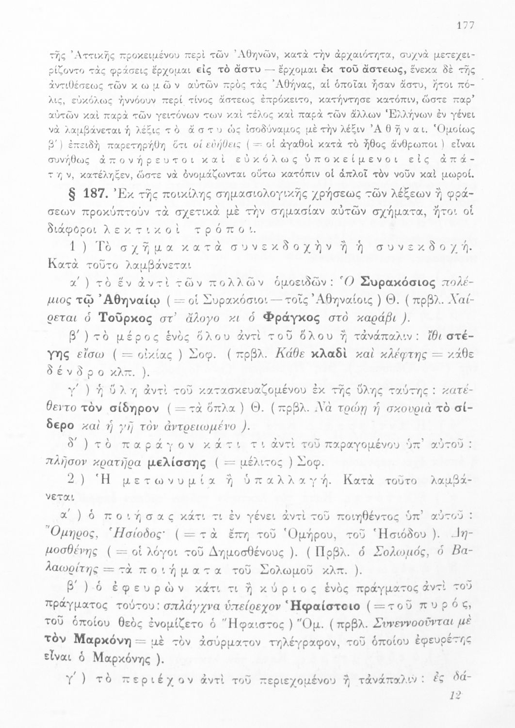 Παρουσίαση περιεχομένου: Σχολικό εγχειρίδιο Αρχαίων Ελληνικών Γ΄ Γυμνασίου που εξετάζει τα μέρη του λόγου και την σύνταξή τους. Φέρει το σύμβολο της δικτατορίας.