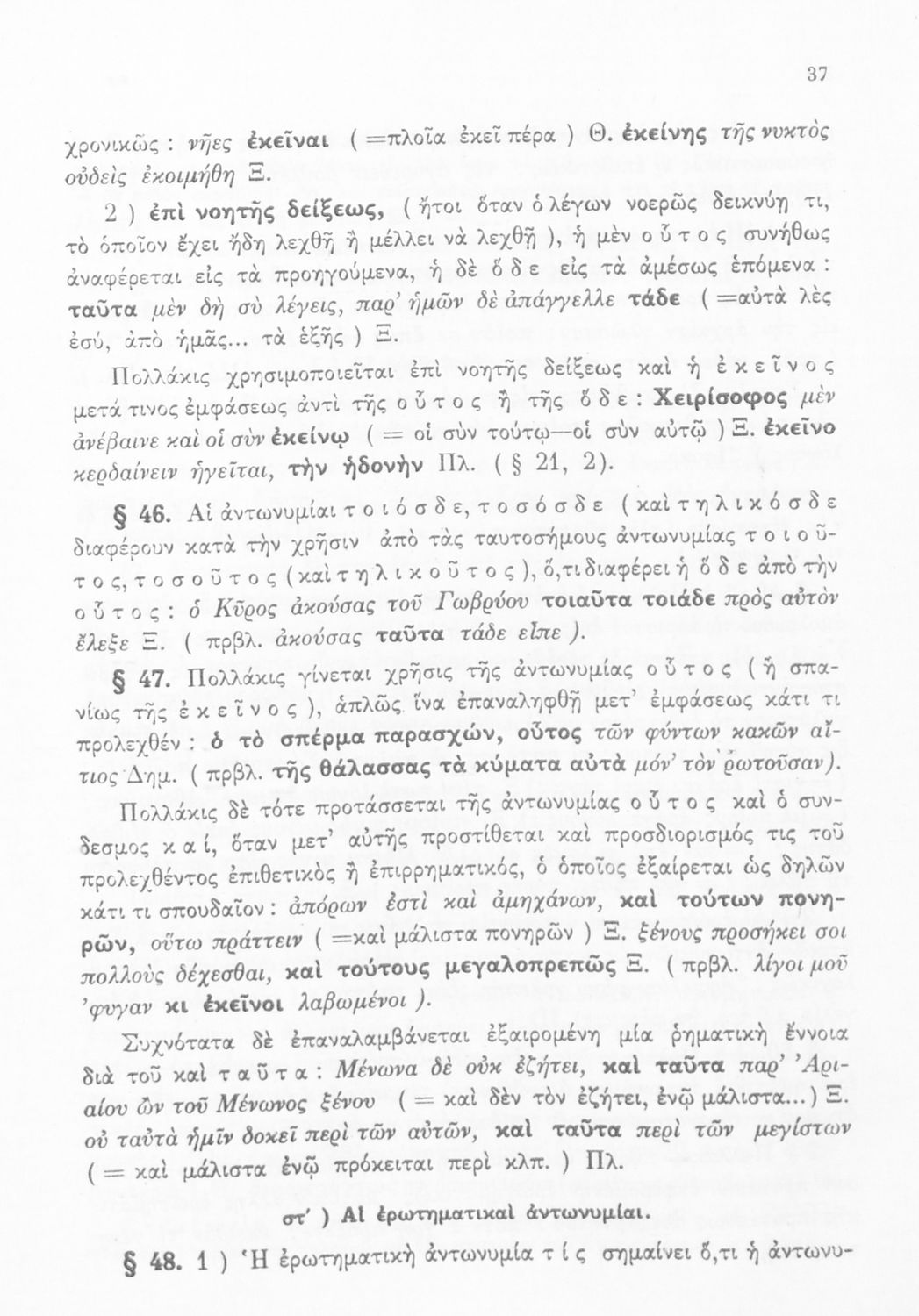 Παρουσίαση περιεχομένου: Σχολικό εγχειρίδιο Αρχαίων Ελληνικών Γ΄ Γυμνασίου που εξετάζει τα μέρη του λόγου και την σύνταξή τους. Φέρει το σύμβολο της δικτατορίας.