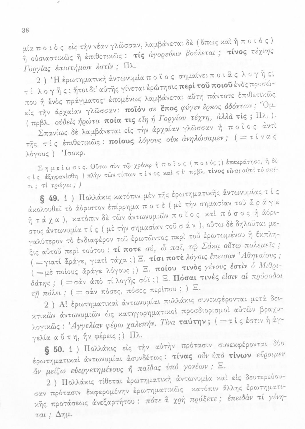 Σχολικό εγχειρίδιο Αρχαίων Ελληνικών Γ΄ Γυμνασίου και Α΄ Λυκείου που εξετάζει τα μέρη του λόγου και την σύνταξή τους.