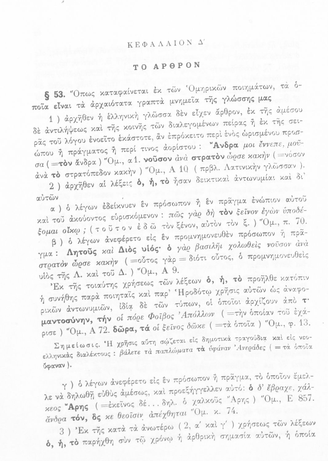 Σχολικό εγχειρίδιο Αρχαίων Ελληνικών Γυμνασίου που εξετάζει τα μέρη του λόγου και την σύνταξή τους.