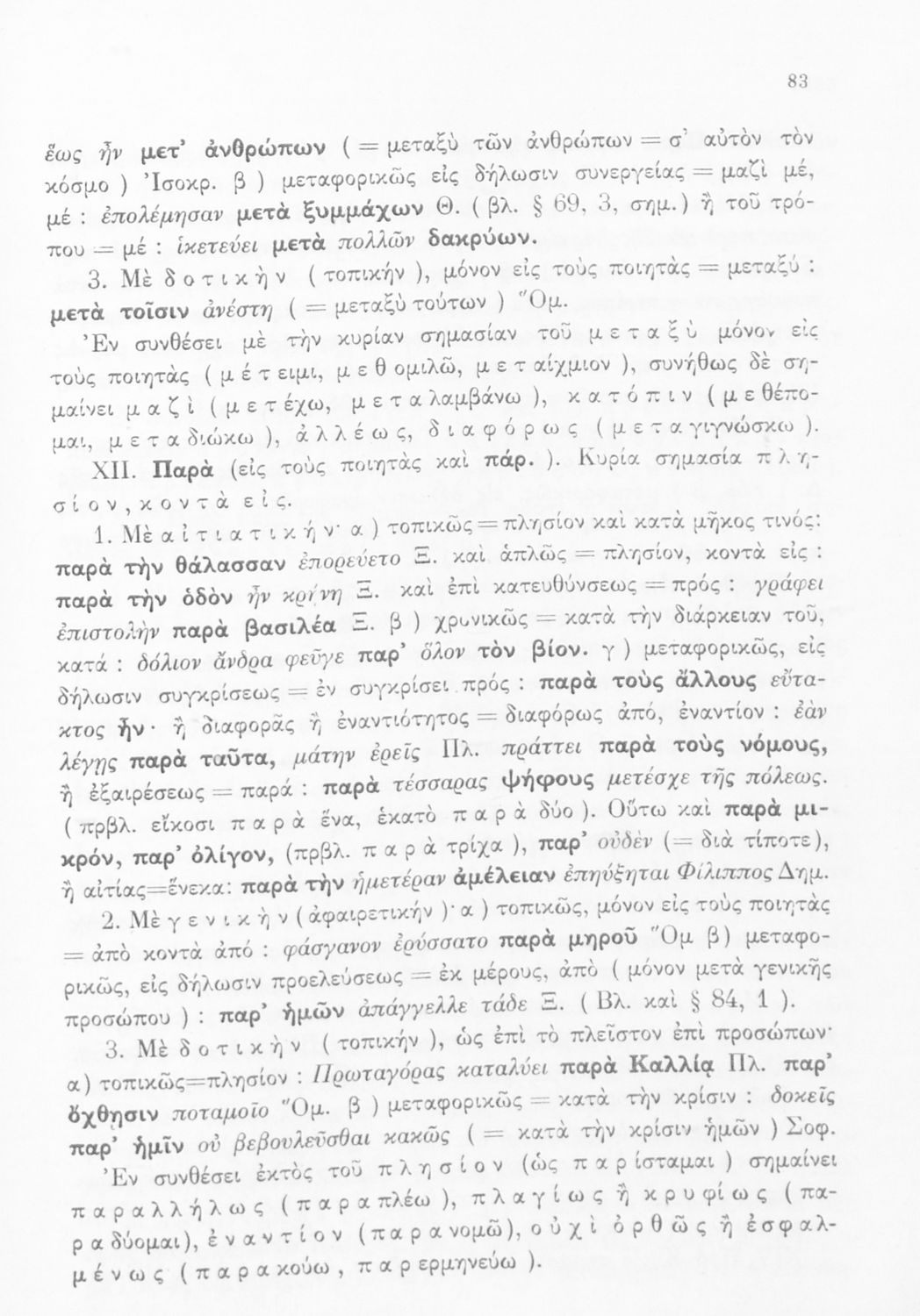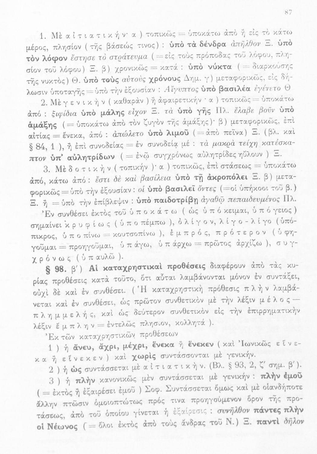 Σχολικό εγχειρίδιο Αρχαίων Ελληνικών Γ΄ Γυμνασίου και Α΄ Λυκείου που εξετάζει τα μέρη του λόγου και την σύνταξή τους.
