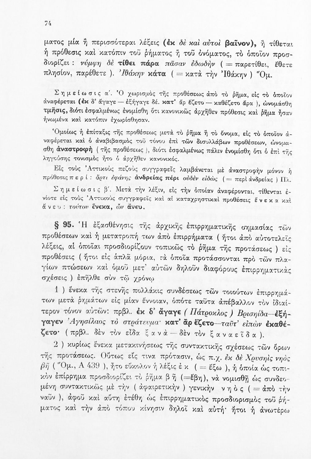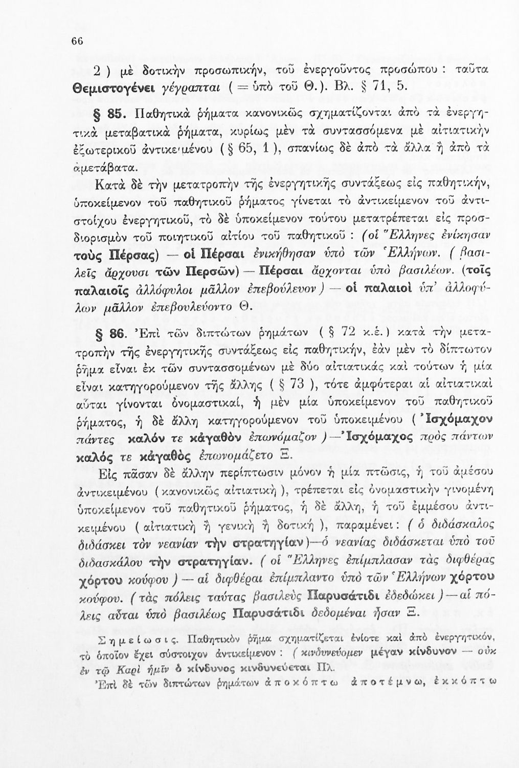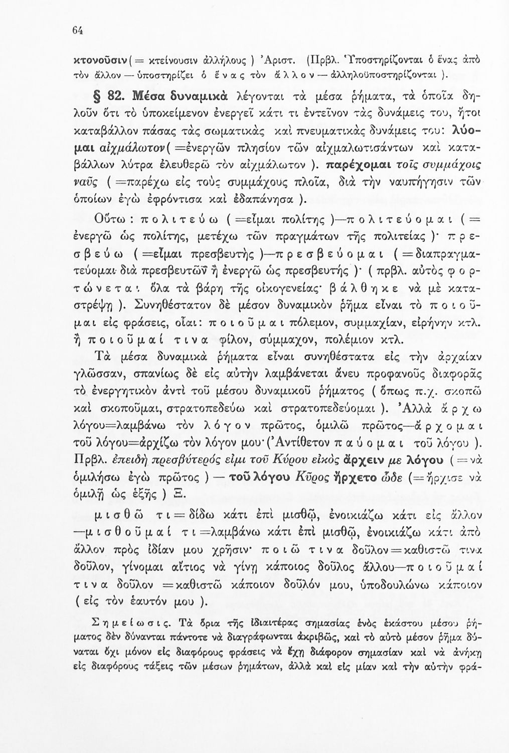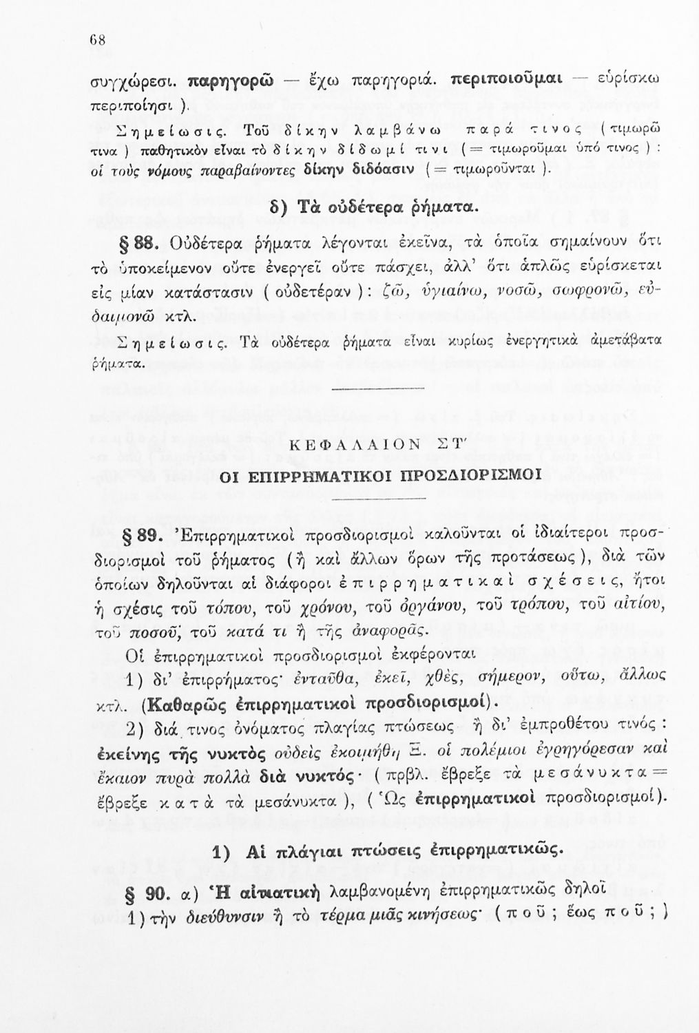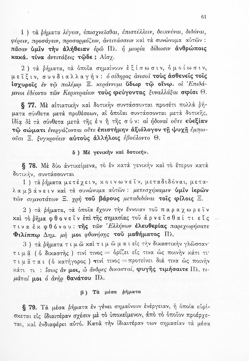 Σχολικό εγχειρίδιο Αρχαίων Ελληνικών Γ΄ Γυμνασίου που εξετάζει τα μέρη του λόγου και την σύνταξή τους. Φέρει το σύμβολο της δικτατορίας.