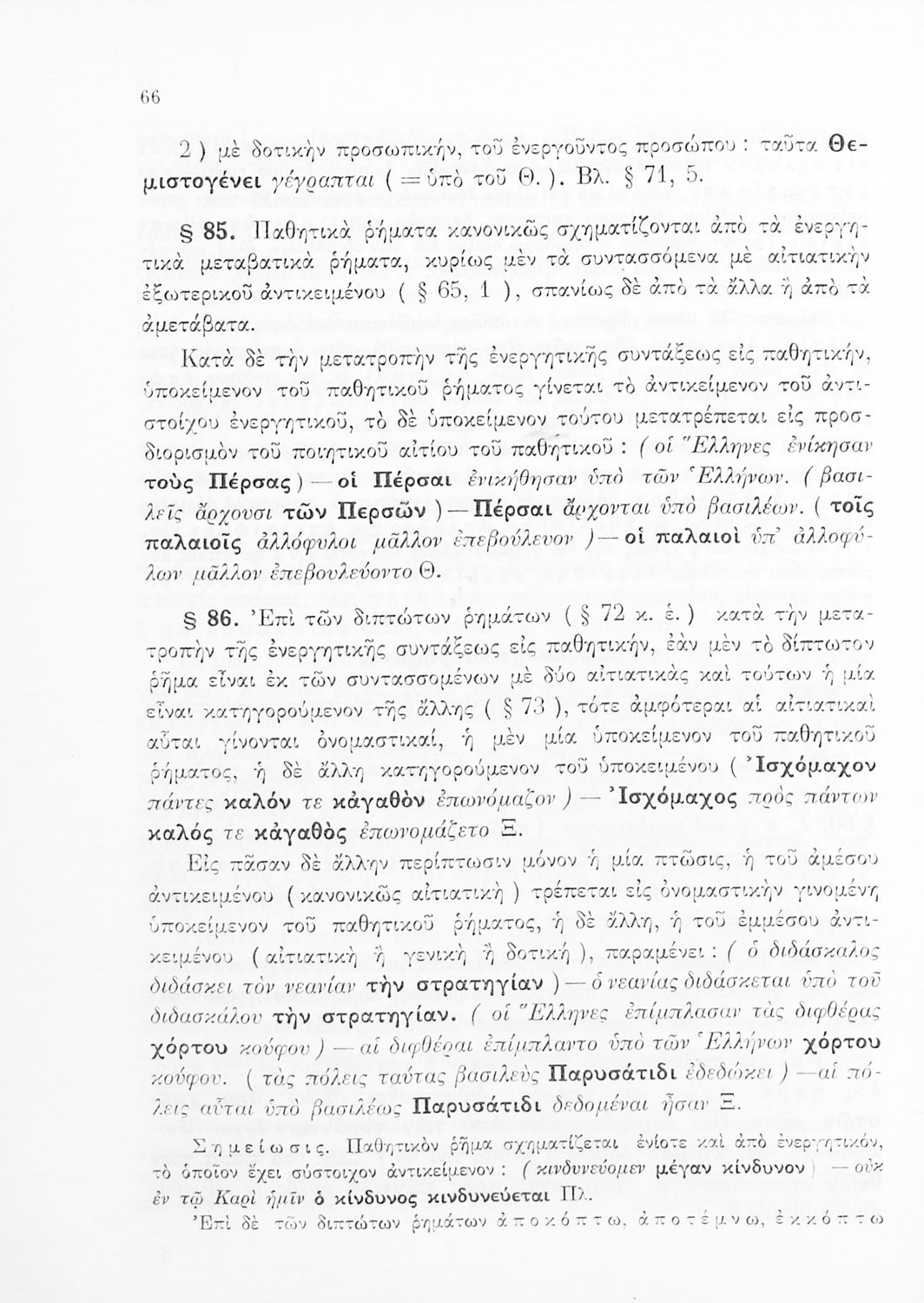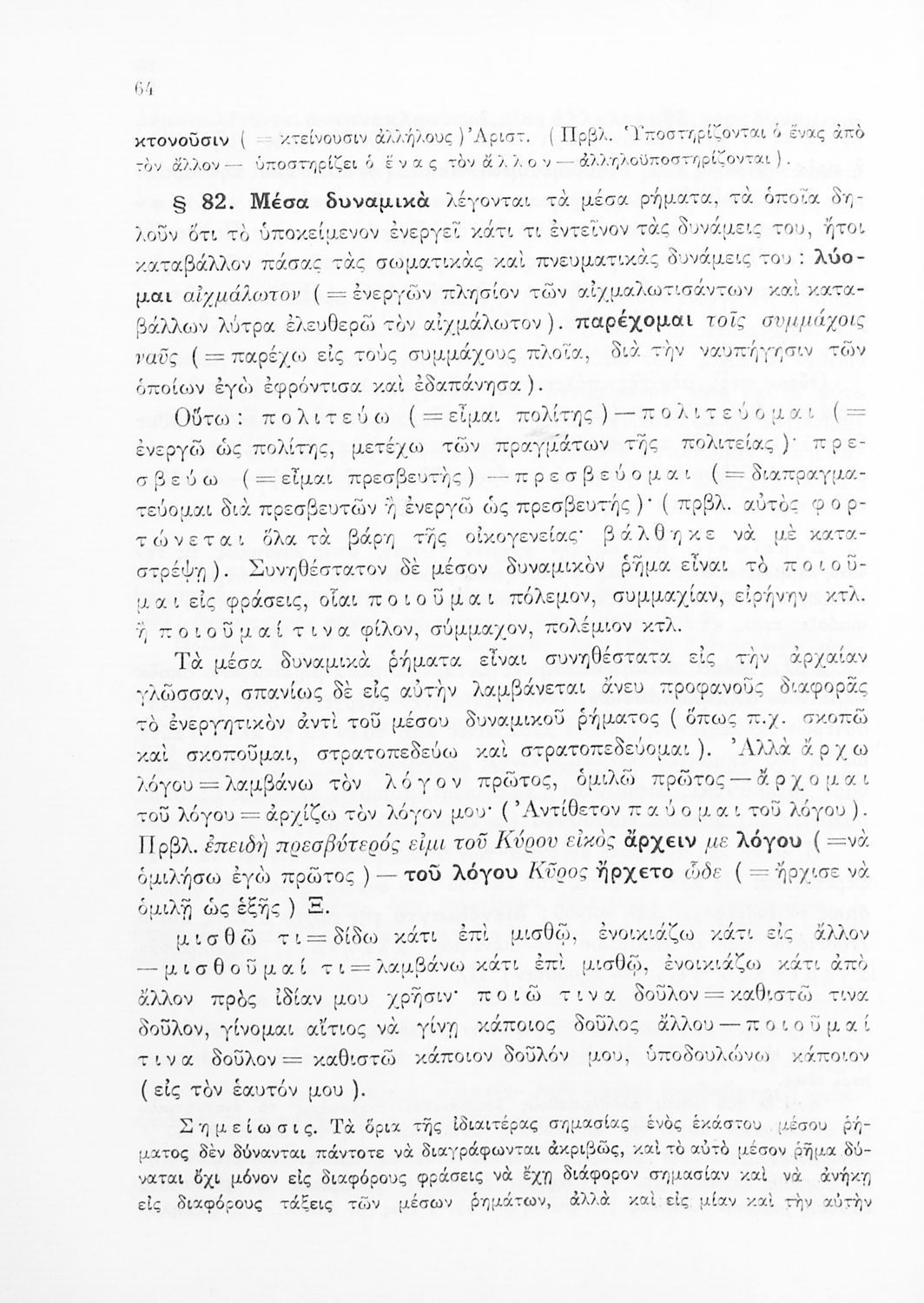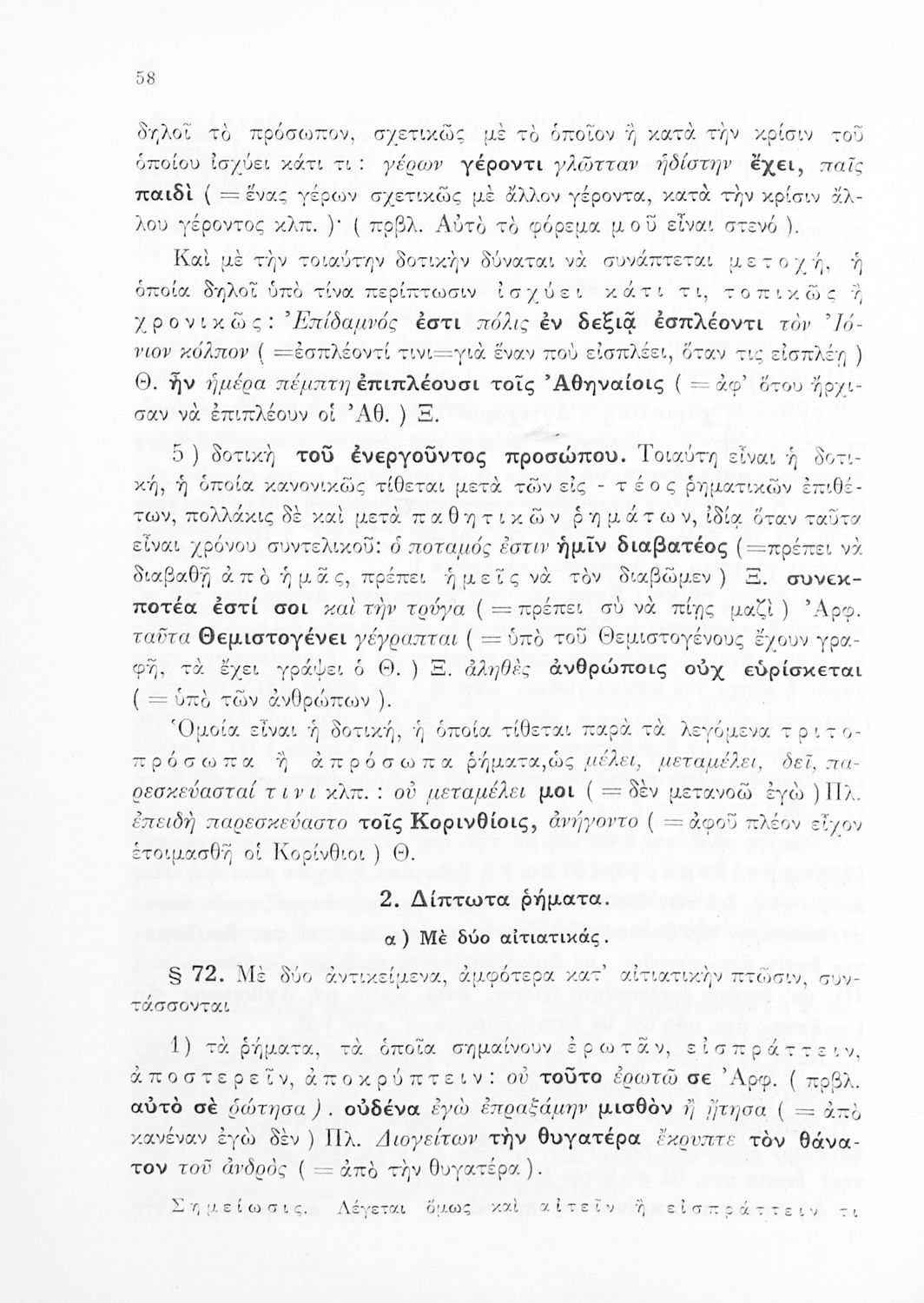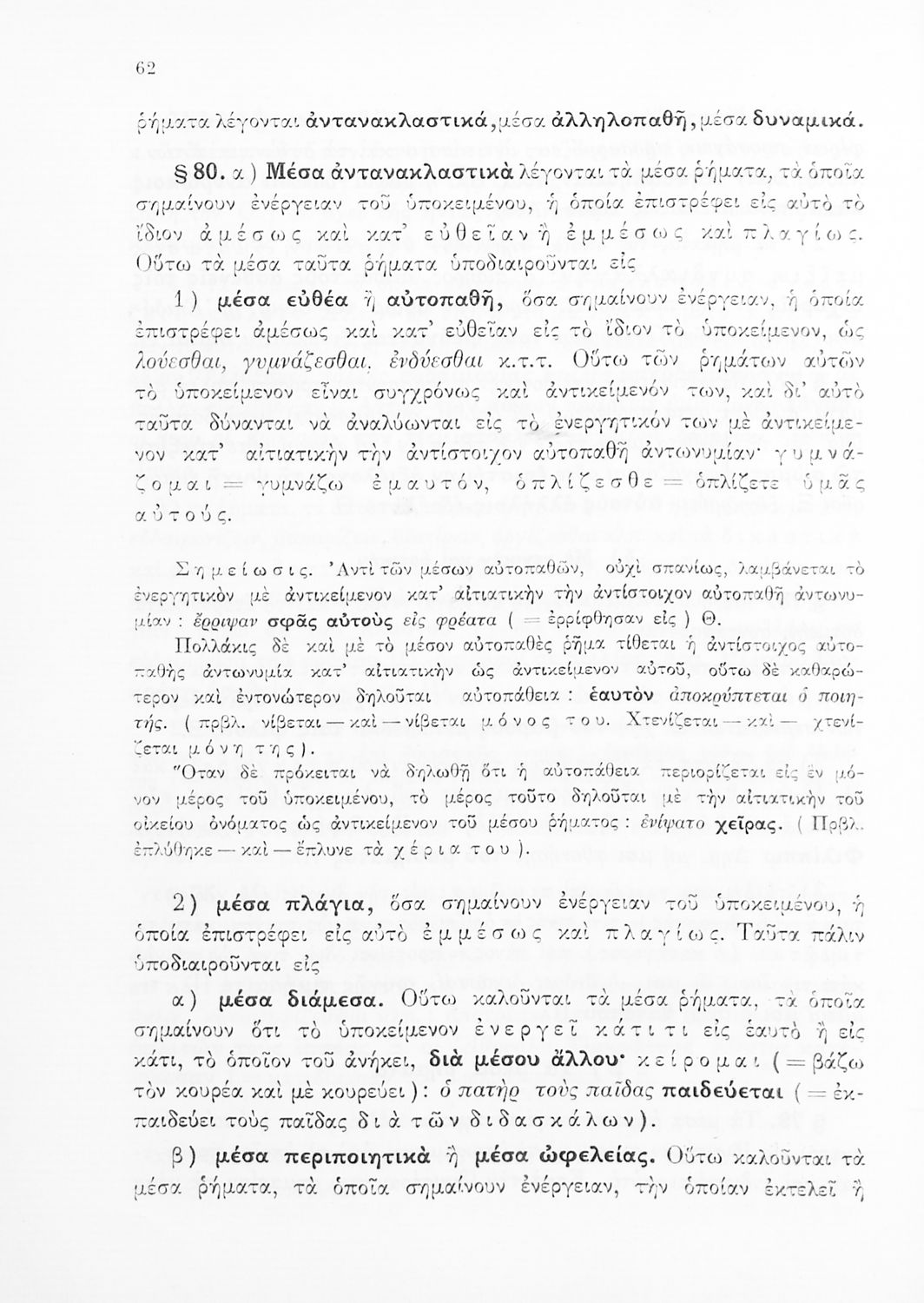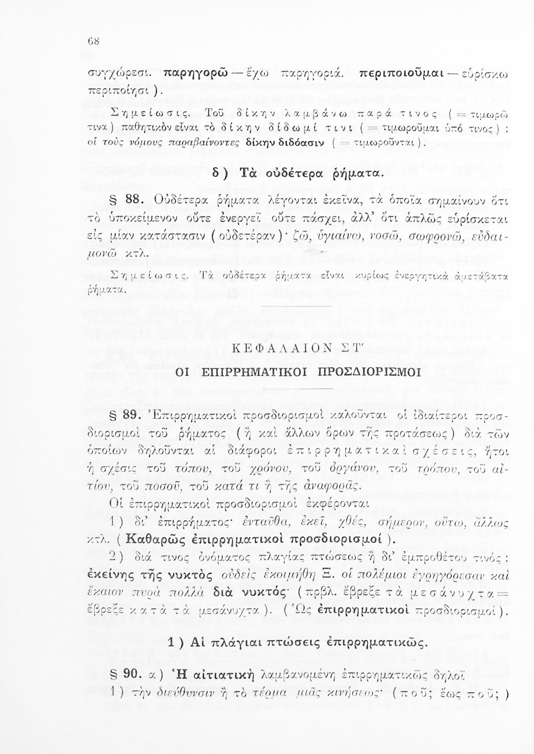 Βαθμίδα εκπαίδευσης: Δευτεροβάθμια Τάξη: Γυμνάσιο Μάθημα: Αρχαία Ελληνικά Γλώσσα: Καθαρεύουσα Παρουσίαση περιεχομένου: Σχολικό εγχειρίδιο Αρχαίων Ελληνικών Γυμνασίου που εξετάζει τα μέρη του λόγου και την σύνταξή τους. |