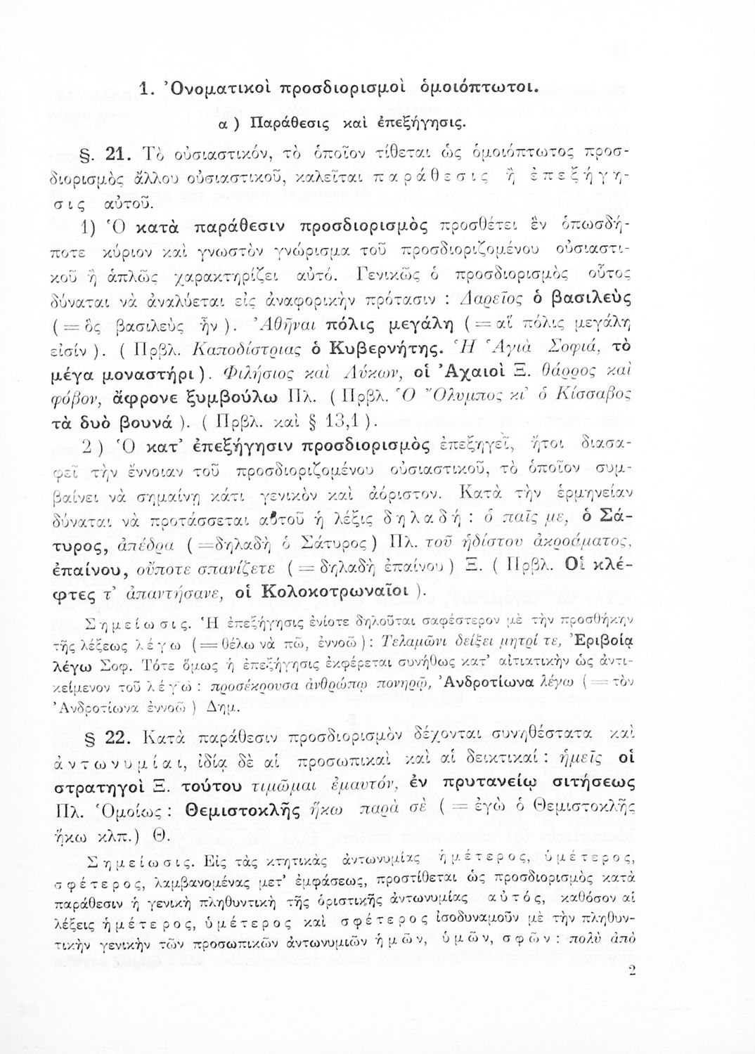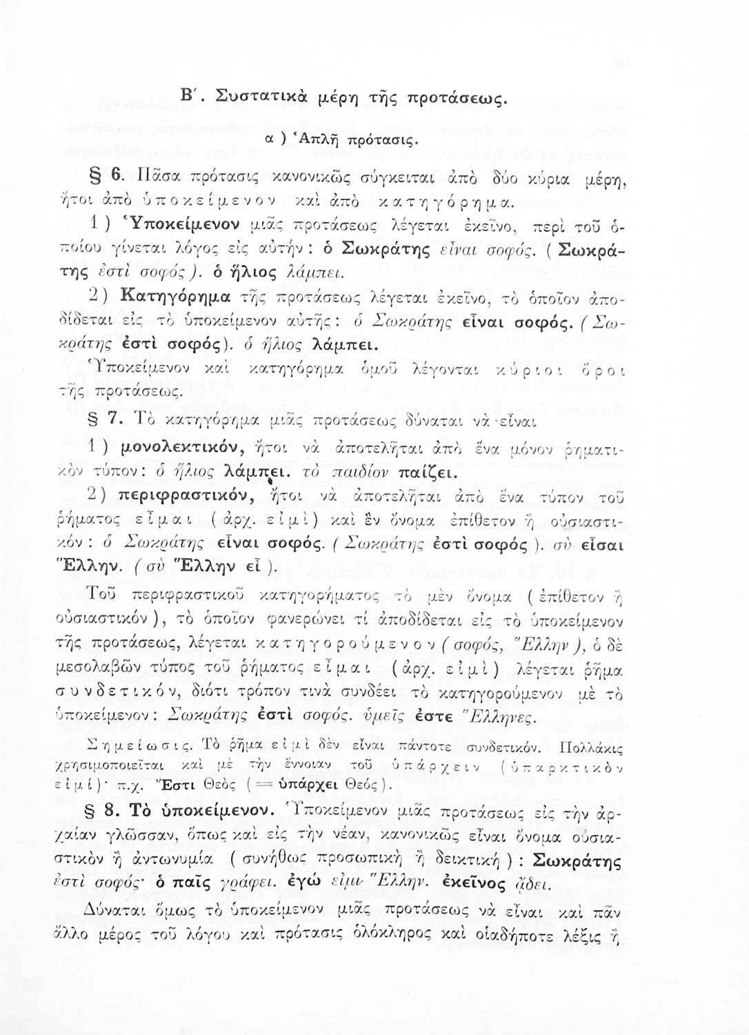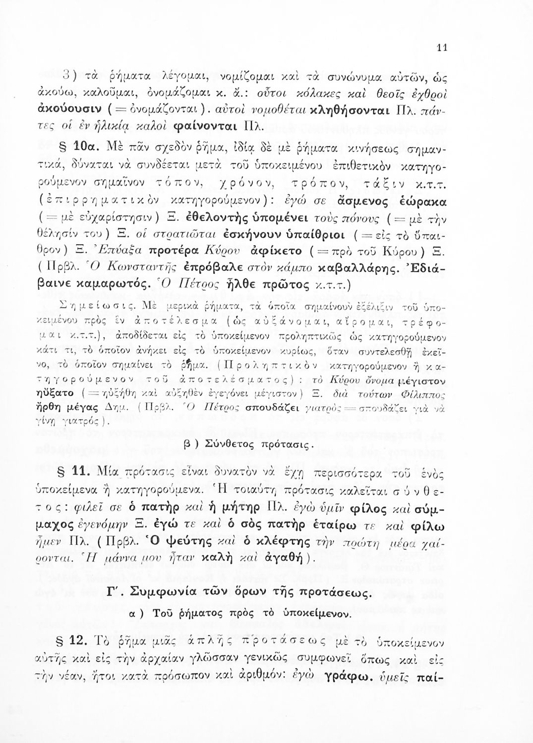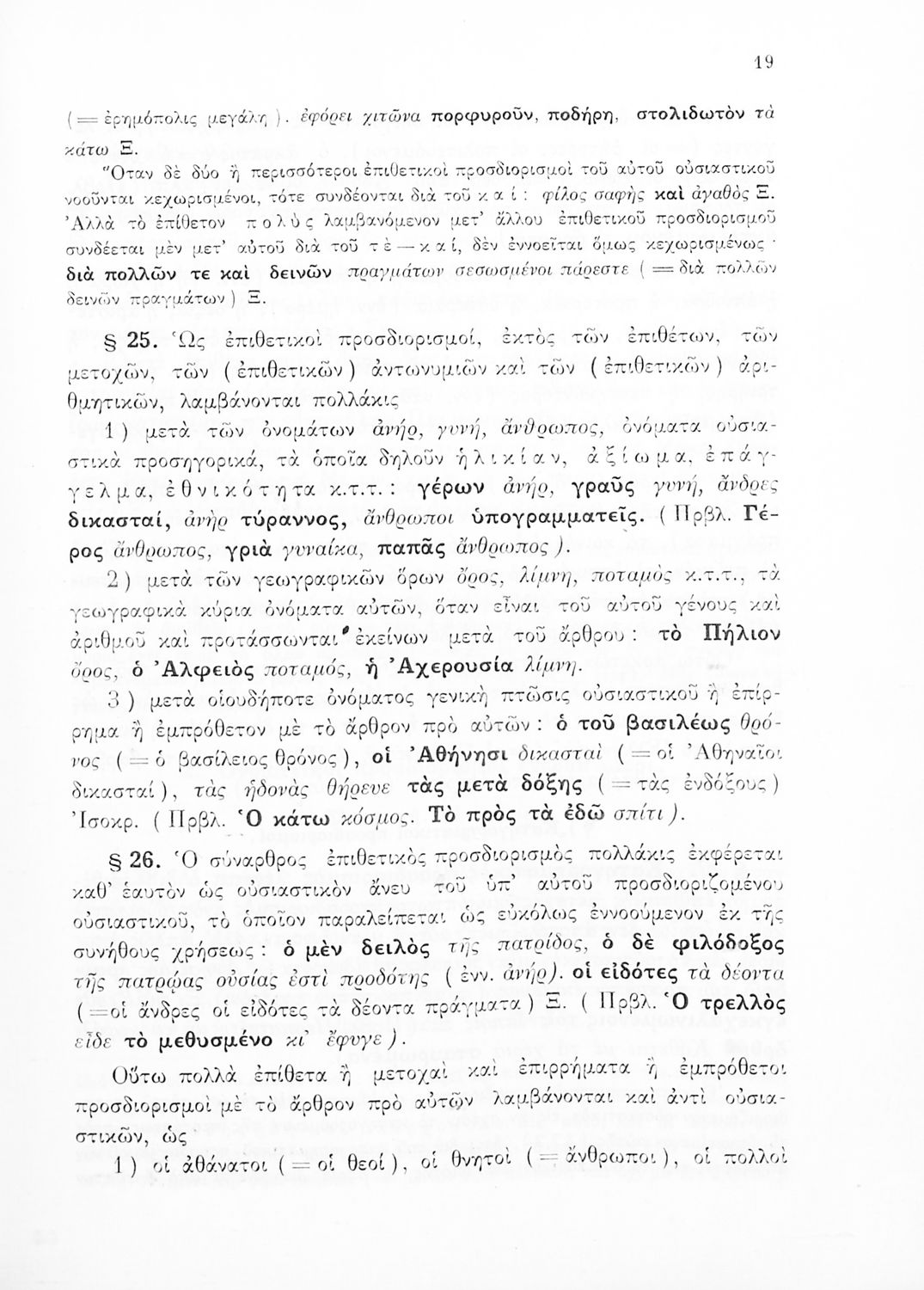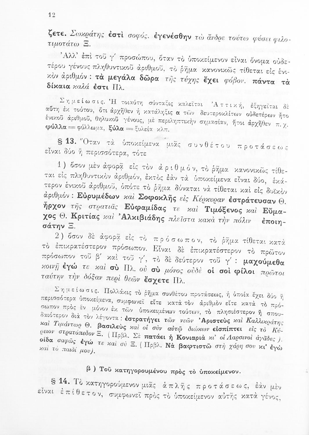 Βαθμίδα εκπαίδευσης: Δευτεροβάθμια Τάξη: Γυμνάσιο Μάθημα: Αρχαία Ελληνικά Γλώσσα: Καθαρεύουσα Παρουσίαση περιεχομένου: Σχολικό εγχειρίδιο Αρχαίων Ελληνικών Γυμνασίου που εξετάζει τα μέρη του λόγου και την σύνταξή τους. |