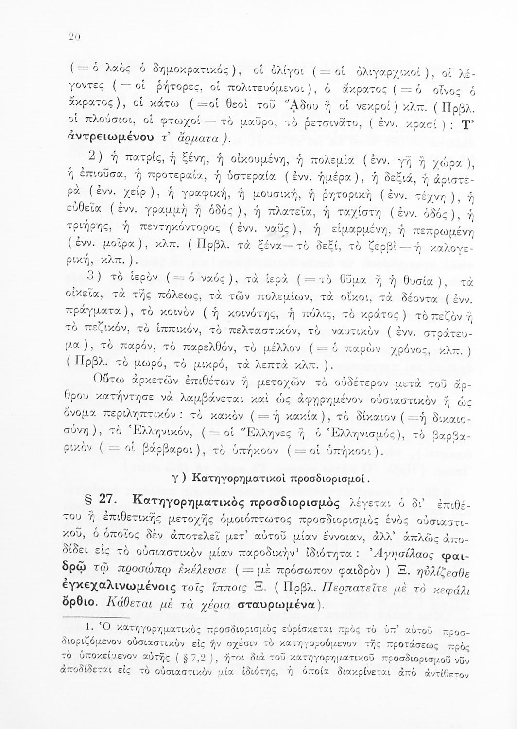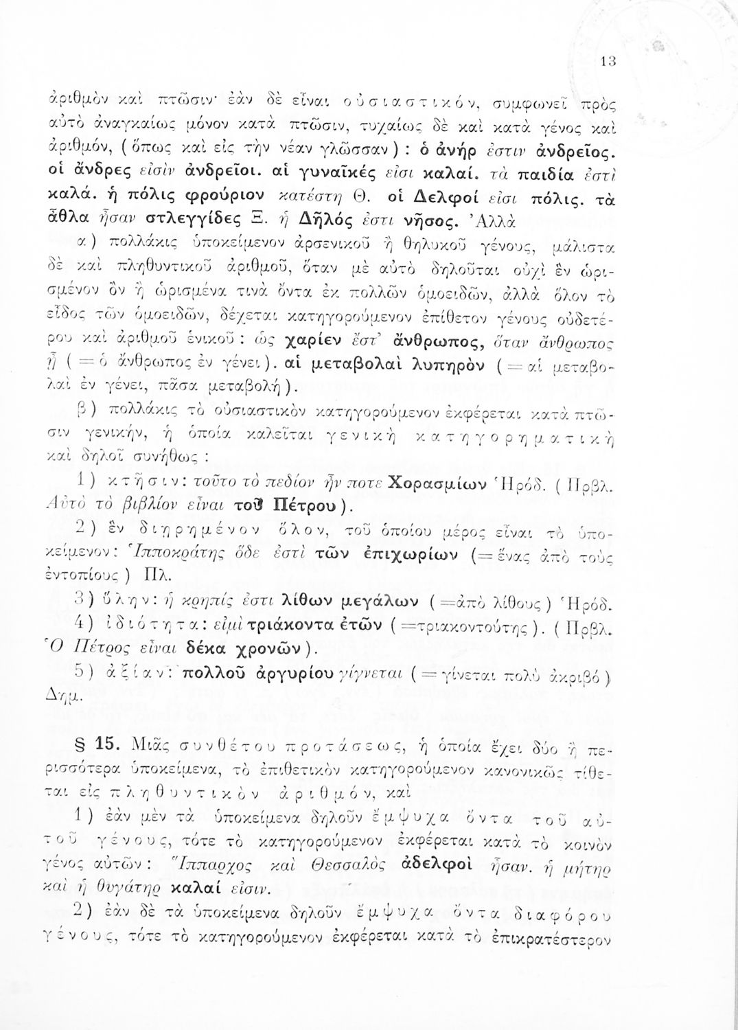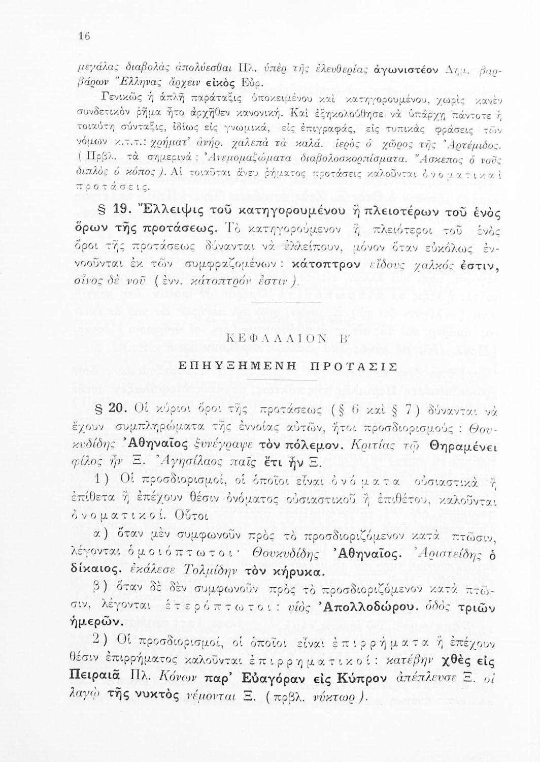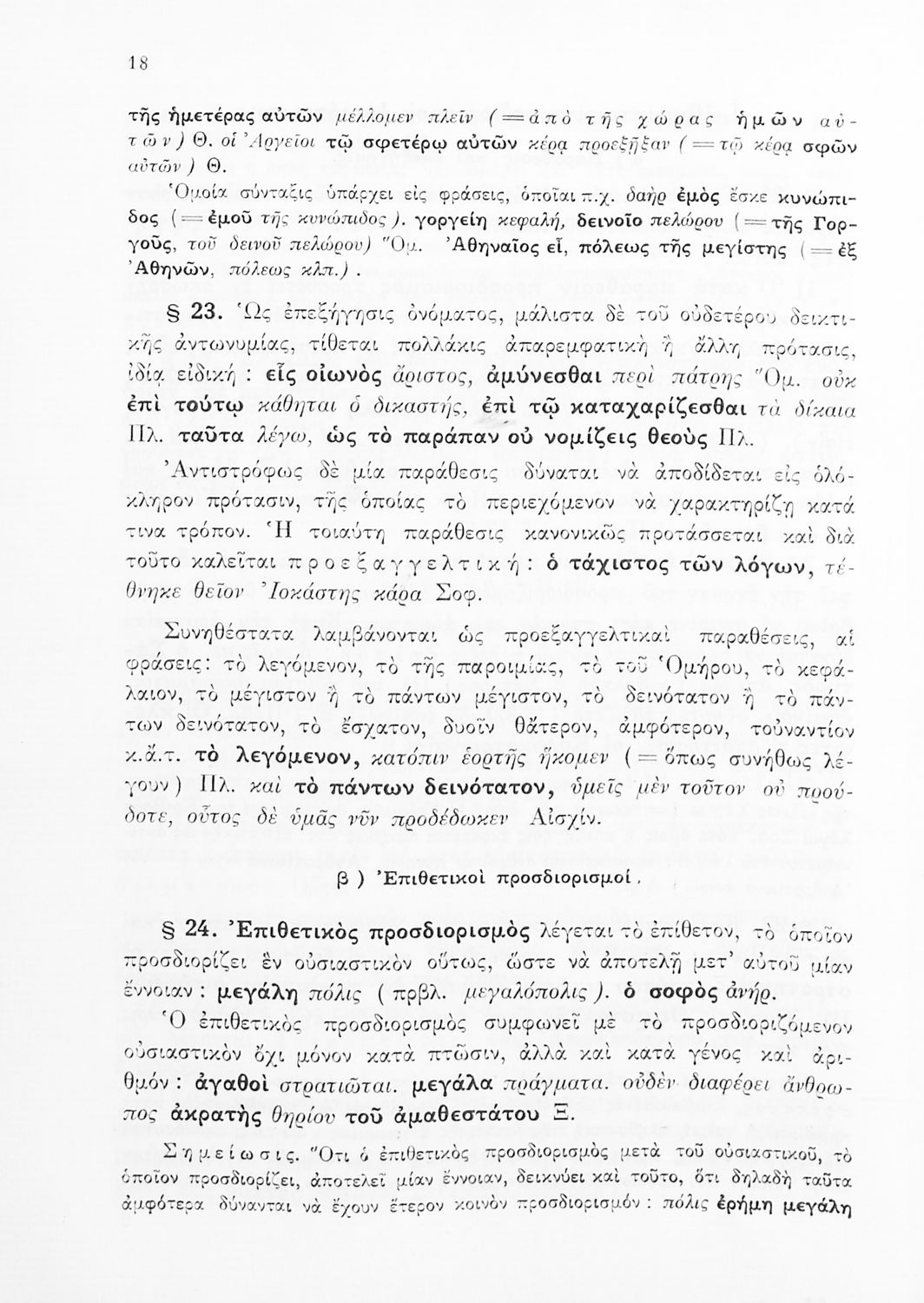 Βαθμίδα εκπαίδευσης: Δευτεροβάθμια Τάξη: Γυμνάσιο Μάθημα: Αρχαία Ελληνικά Γλώσσα: Καθαρεύουσα Παρουσίαση περιεχομένου: Σχολικό εγχειρίδιο Αρχαίων Ελληνικών Γυμνασίου που εξετάζει τα μέρη του λόγου και την σύνταξή τους. |