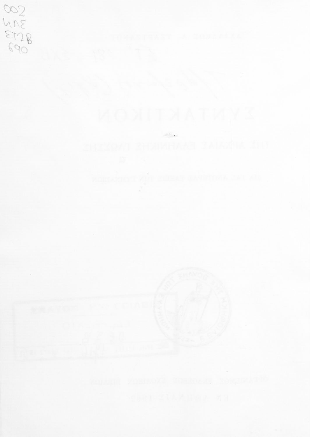 Εντοπισμός πρωτοτύπου: Βιβλιοθήκη της Βουλής των Ελλήνων Κωδικός βιβλιοθήκης: 20556791 |