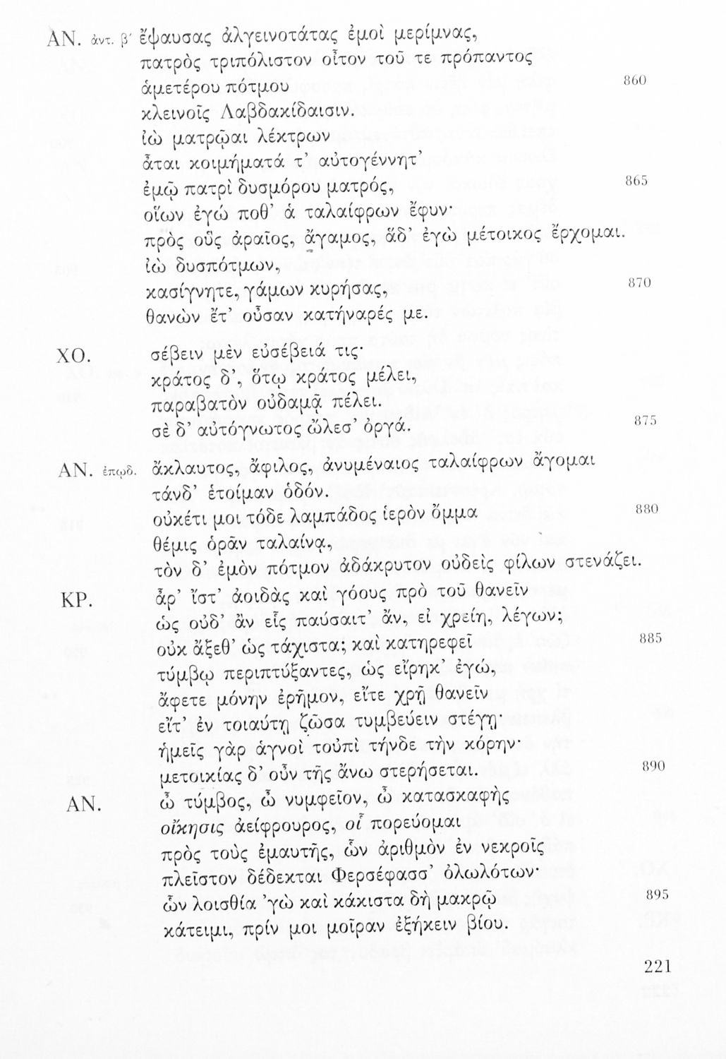 Σχολικό εγχειρίδιο Αρχαίων Ελληνικών Γ' Λυκείου που περιλαμβάνει αποσπάσματα από έργα αρχαίων Ελλήνων συγγραφέων και γραμματικές και ερμηνευτικές παρατηρήσεις.