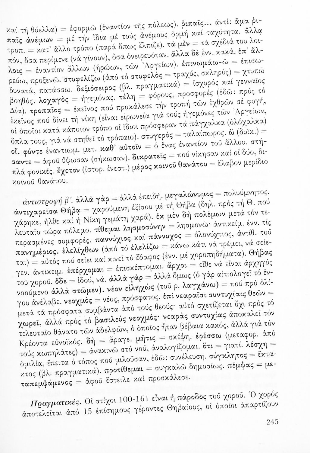 Σχολικό εγχειρίδιο Αρχαίων Ελληνικών Γ' Λυκείου που περιλαμβάνει αποσπάσματα από έργα αρχαίων Ελλήνων συγγραφέων και γραμματικές και ερμηνευτικές παρατηρήσεις.