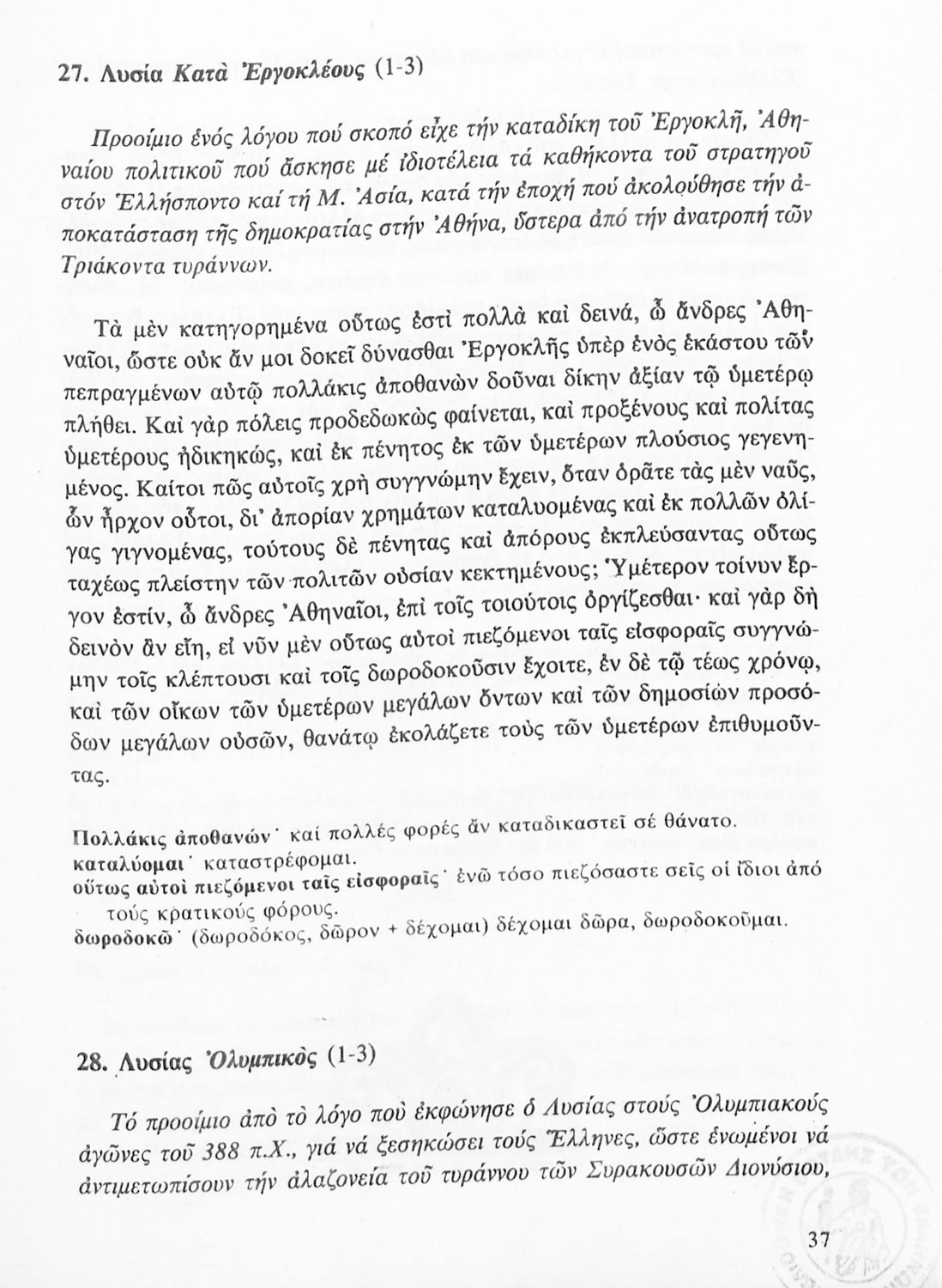Σχετιζόμενοι όροι:  Λυσίας, Θουκυδίδης, Όμηρος, Σοφοκλής