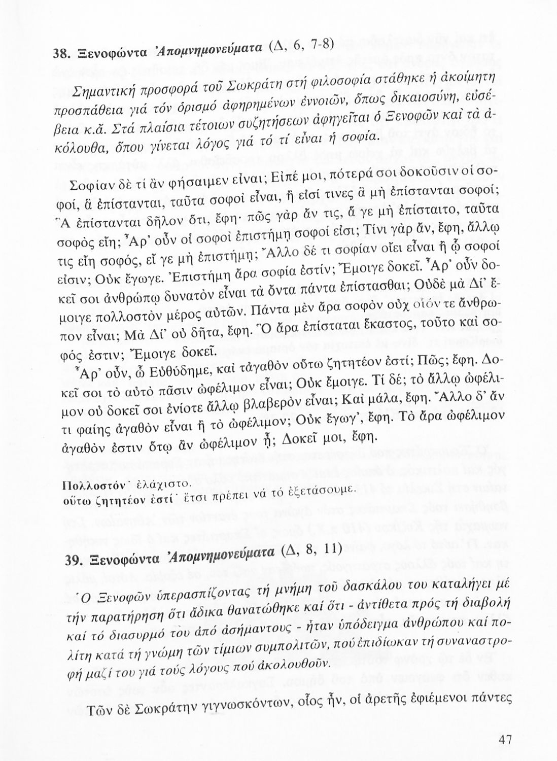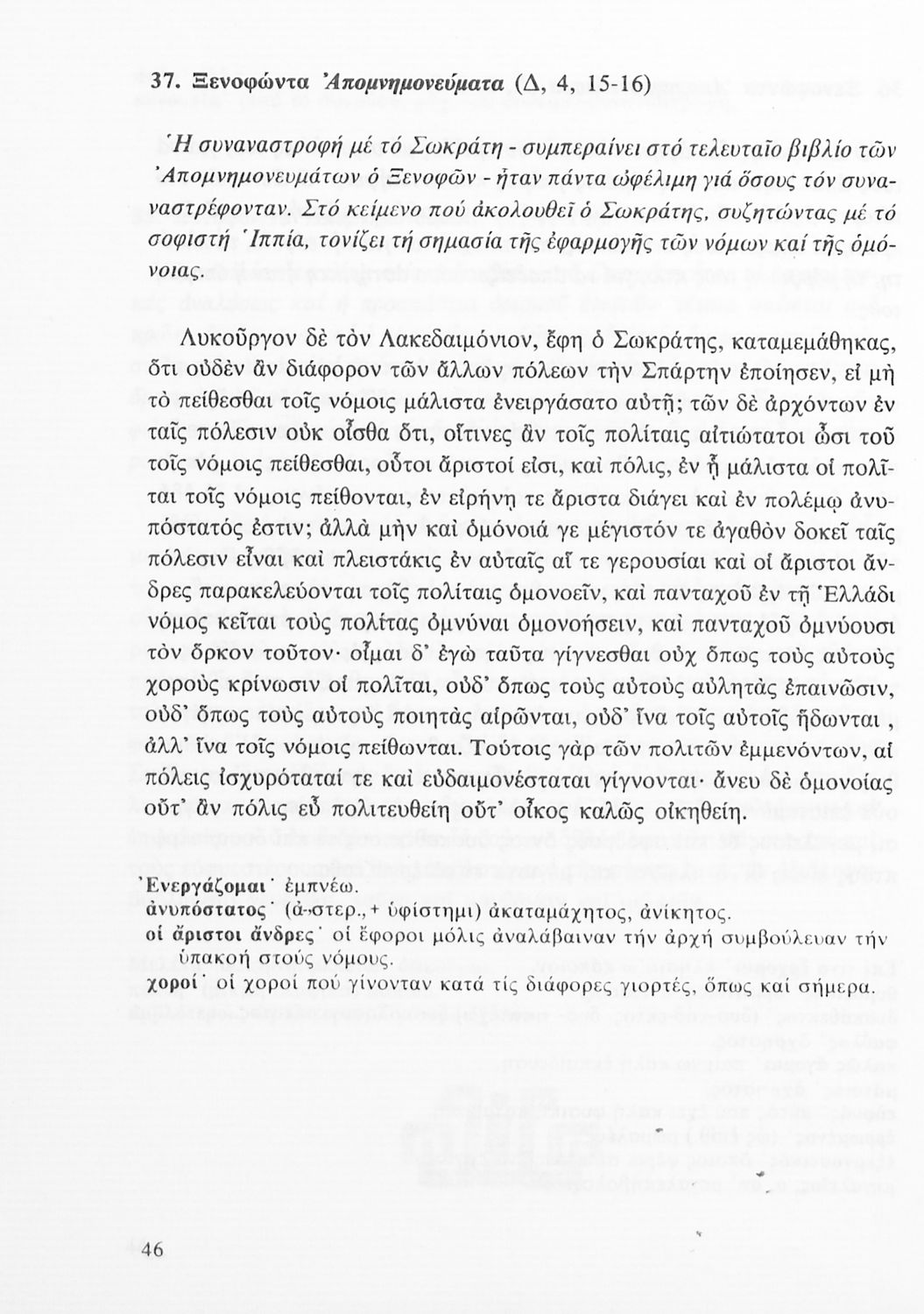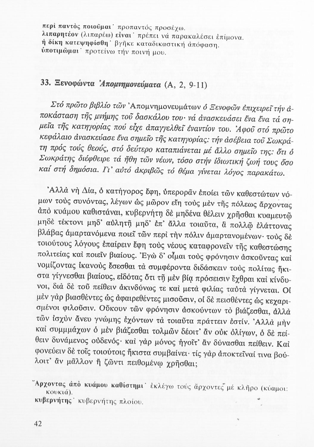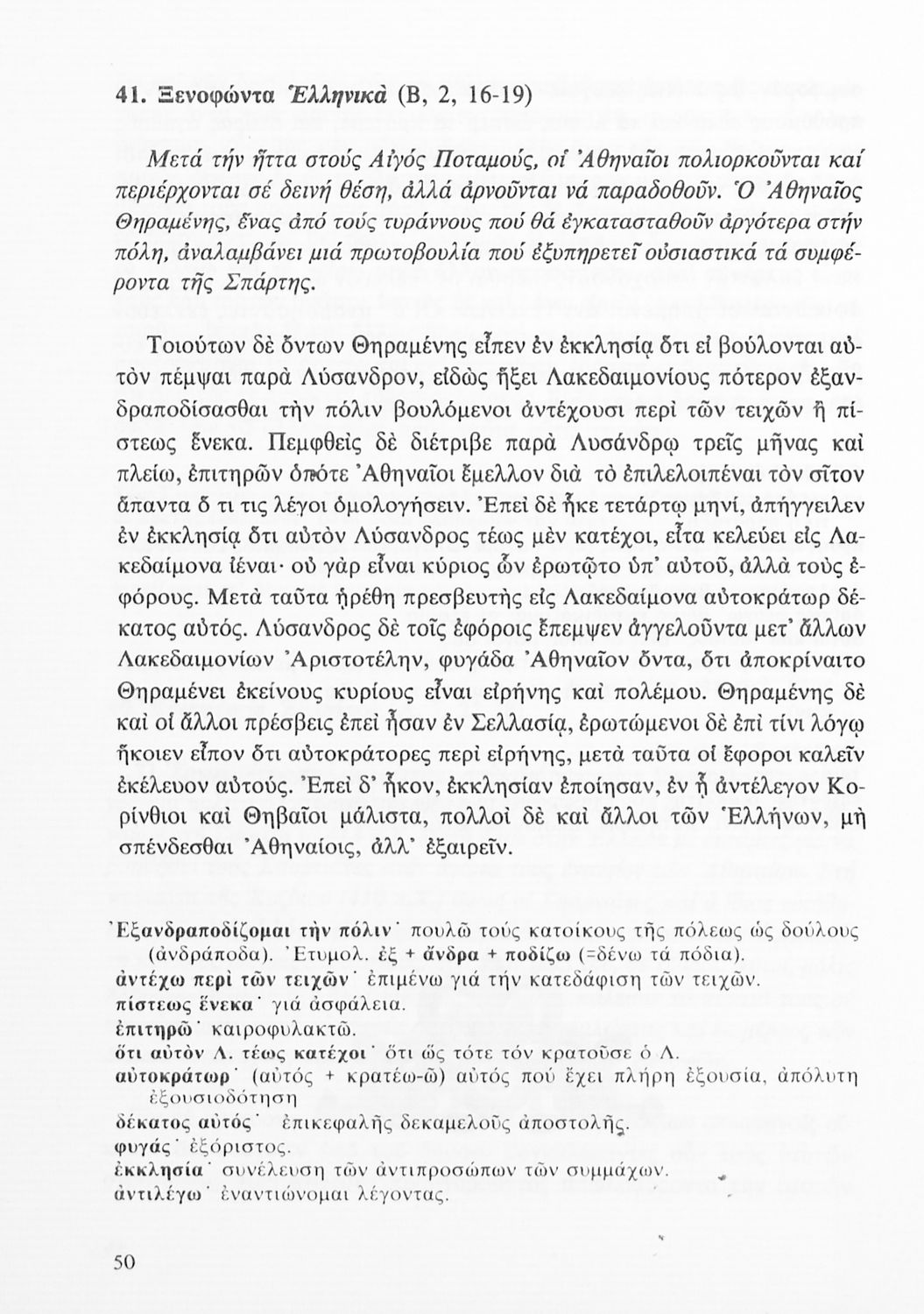 Σχολικό εγχειρίδιο Αρχαίων Ελληνικών Β' Λυκείου που περιλαμβάνει αποσπάσματα από έργα αρχαίων Ελλήνων συγγραφέων και γραμματικές και ερμηνευτικές παρατηρήσεις.