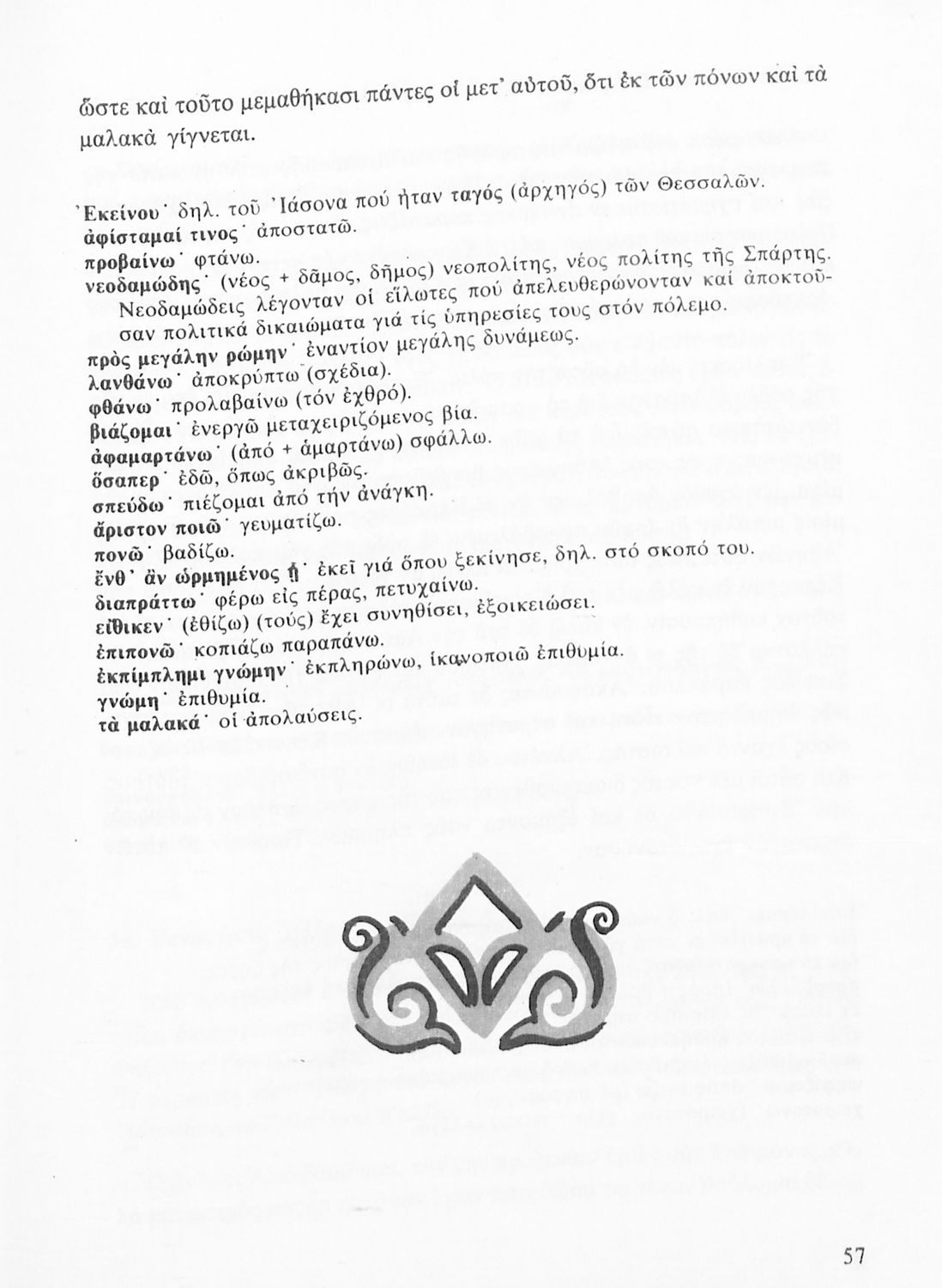 Παιδαγωγικό βοήθημα Αρχαίων Ελληνικών Β΄ Λυκείου που είχε ως στόχο να βοηθήσει τους φιλολόγους στην κατάρτιση της διδακτέας ύλης και την επιλογή των κατάλληλων θεμάτων.