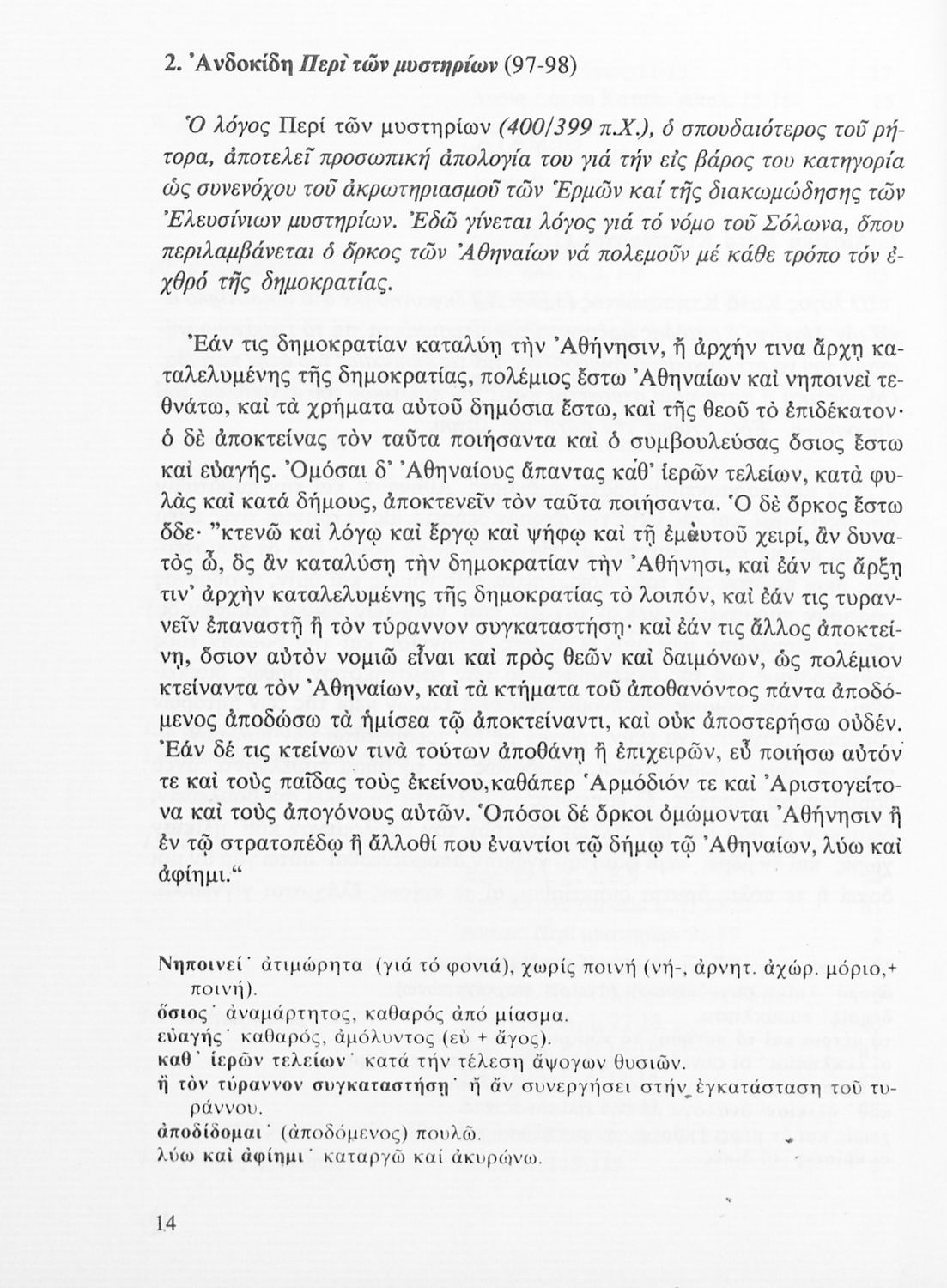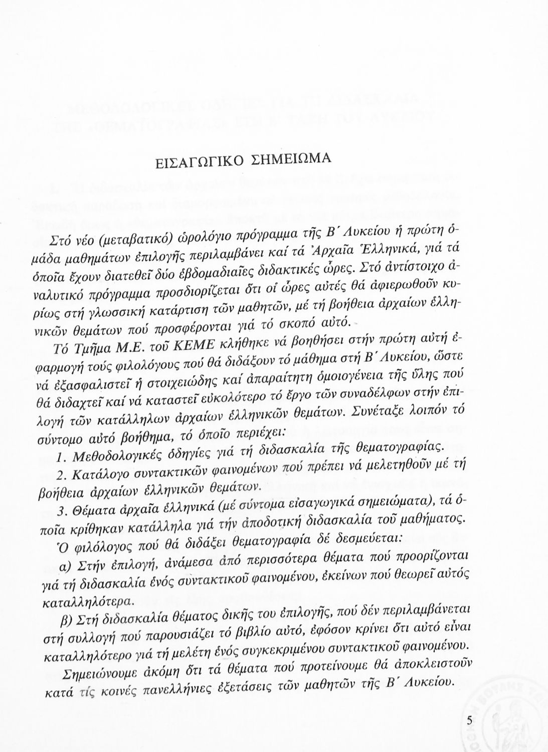 Παιδαγωγικό βοήθημα Αρχαίων Ελληνικών Β΄ Λυκείου που είχε ως στόχο να βοηθήσει τους φιλολόγους στην κατάρτιση της διδακτέας ύλης και την επιλογή των κατάλληλων θεμάτων.