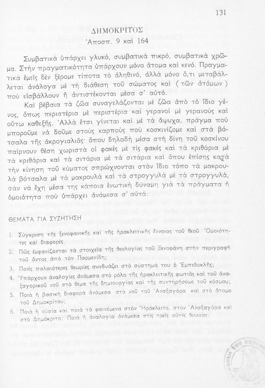 Σχολικό εγχειρίδιο Φιλοσοφίας για την ΣΤ΄ Γυμνασίου που περιέχει αποσπάσματα από διάσημα φιλοσοφικά κείμενα τόσο της ελληνικής αρχαιότητας όσο και της σύγχρονης ευρωπαϊκής σκέψης και θέματα προς συζήτηση. ...