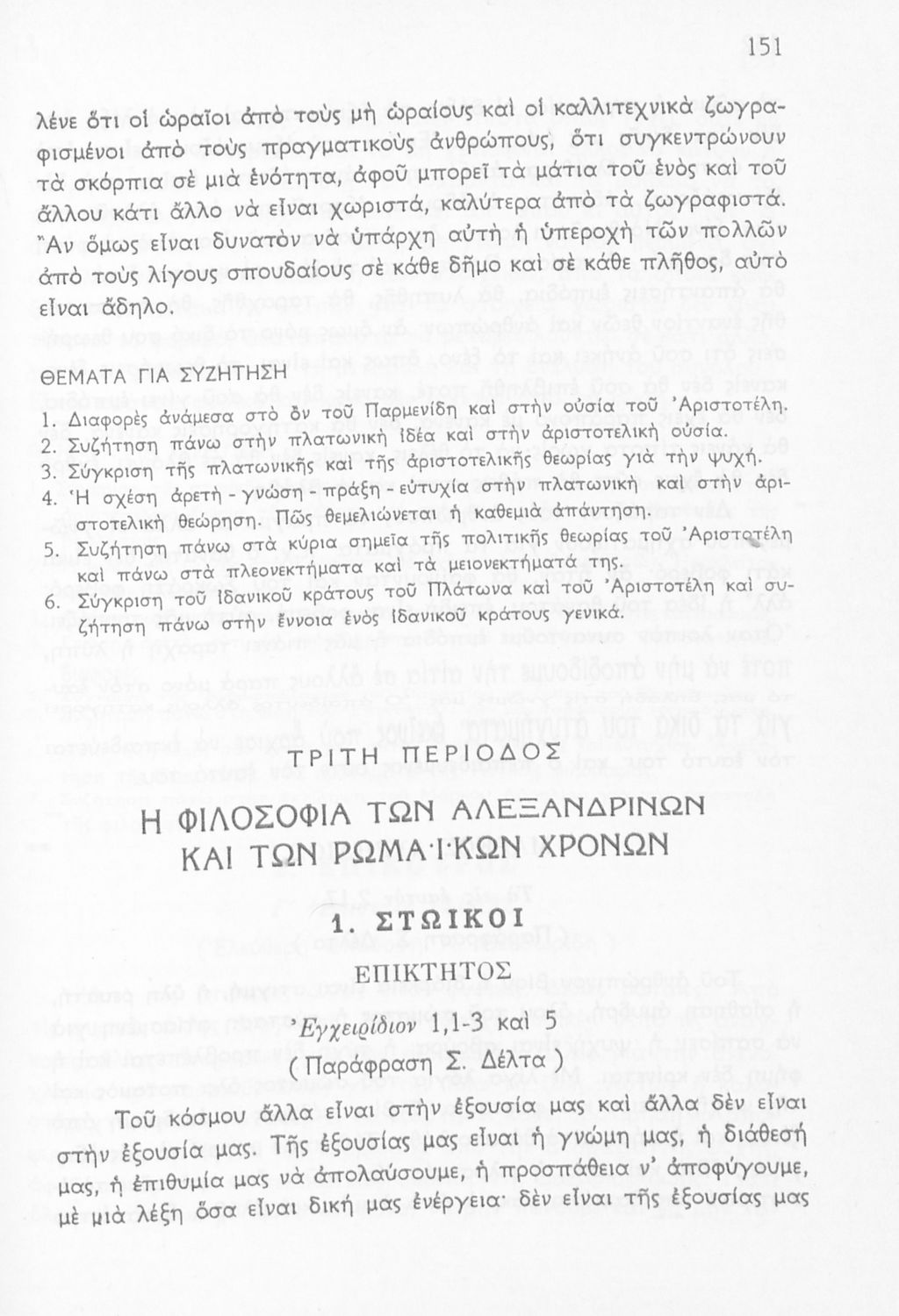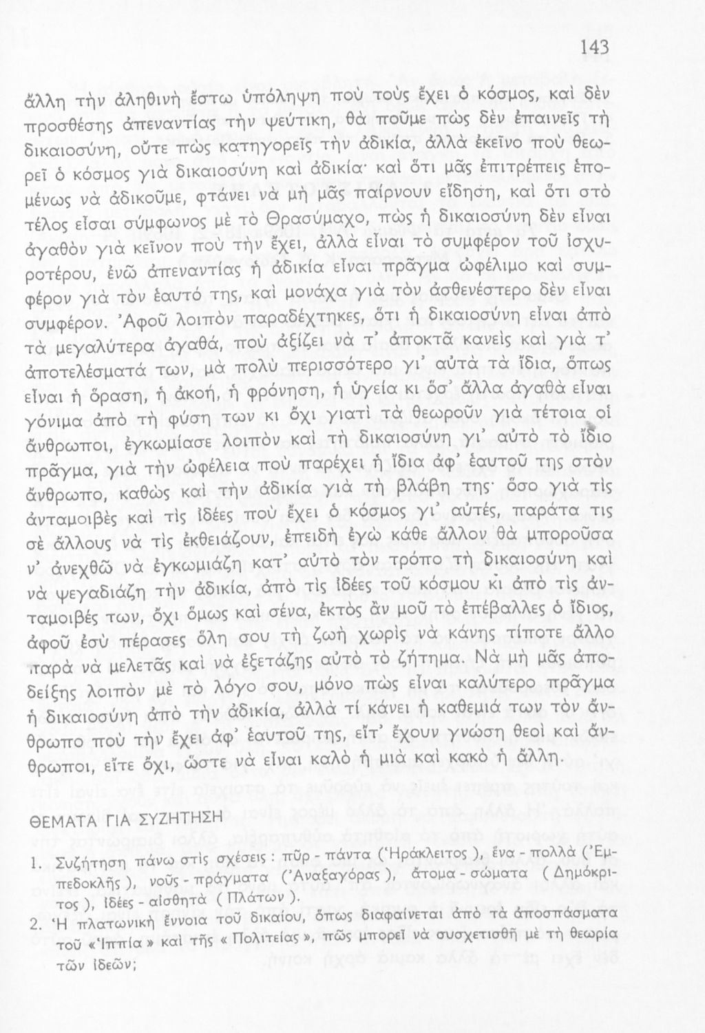 Σχολικό εγχειρίδιο Φιλοσοφίας για την ΣΤ΄ Γυμνασίου που περιέχει αποσπάσματα από διάσημα φιλοσοφικά κείμενα τόσο της ελληνικής αρχαιότητας όσο και της σύγχρονης ευρωπαϊκής σκέψης και θέματα προς συζήτηση. ...