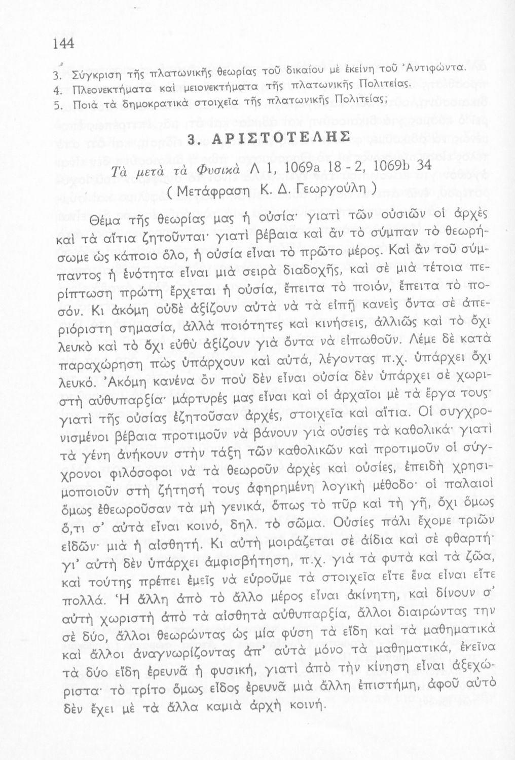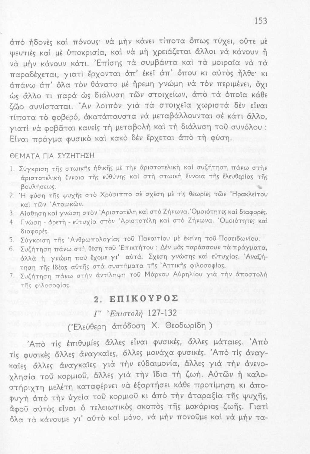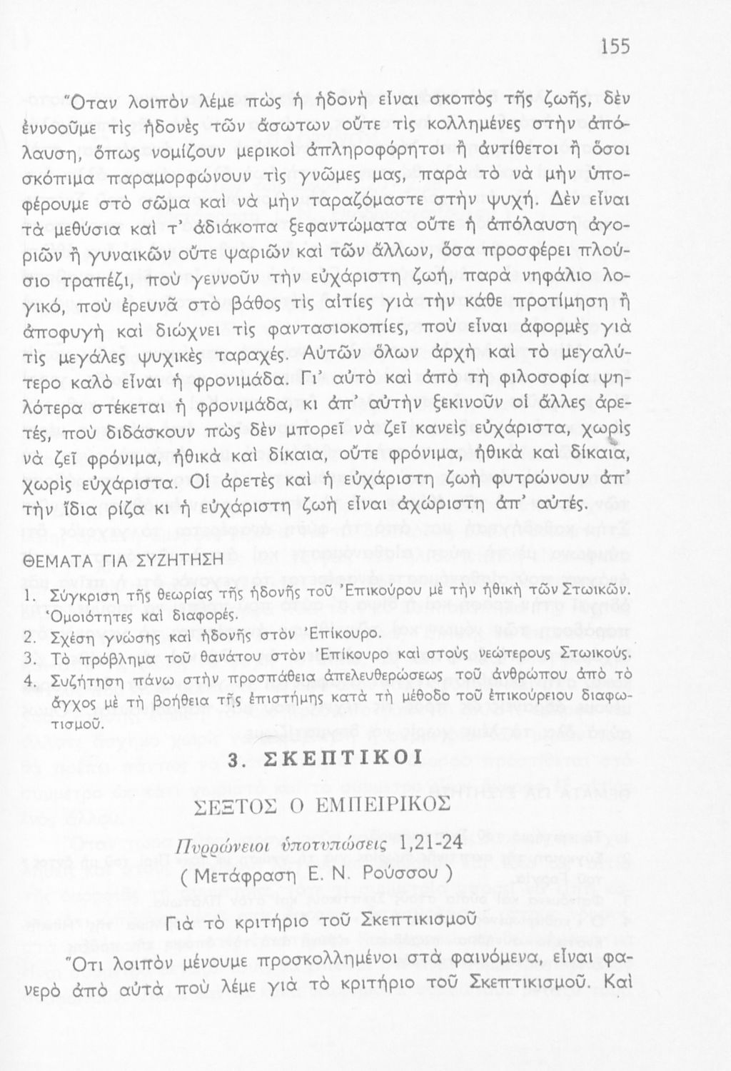 Σχολικό εγχειρίδιο Φιλοσοφίας για την Γ΄ Λυκείου που περιέχει αποσπάσματα από διάσημα φιλοσοφικά κείμενα τόσο της ελληνικής αρχαιότητας όσο και της σύγχρονης ευρωπαϊκής σκέψης και θέματα προς συζήτηση. Περιλαμβάνει και λεξιλόγιο φιλοσοφικών όρων και ειδικό κεφάλαιο για τους προσωκρατικούς.
