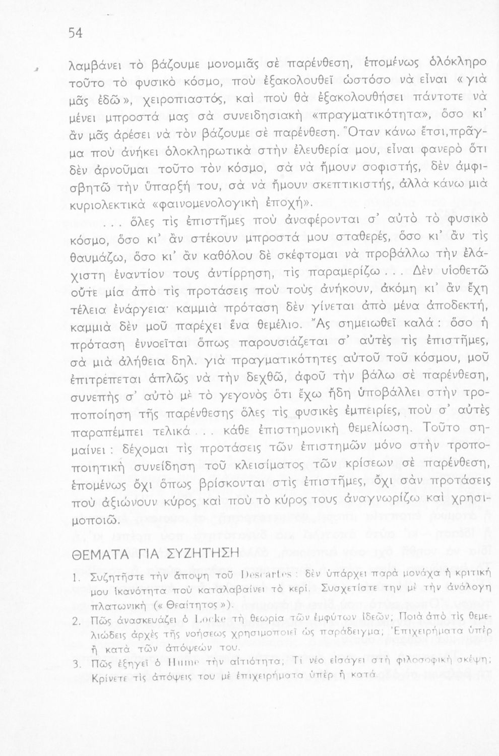 Σχολικό εγχειρίδιο Φιλοσοφίας για την ΣΤ΄ Γυμνασίου που περιέχει αποσπάσματα από διάσημα φιλοσοφικά κείμενα τόσο της ελληνικής αρχαιότητας όσο και της σύγχρονης ευρωπαϊκής σκέψης και θέματα προς συζήτηση. ...