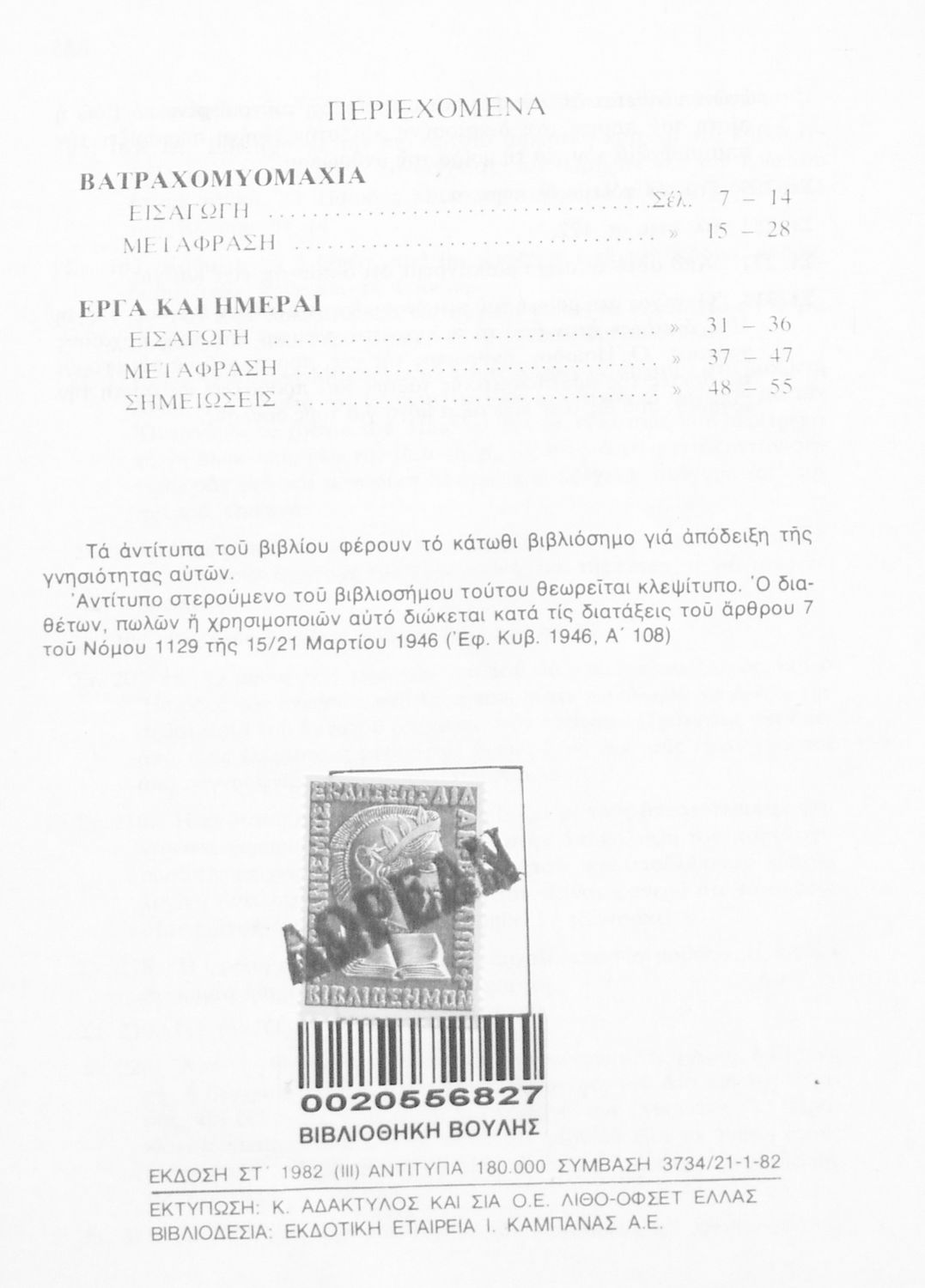 Εντοπισμός πρωτοτύπου: Βιβλιοθήκη της Βουλής των Ελλήνων