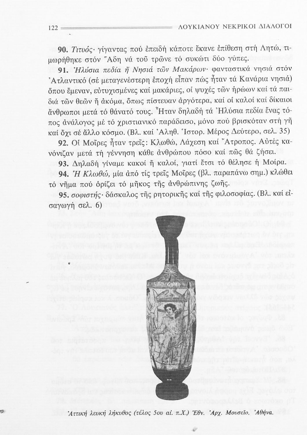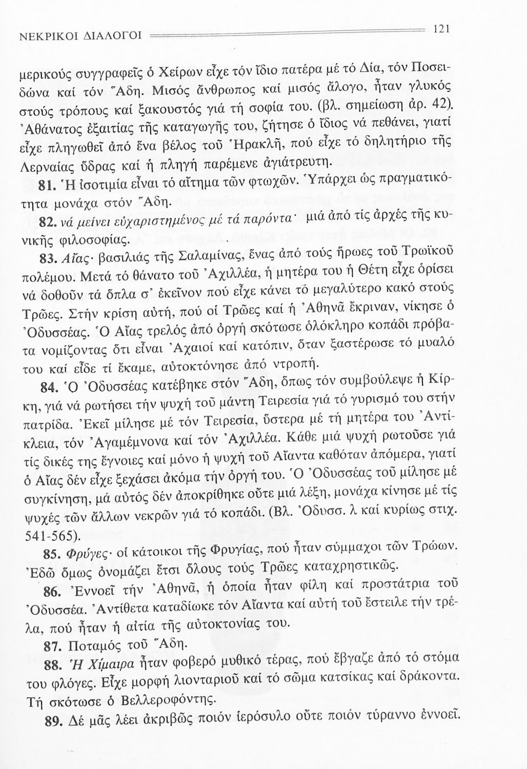 Σχολικό εγχειρίδιο Αρχαίων Ελληνικών Α΄ Γυμνασίου που περιλαμβάνει εισαγωγή στη ζωή και το έργο του Λουκιανού, αποσπάσματα από του Νεκρικούς διαλόγους και ερμηνευτικές σημειώσεις.
