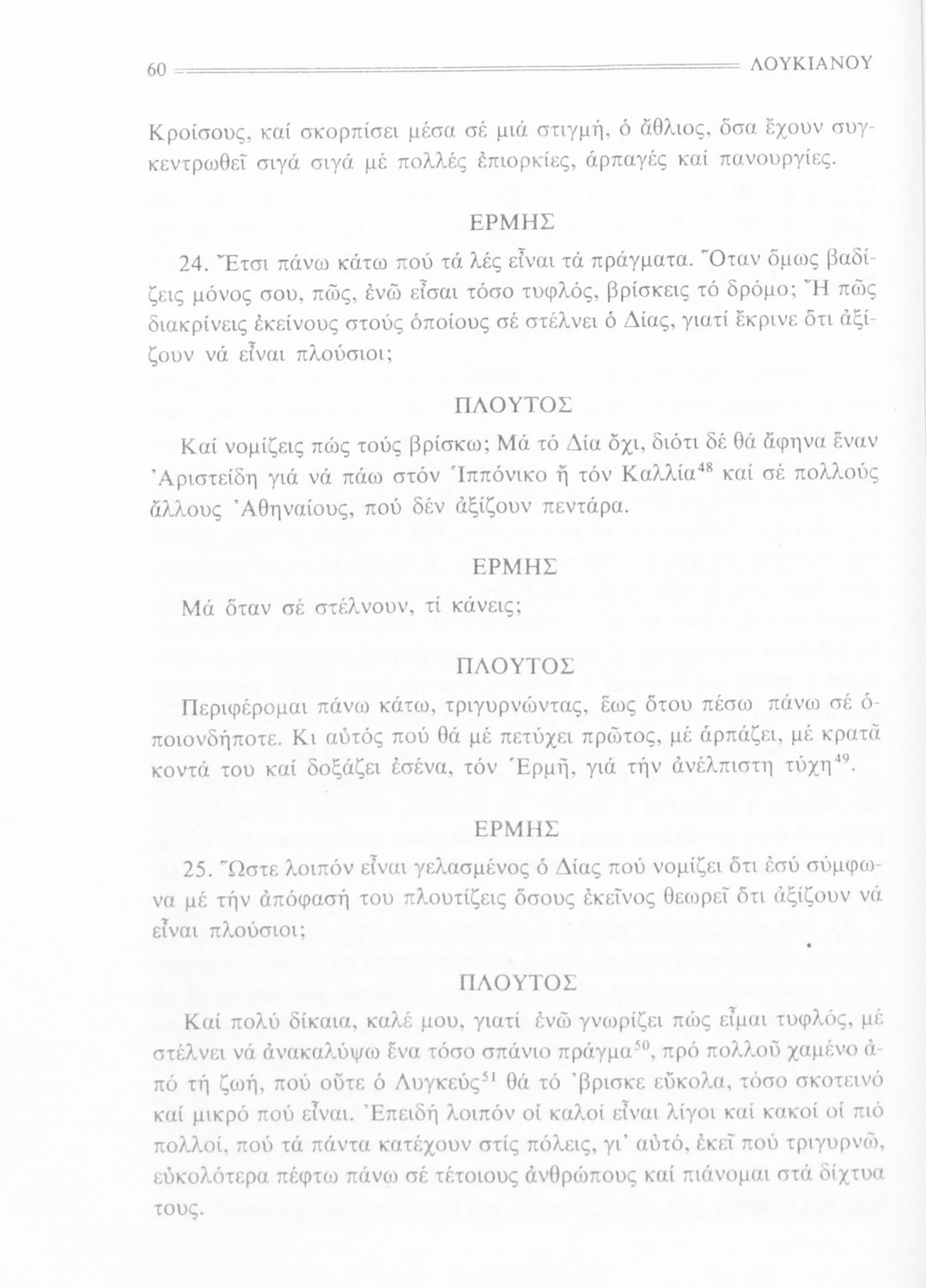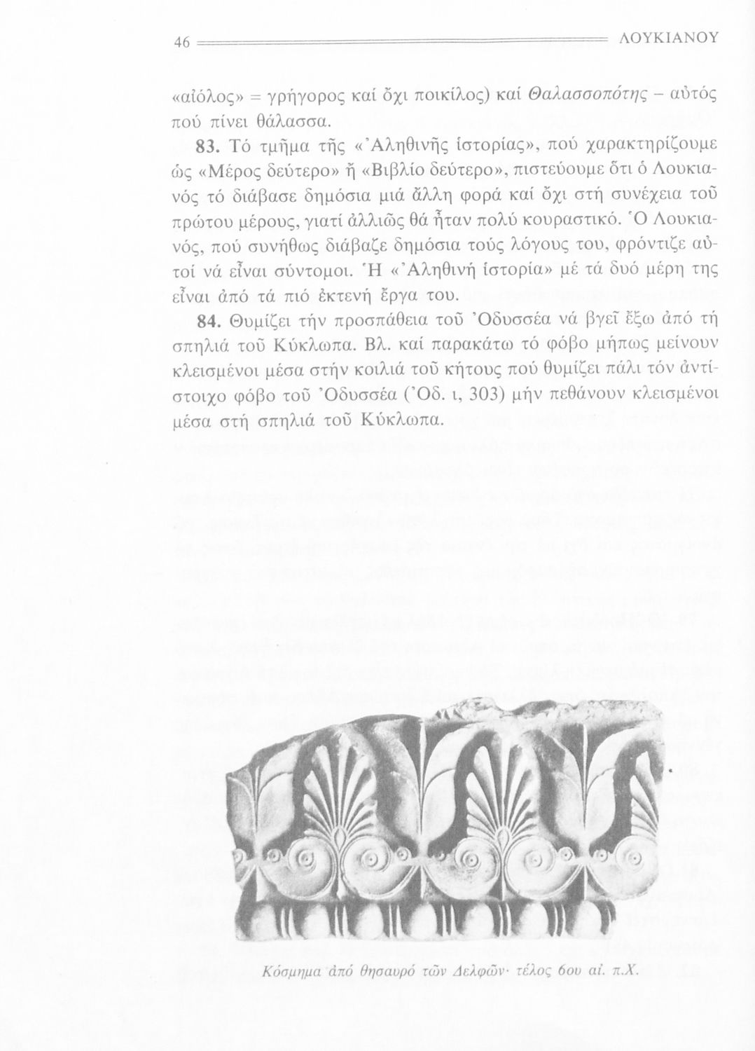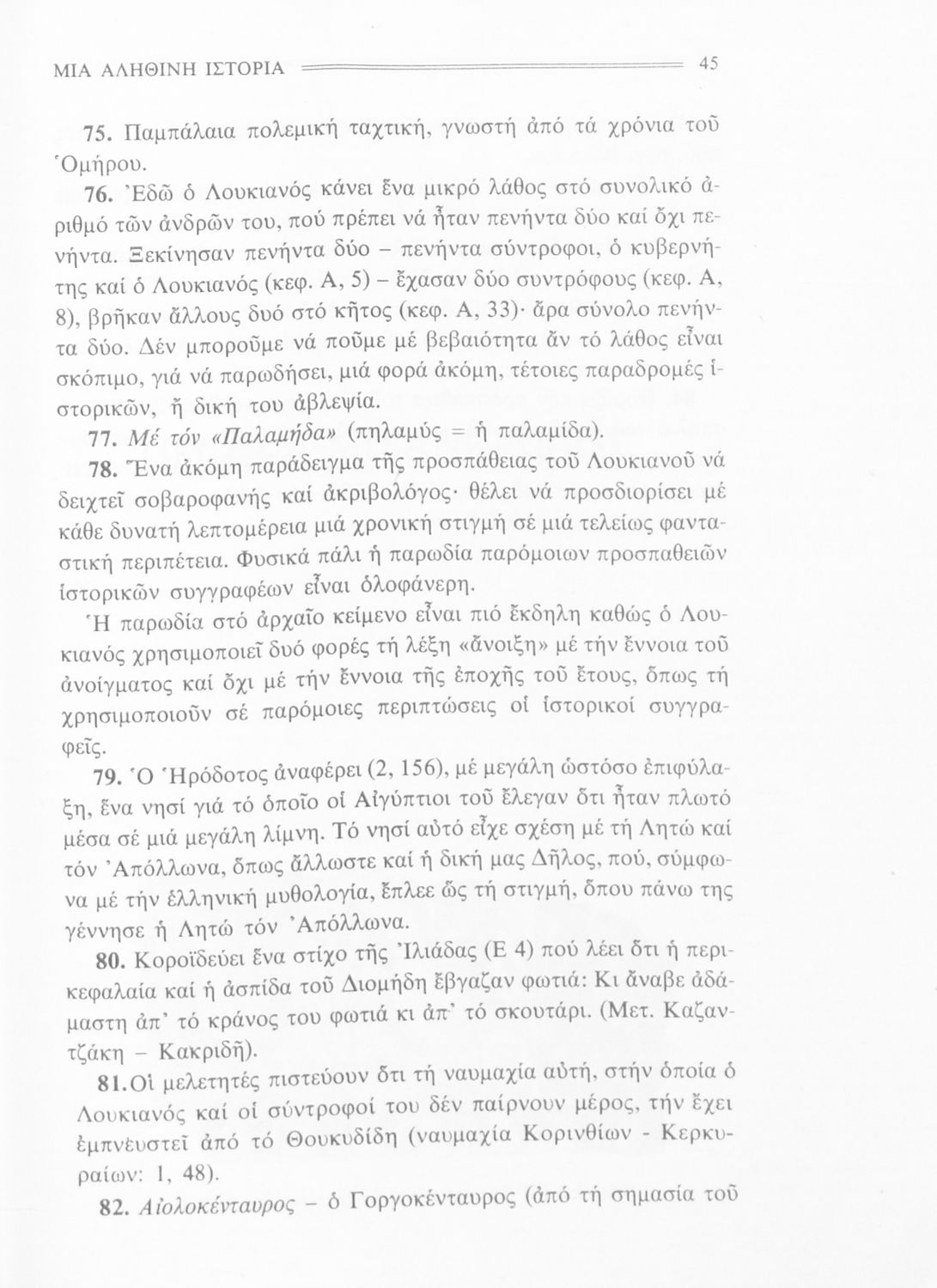 Σχολικό εγχειρίδιο Αρχαίων Ελληνικών Α' Γυμνασίου που περιέχει εισαγωγή στην ζωή και το έργο του Λουκιανού, τα έργα του Μία αληθινή ιστορία, Τιμών ή Μισάνθρωπος, Νεκρικοί Διάλογοι και ερμηνευτικές σημειώσεις.