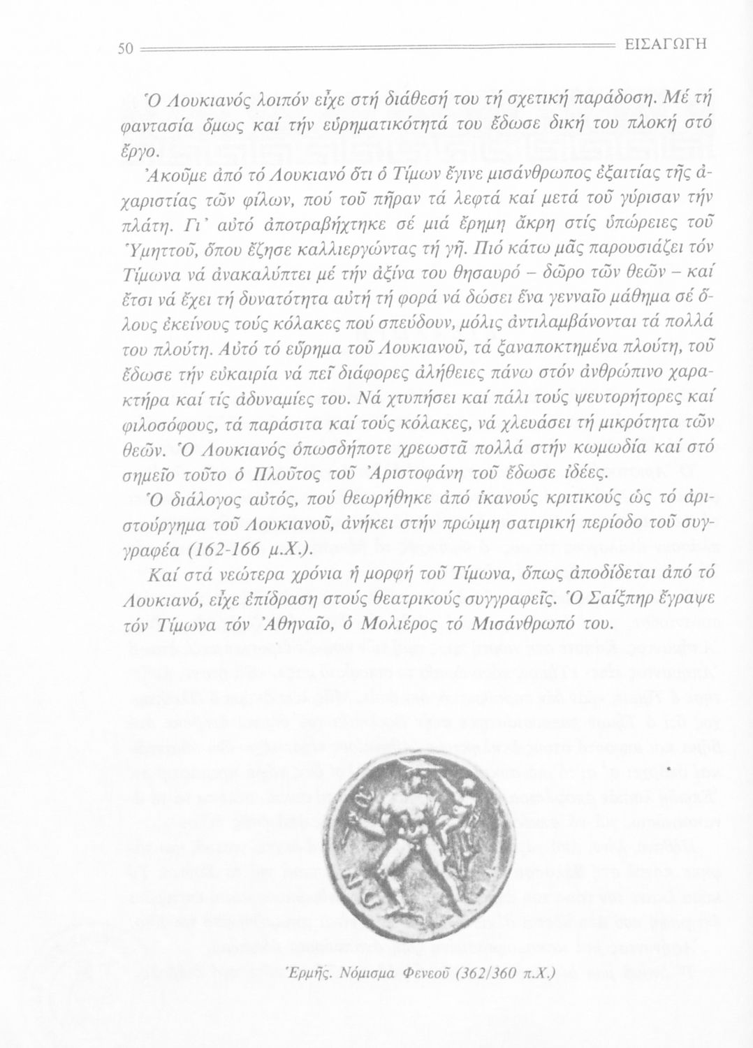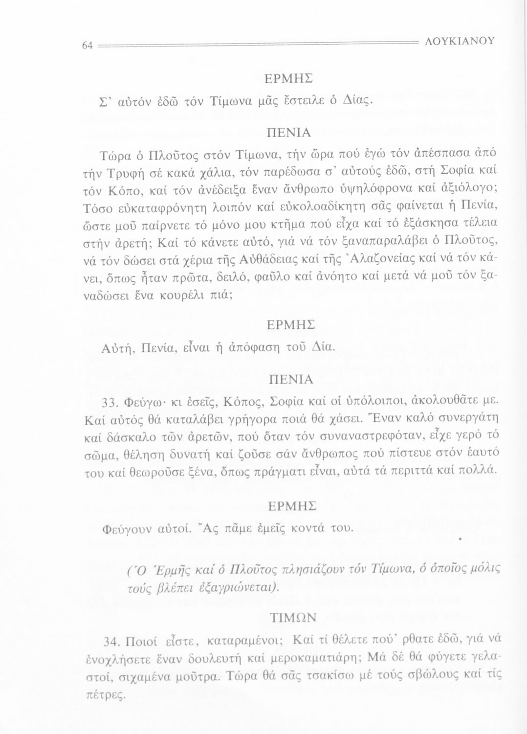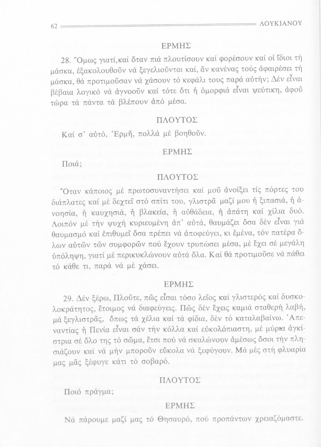 Σχολικό εγχειρίδιο Αρχαίων Ελληνικών Α' Γυμνασίου που περιέχει εισαγωγή στην ζωή και το έργο του Λουκιανού, τα έργα του Μία αληθινή ιστορία, Τιμών ή Μισάνθρωπος, Νεκρικοί Διάλογοι και ερμηνευτικές σημειώσεις.