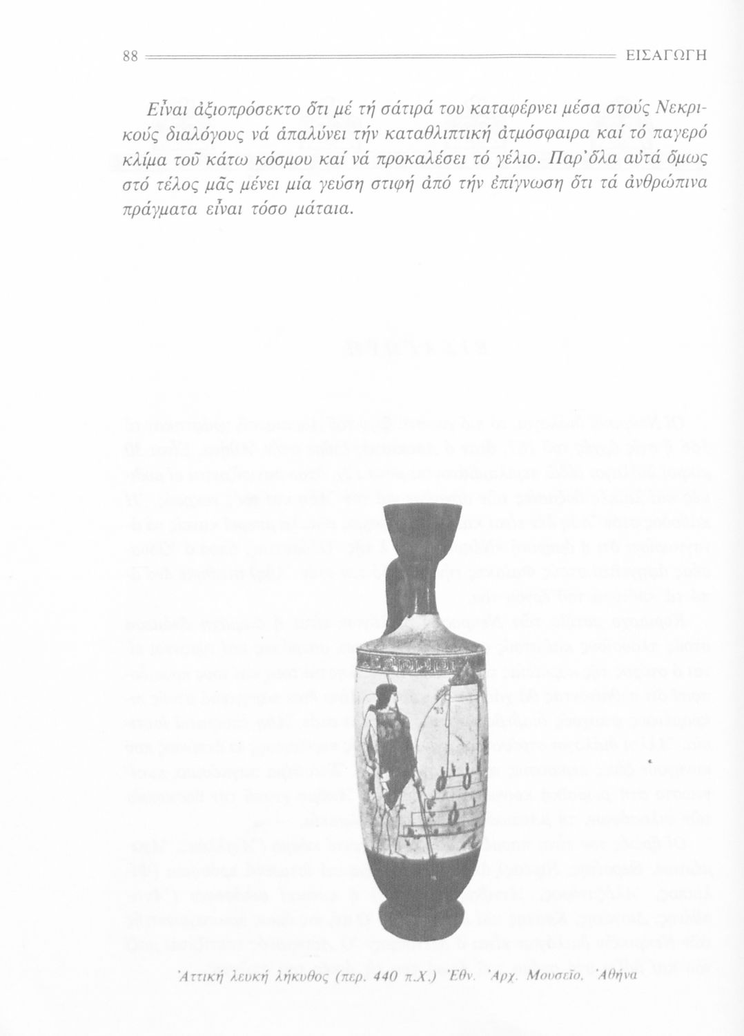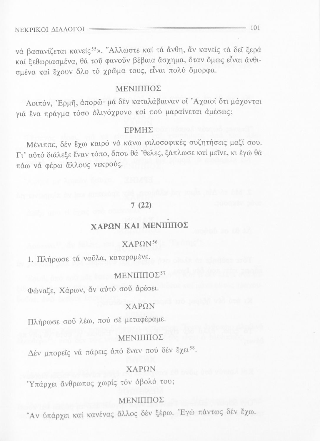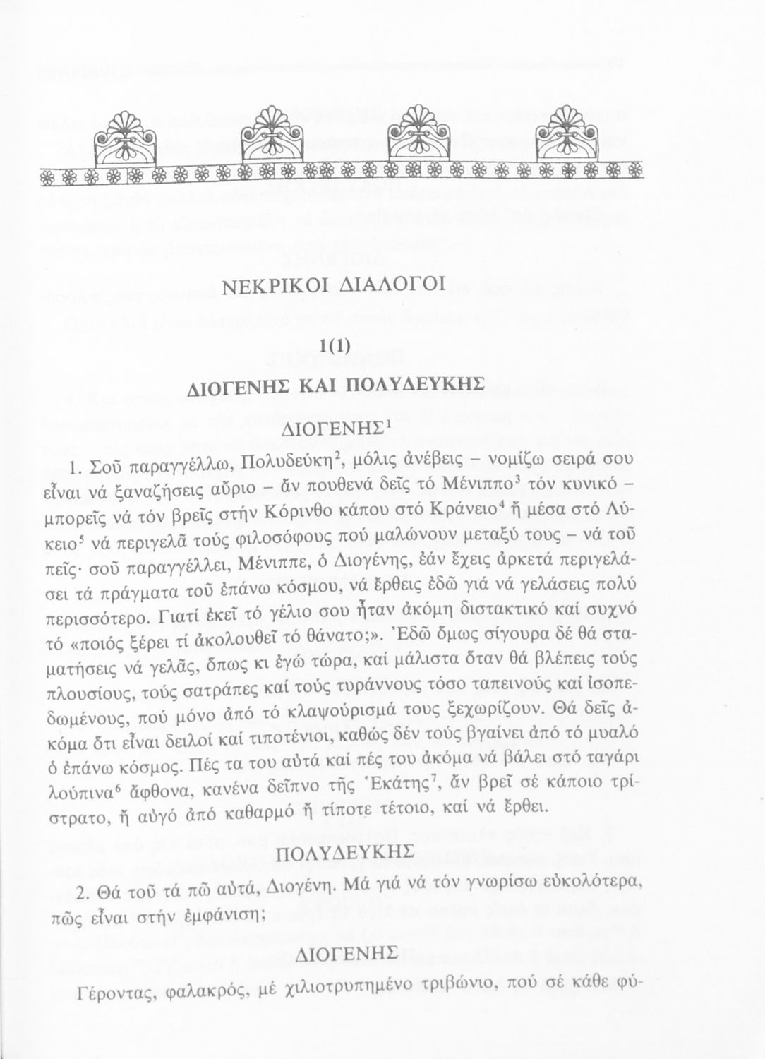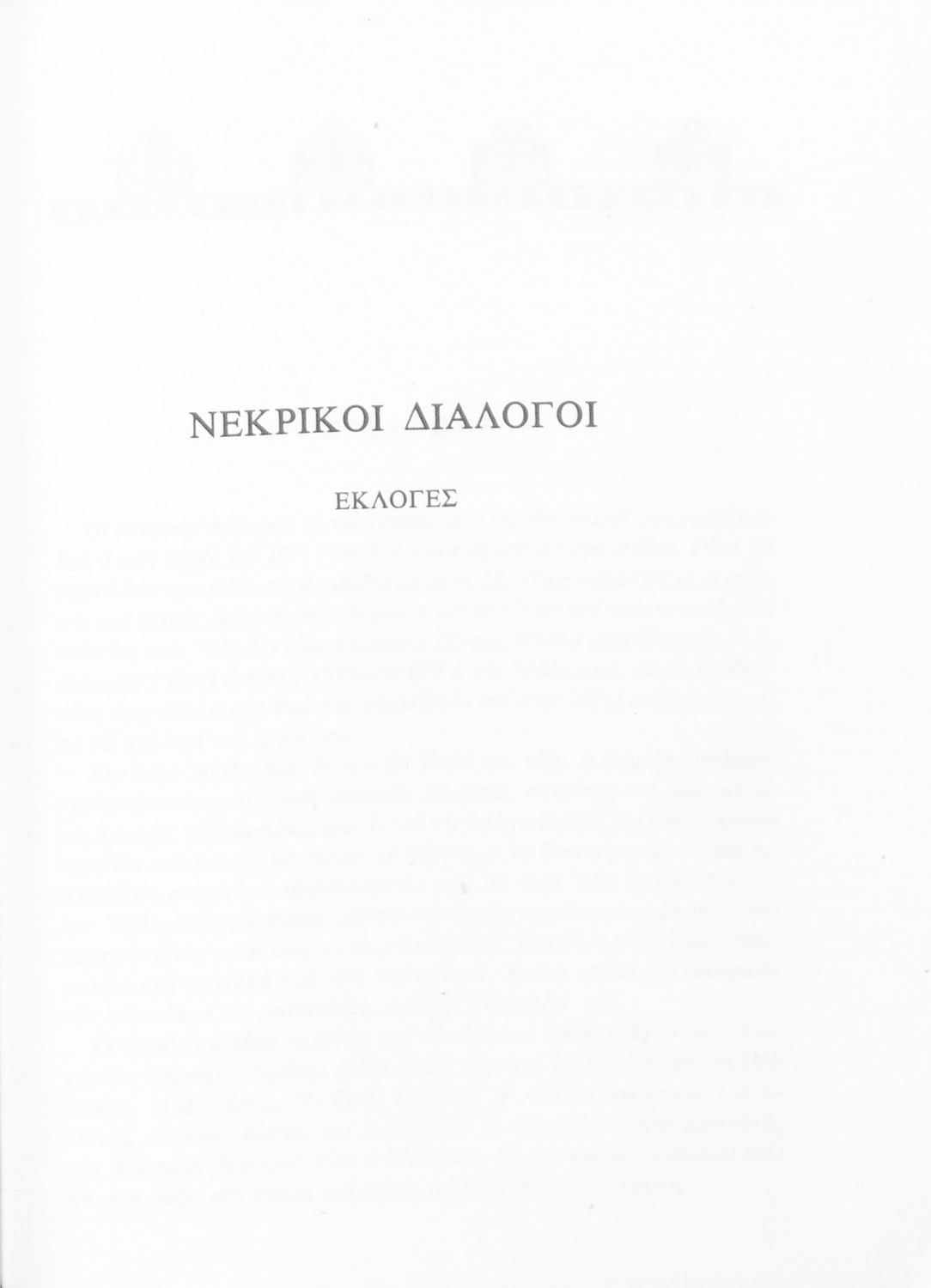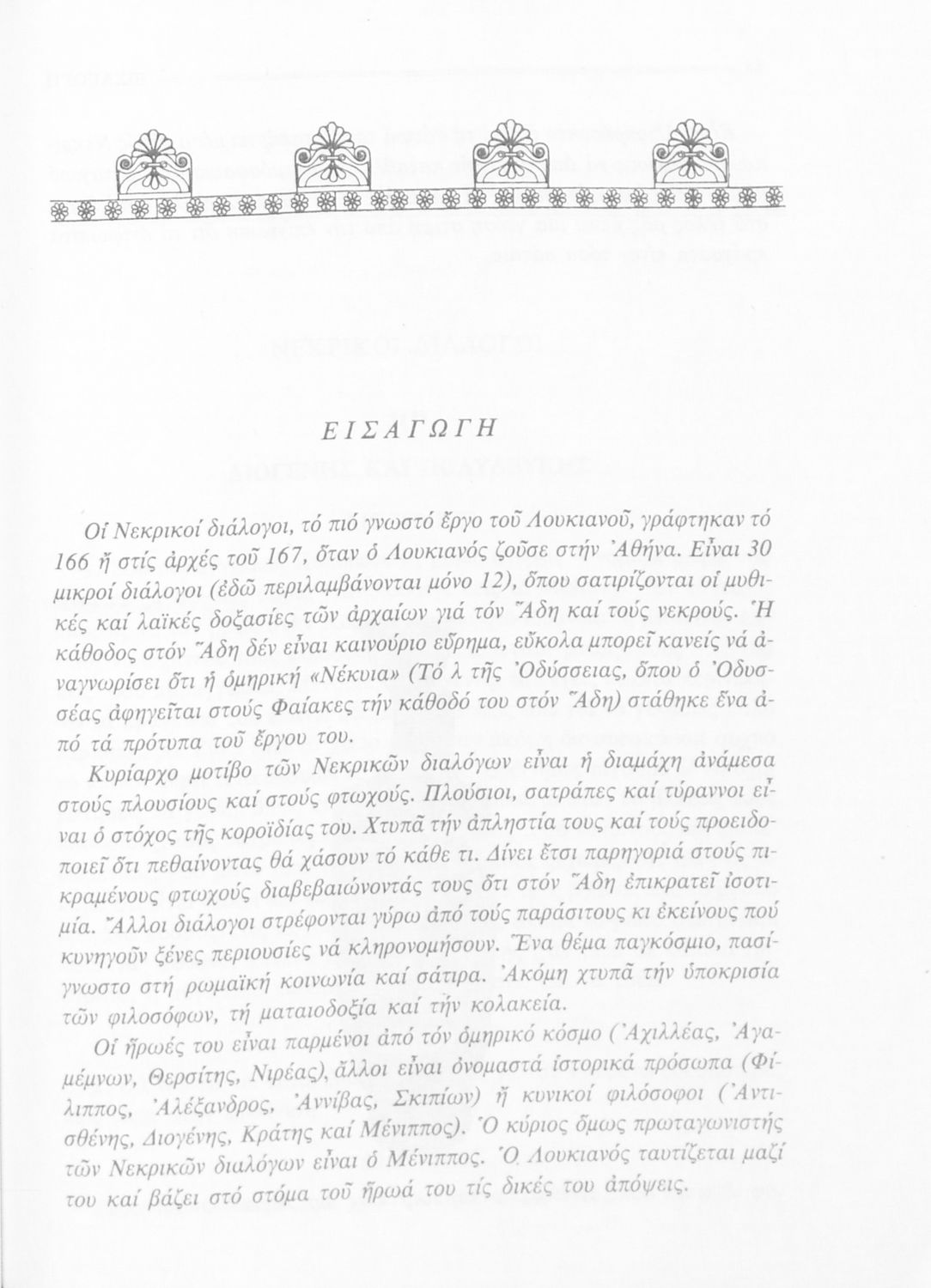 Σχολικό εγχειρίδιο Αρχαίων Ελληνικών Α΄ Γυμνασίου που περιλαμβάνει εισαγωγή στη ζωή και το έργο του Λουκιανού, αποσπάσματα από του Νεκρικούς διαλόγους και ερμηνευτικές σημειώσεις.