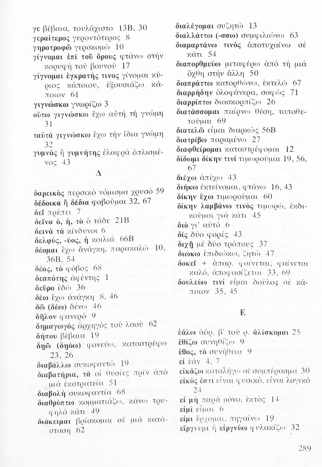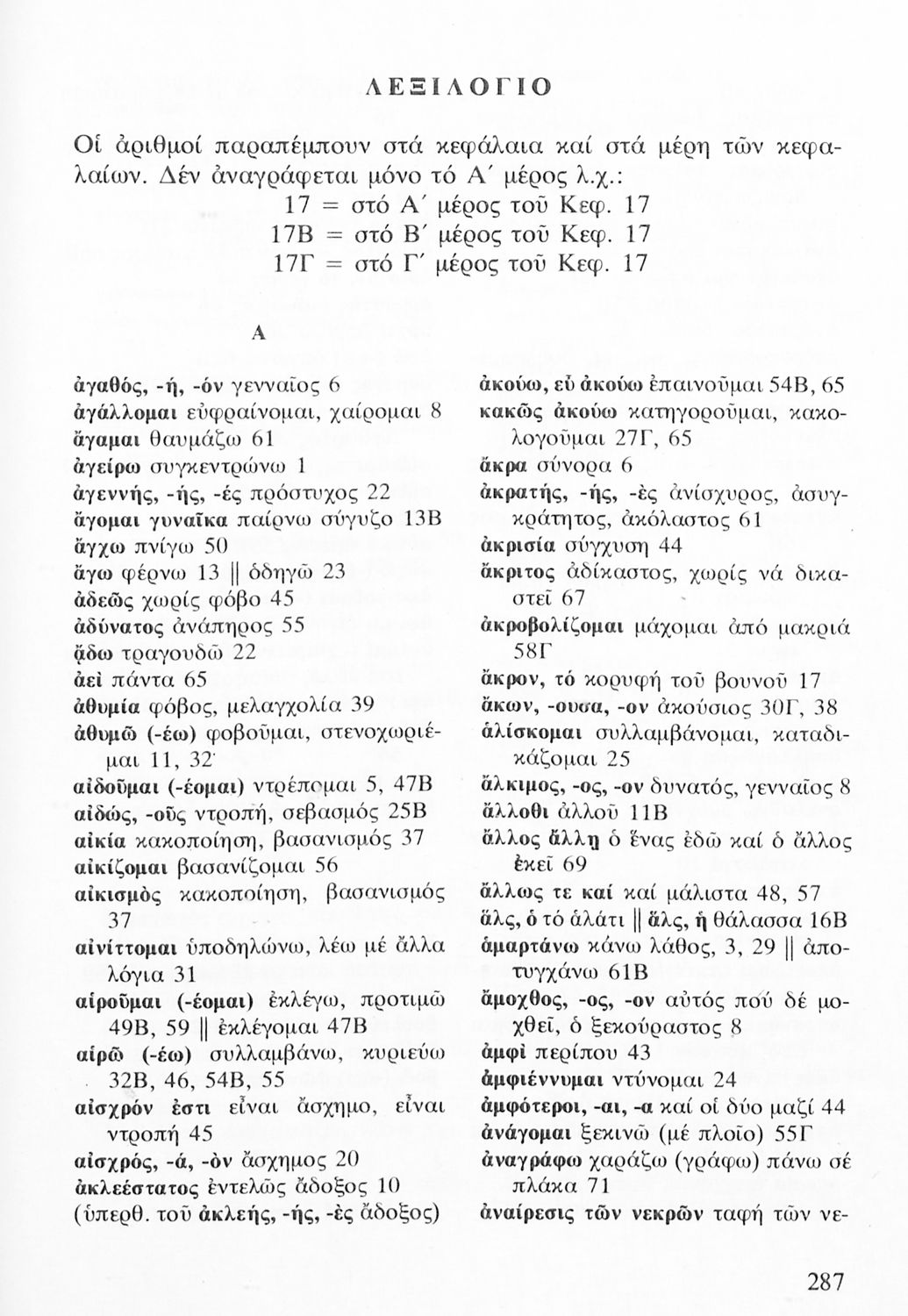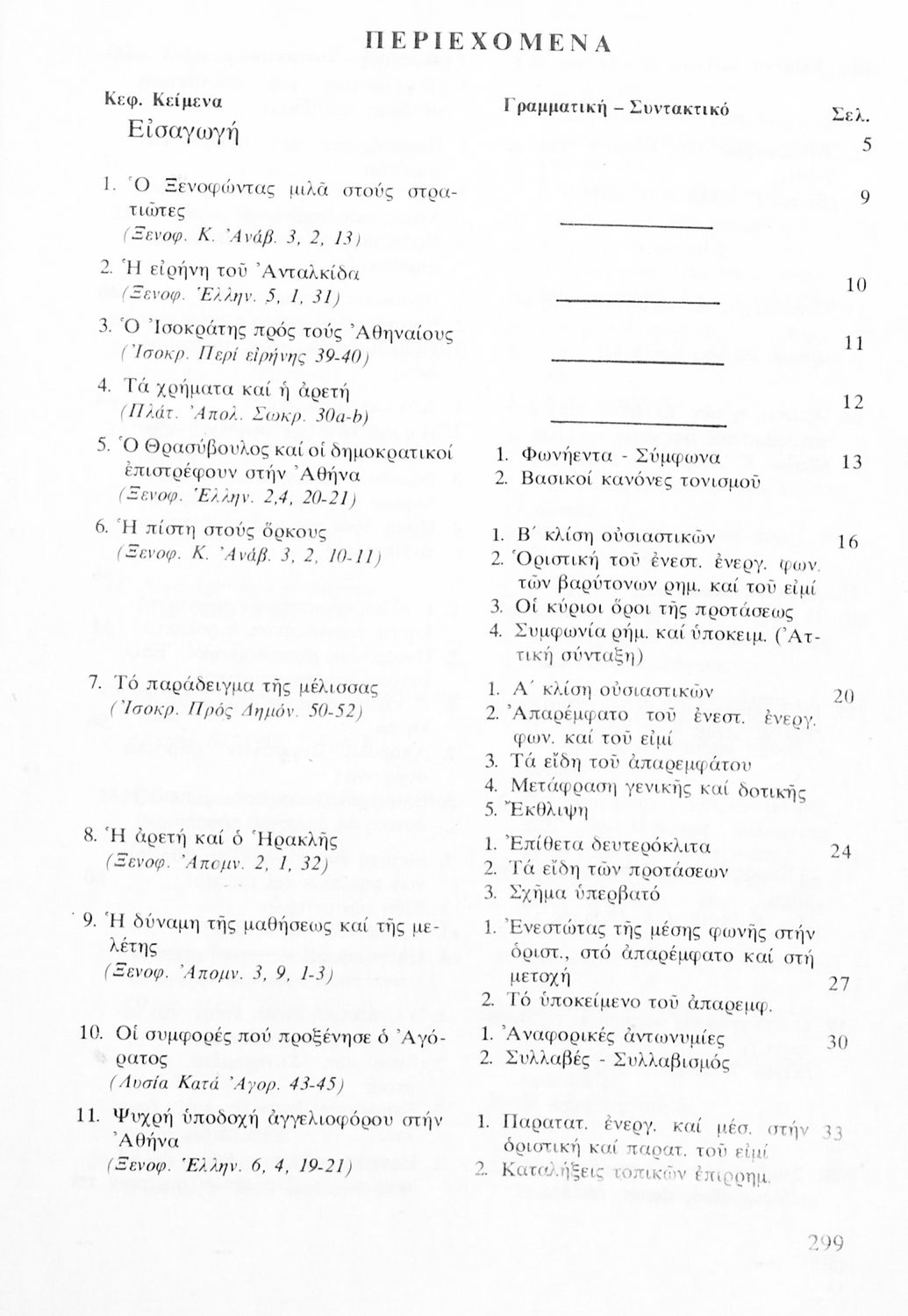 Σχολικό εγχειρίδιο Αρχαίων Ελληνικών Α' Λυκείου που περιλαμβάνει αποσπάσματα από κείμενα αρχαίων Ελλήνων συγγραφέων και γραμματικές, συντακτικές και ερμηνευτικές σημειώσεις. Περιέχει και ασκήσεις γραμματικής.