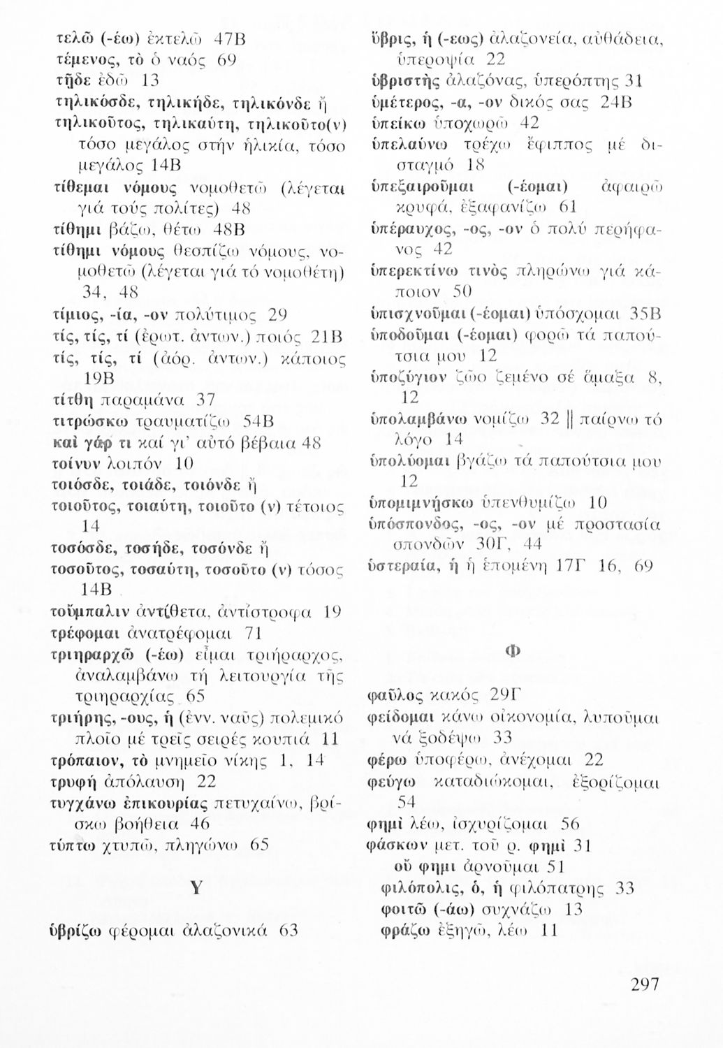 Σχολικό εγχειρίδιο Αρχαίων Ελληνικών. Α΄ Λυκείου που περιλαμβάνει εισαγωγή στη ζωή και το έργο του Δημοσθένη, τους Λόγους Α΄ και Β΄ Ολυνθιακός και Α΄ και Β΄ κατά Φιλίππου και ερμηνευτικές σημειώσεις.