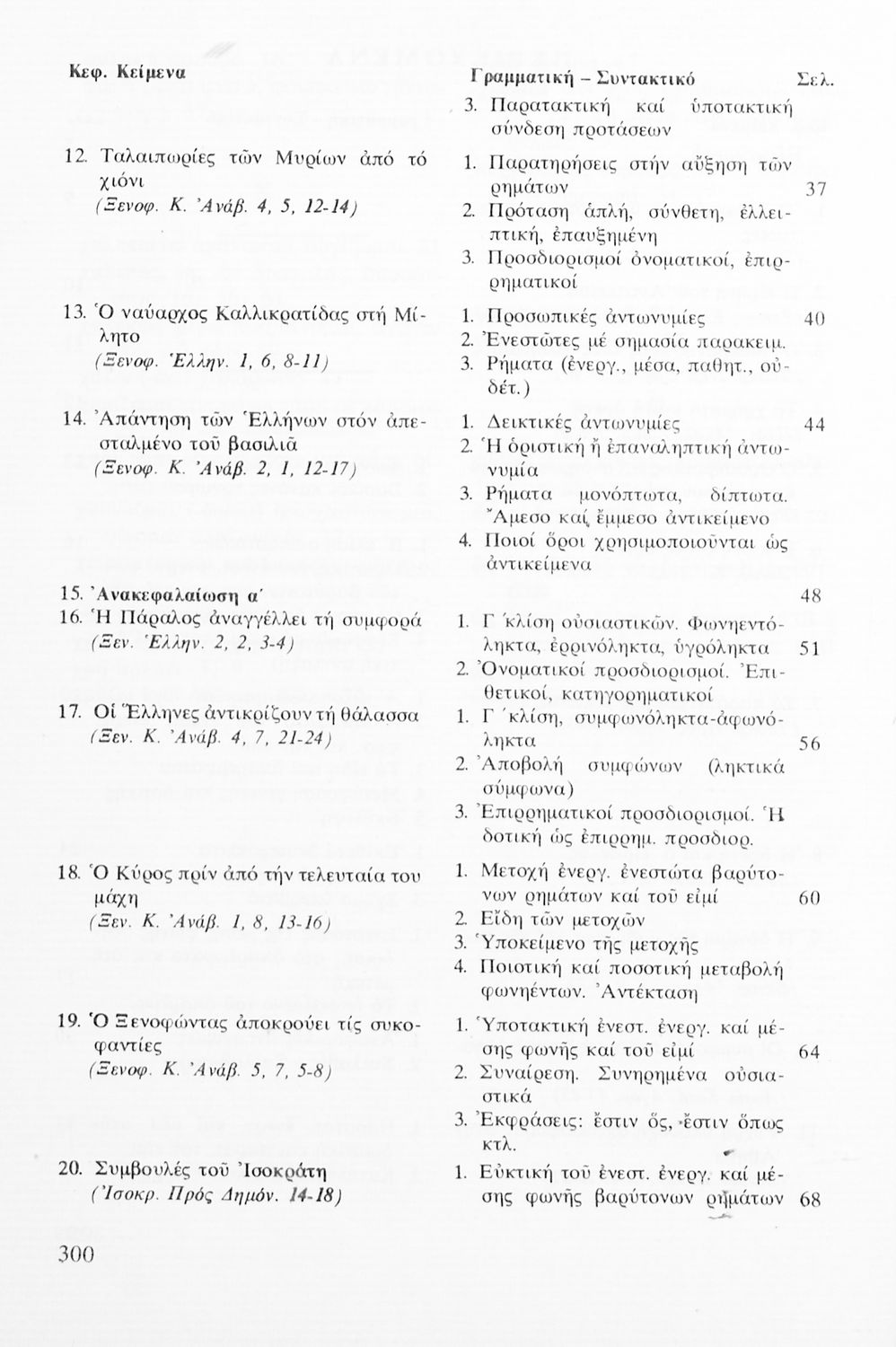 Σχολικό εγχειρίδιο Αρχαίων ελληνικών Α΄ Λυκείου που περιλαμβάνει αποσπάσματα από τα Ελληνικά του Ξενοφώντα, εισαγωγή στη ζωή και το έργο του, ερμηνευτικές σημειώσεις, τοπογραφικούς πίνακες και σχεδιαγράμματα ...